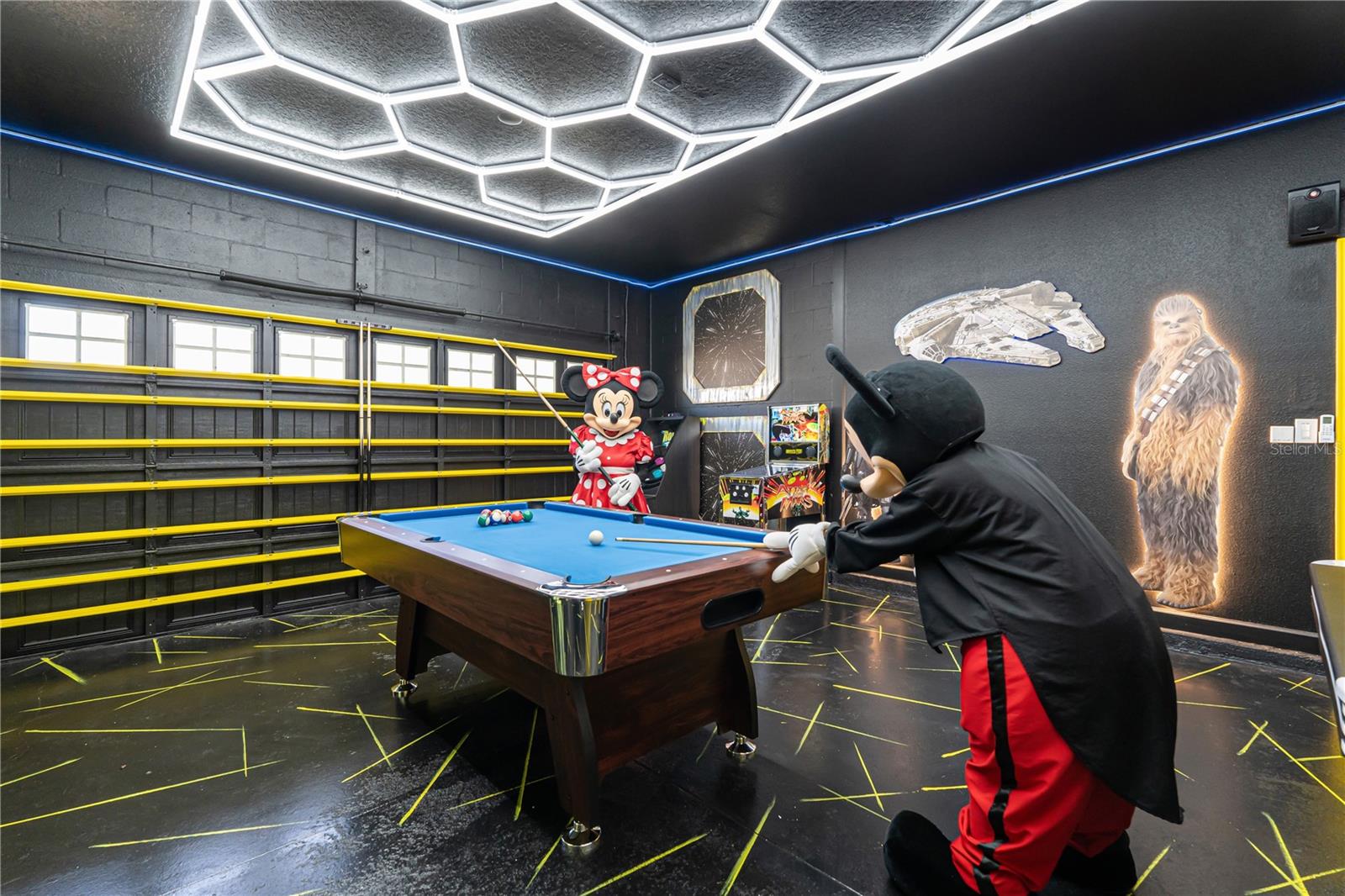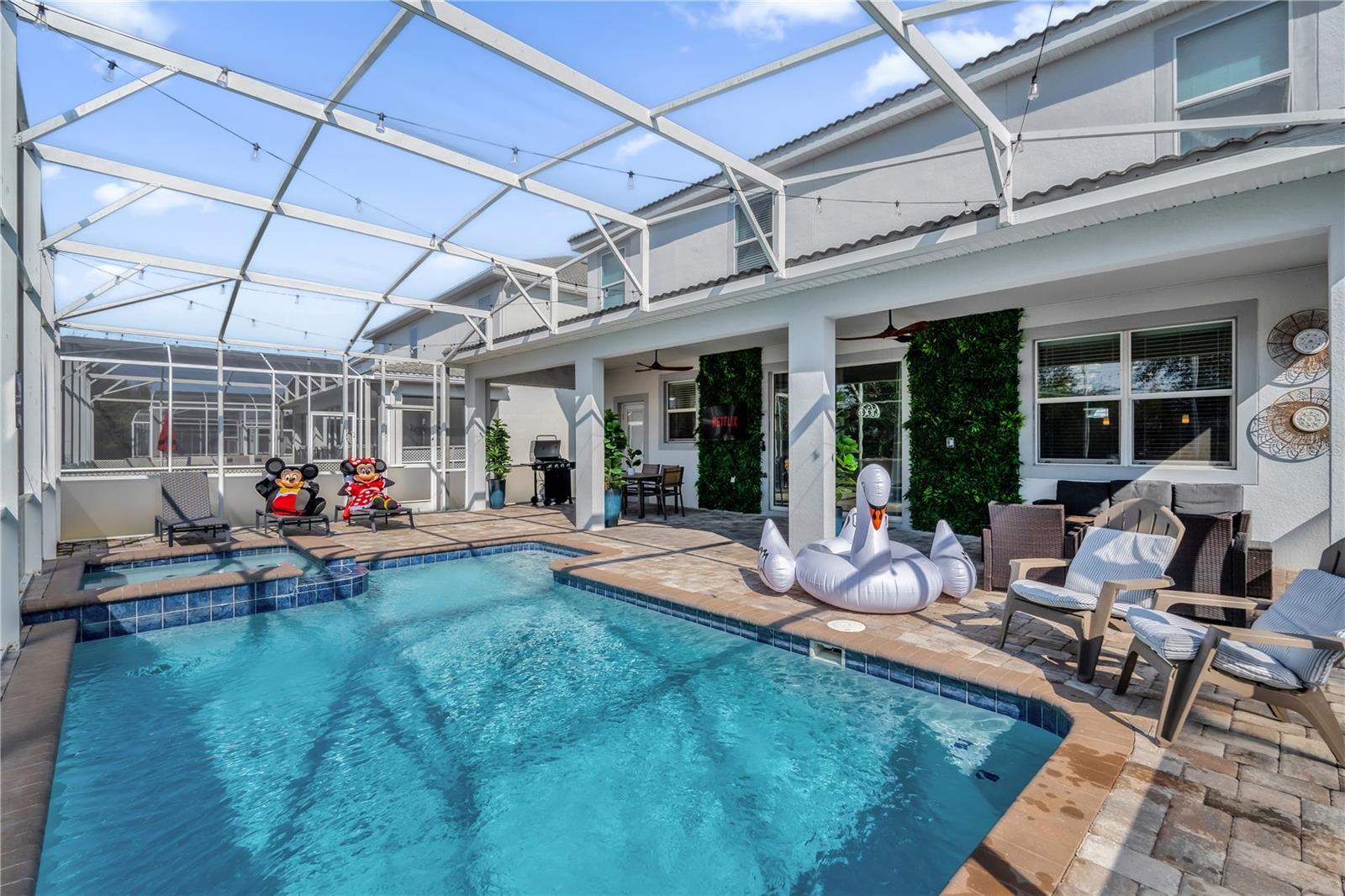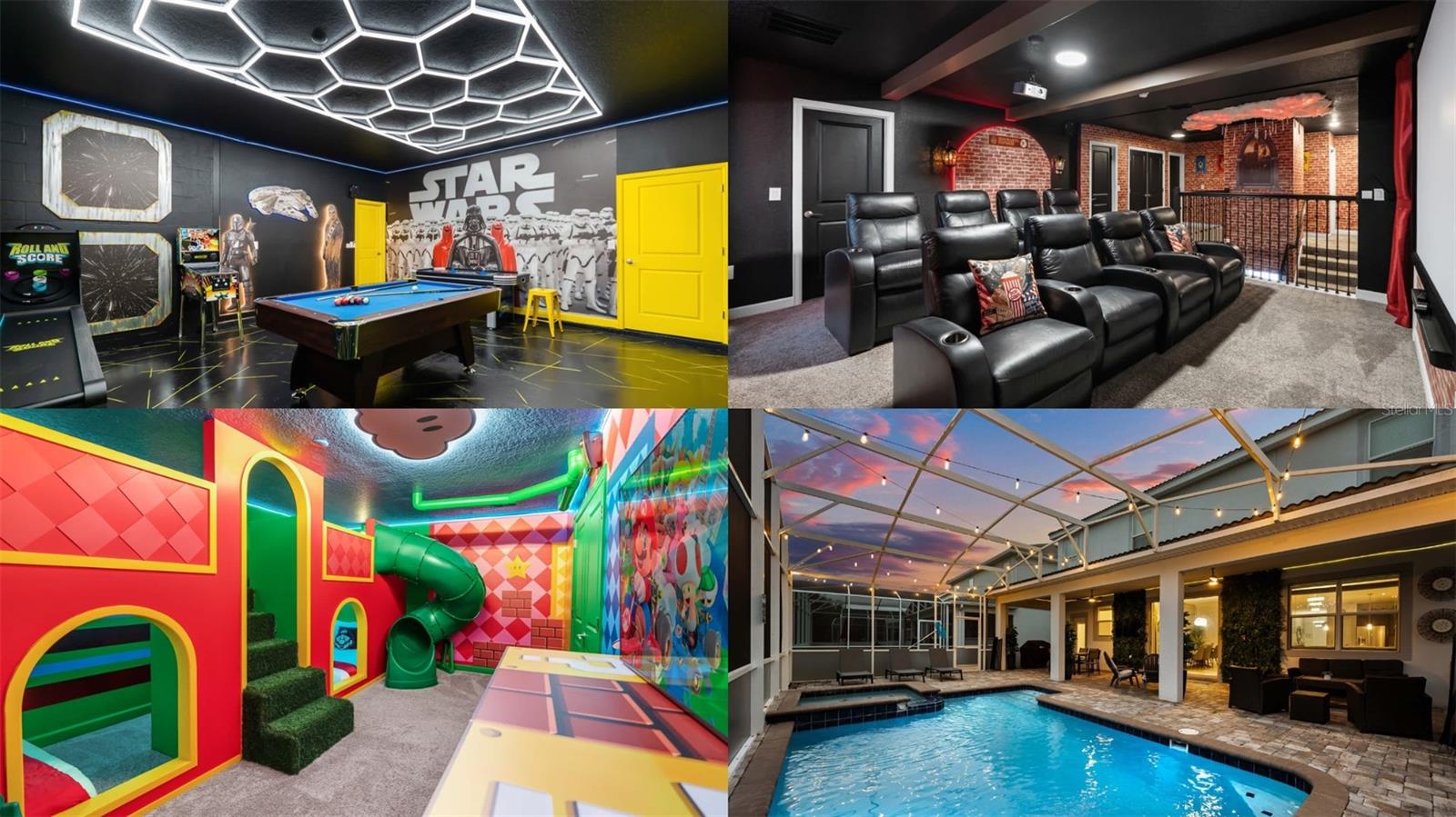 Bem-vindo a esta espetacular casa totalmente mobiliada de 9 quartos e 5 banheiros, localizada em uma das principais comunidades de resorts fechados de Orlando. Esteja você buscando um aluguel de curto prazo de alto desempenho ou uma segunda casa luxuosa, esta propriedade oferece estilo e renda projetados profissionalmente e cheios de luz natural, esta casa possui quartos temáticos, uma sala de jogos convertidos e áreas de estar espaçosas perfeitas para entretenimento. O nível principal oferece uma suíte primária com acesso direto ao deck da piscina e um banho de suíte com uma vaidade dupla, banheira de imersão e chuveiro fechado de vidro. A cozinha de conceito aberto possui armários de estilo shaker de 42 ", bancadas de granito, utensílios de aço inoxidável e uma área de assentos de bar-transbordando perfeitamente para a sala de jantar e família. Saia para desfrutar da piscina e da triagem, a toca e a banca de bordas, que se levanta, a salva-tagarelas, que se levanta, a salão que se levanta, com uma tabela que se aproxima, a sala de estar com uma triagem e uma tabela de lava-tola e uma lava-lavai, a sala de estar, que se levanta, a sala de estar com uma triagem, uma sala de estar, que se levanta, a salão de bordo, que se levanta. Onde as comodidades de classe mundial incluem um rio preguiçoso, slides de água, bloco de respingos, piscina no estilo de resort, fitness center, cinema, arcade, restaurante, barra tiki e muito mais. permanece.