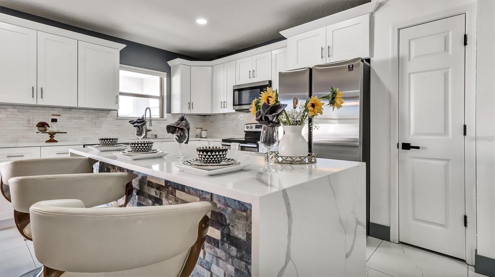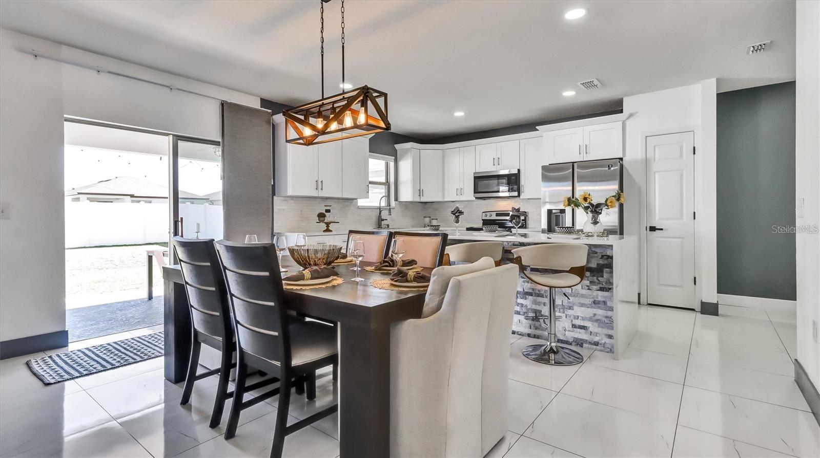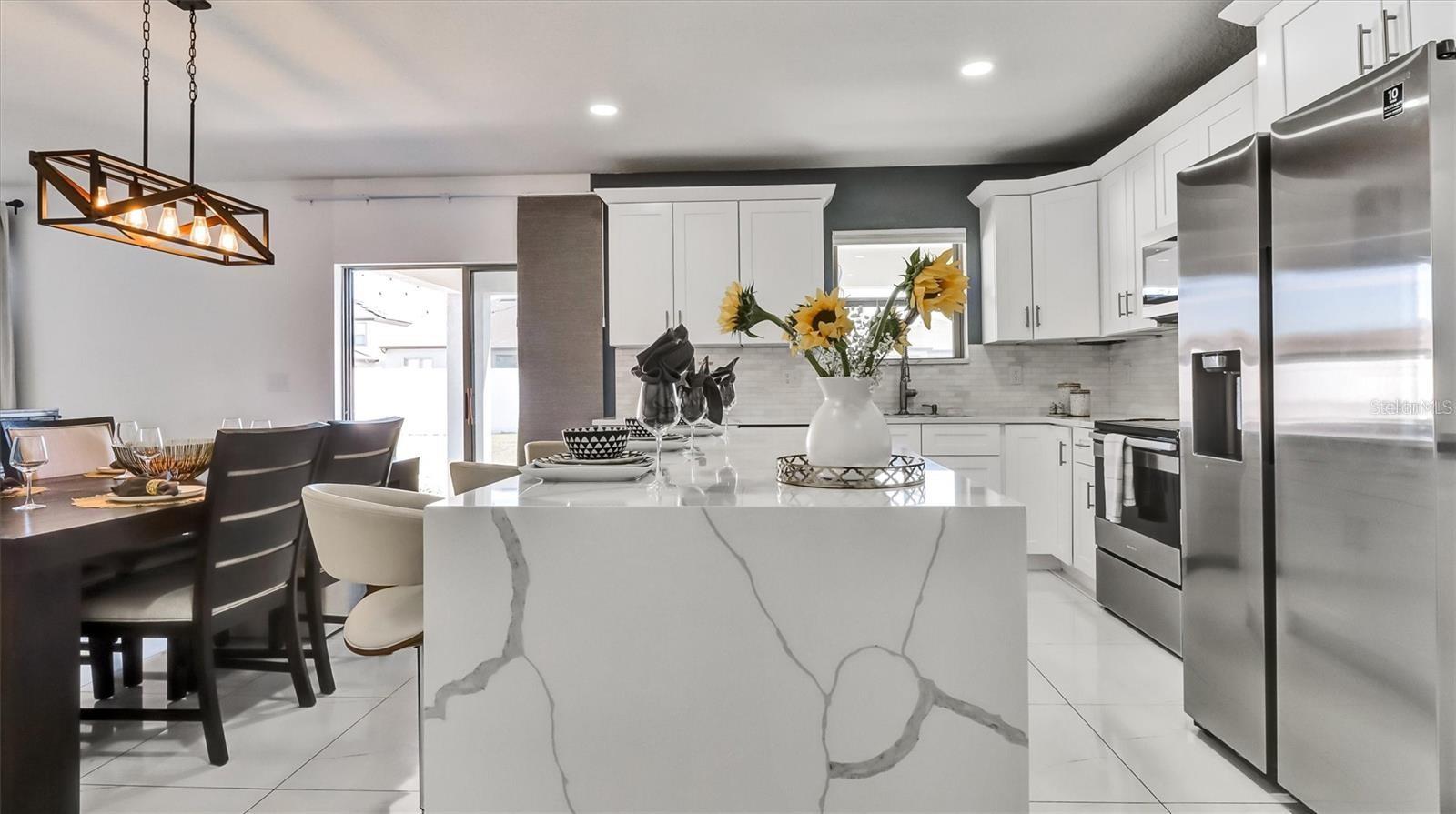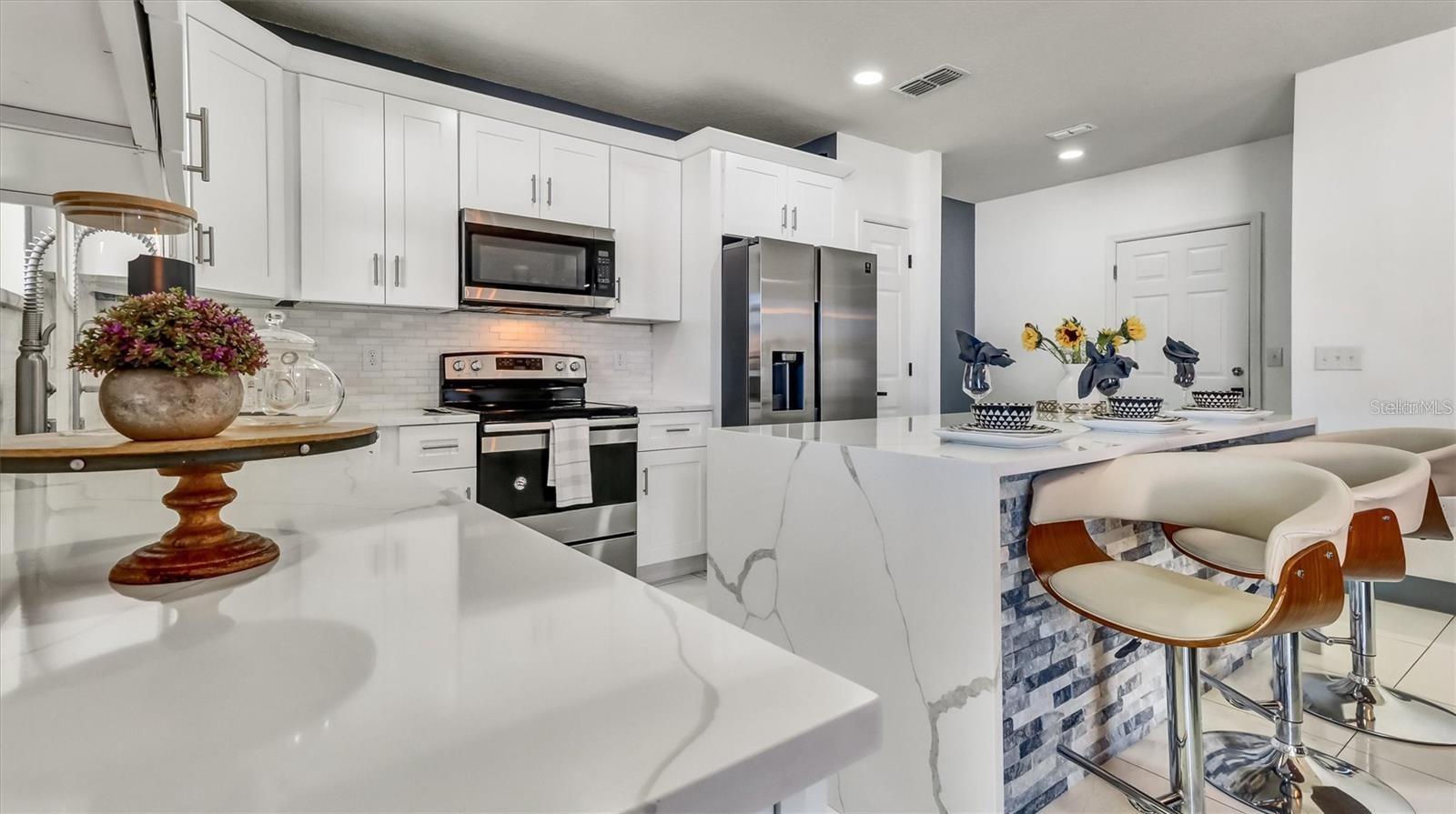 Esta impressionante casa de 4 quartos e 2,5 banheiros, construída em 2021, combina design moderno com acabamentos luxuosos. A planta de conceito aberto flui perfeitamente por todo o primeiro andar, destacado por ladrilhos de porcelana 24x24 com uma aparência elegante de mármore. A cozinha gourmet exibe armários de madeira, uma impressionante ilha de borda de cachoeira calacatta quartzo e bancadas elegantes de quartzo transportadas para os banheiros. A suíte master oferece um espaçoso closet personalizado, criando o retiro perfeito. Saia de um quintal cercado privado - ideal para uma futura piscina - completa com um lanai pavimentado para relaxar ou divertir. Os recursos adicionais incluem janelas com eficiência energética, um sistema de aspersão, câmeras de segurança e alto-falantes de som surround na área de estar. Convenientemente localizado perto de melhores restaurantes, parques temáticos mundialmente famosos e compras de primeira linha, esta casa oferece conforto e estilo no coração da vida central da Flórida.