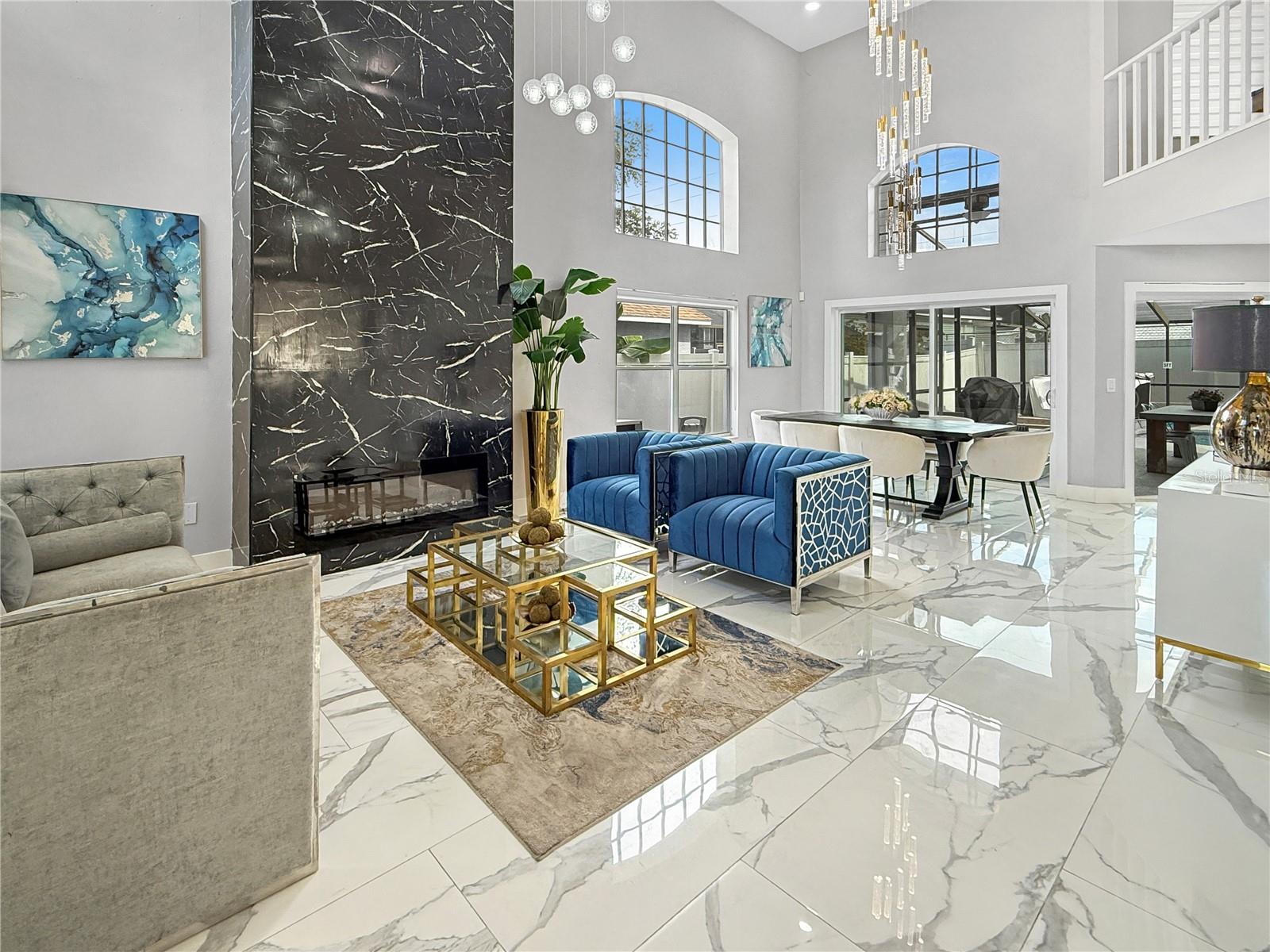 Bem-vindo a esta impressionante casa de 4 quartos e 2,5 banheiros que foi totalmente remodelada com acabamentos modernos por toda parte. Desde o momento em que você entra, você será recebido por tetos crescentes, piso elegante em estilo de mármore e um espaçoso layout de conceito aberto projetado para estilo e funcionalidade. A cozinha gourmet é o sonho de um chef, com uma enorme ilha em cascata, armários personalizados, utensílios de aço inoxidável, fornos duplos, geladeiras de vinho e iluminação de grife. As áreas de estar são brilhantes e convidativas, destacadas por uma lareira dramática do chão ao teto e janelas grandes que enchem a casa com luz natural. O quarto principal está convenientemente localizado no primeiro andar, oferecendo privacidade e facilidade de acesso, enquanto os quartos adicionais no andar de cima incluem quartos temáticos perfeitos para família ou convidados. Os banheiros possuem designs semelhantes a spa com uma banheira independente, chuva de chuva e acabamentos modernos elegantes. Esta casa oferece um HOA baixo e flexível, sem CDD, oferecendo mais liberdade e acessibilidade. Perfeitamente localizado em uma comunidade desejável, fornece fácil acesso a compras, restaurantes, grandes rodovias e as atrações mundialmente famosas da Flórida central. Com sua mistura de elegância, conforto e atualizações modernas, esta casa está realmente pronta e aguardando seu novo proprietário!