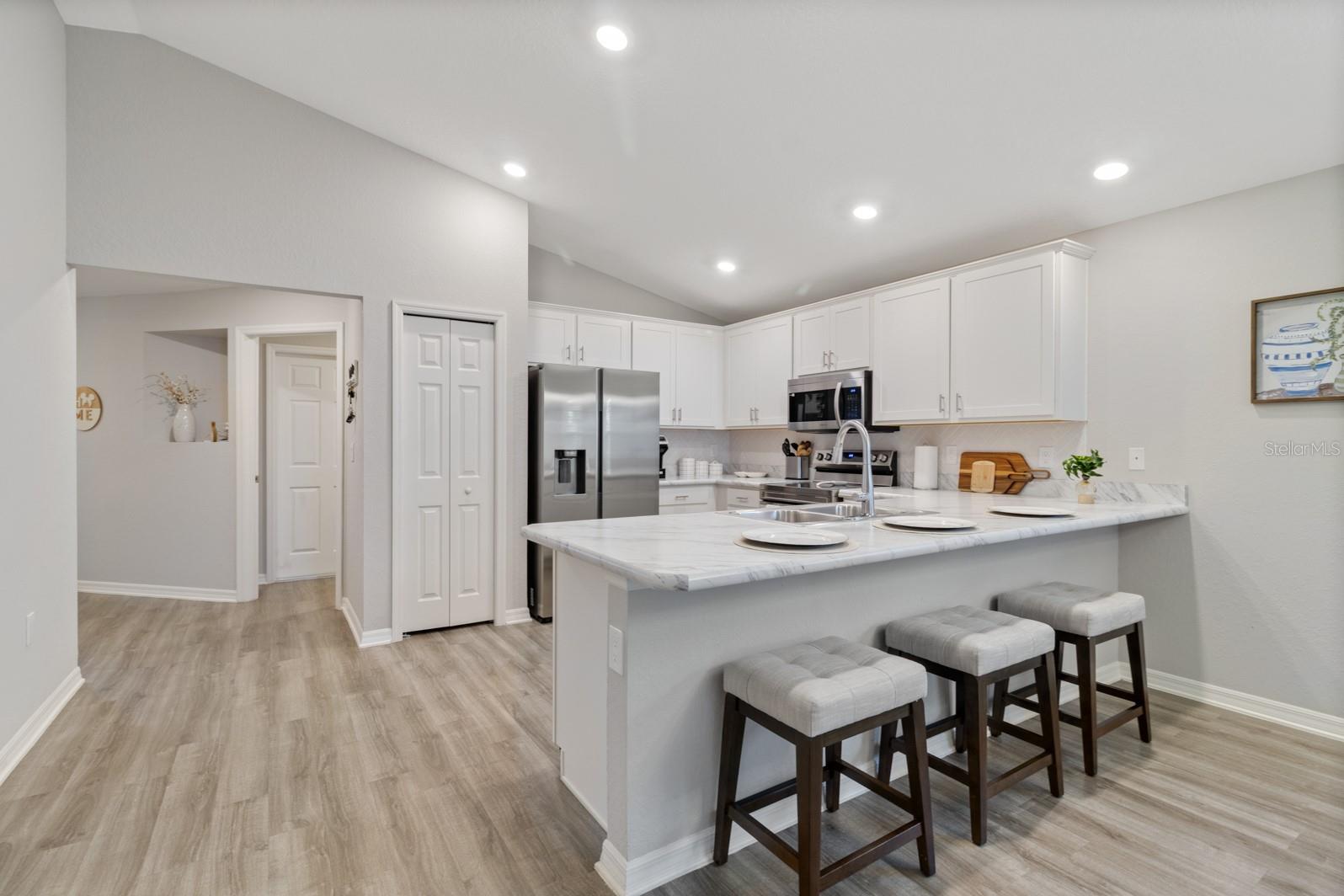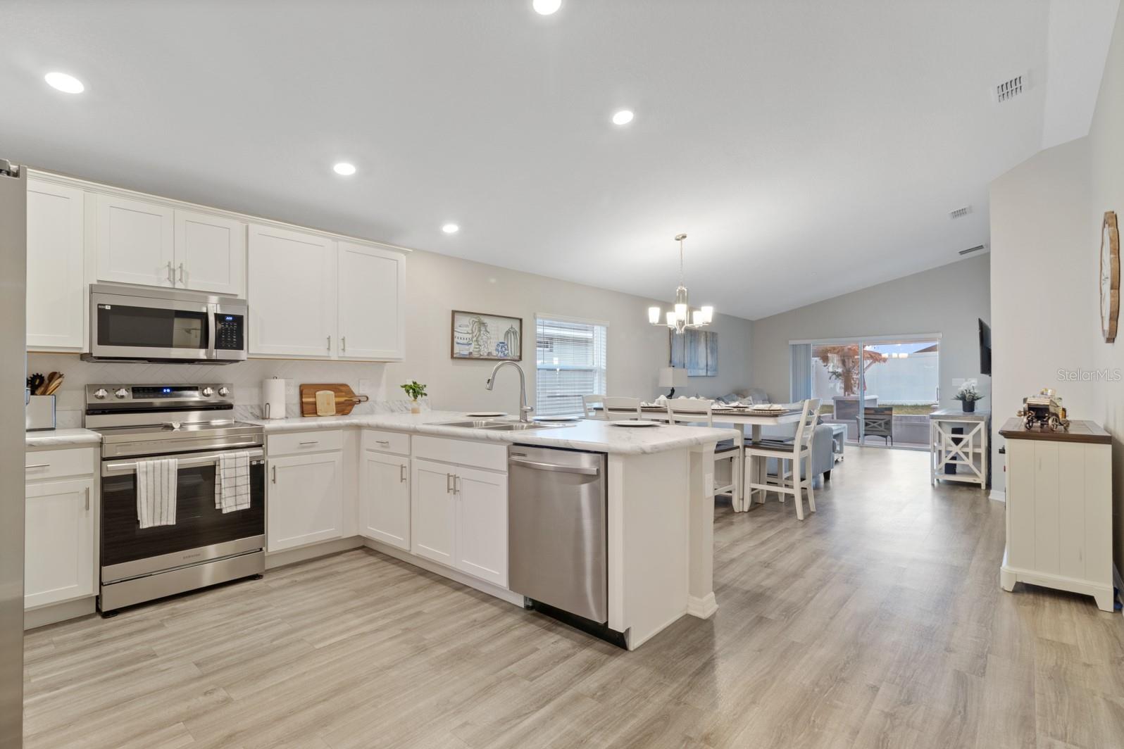 Entre nessa casa convidativa, onde estilo, conforto e conveniência se reúnem. Um layout aberto e aberto conecta perfeitamente a sala de reuniões, refeições e cozinha, todas colocadas sob tetos arejados de volume. A cozinha é um verdadeiro destaque com utensílios de aço inoxidável-incluindo uma faixa com um recurso de fritura de ar, uma despensa espaçosa, backsplash elegante e uma generosa bar de café da manhã de contra-altura, perfeita para refeições casuais ou divertidos. Em toda a casa, o piso de tábua de vinil de madeira de luxo aprimora as áreas de estar, lavanderia e banheiros, enquanto o tapete resistente a manchas acrescenta calor aos quartos. A suíte do proprietário oferece um retiro privado com um guarda-roupa e um banho de suíte com pias duplas, armários de estilo shaker que combinam com a cozinha, bancadas altas, um chuveiro e um armário de linho conveniente. Detalhes pensativos adicionais incluem uma lavanderia dedicada, persianas de janelas personalizadas, telhas arquitetônicas, isolamento e janelas com eficiência energética e uma varanda da frente coberta acolhedora que aprimora o apelo do meio-fio da casa. A vida ao ar livre é igualmente convidativa. Relaxe na linha coberta e coberta com um ventilador de teto, colocado em pavimentadoras de tijolos recém -instaladas e complete com acesso a água quente e fria. A propriedade também oferece atualizações práticas, como uma conexão externa do gerador, já no lugar, calhas de chuva, um sistema de irrigação e uma cerca de privacidade de vinil. Sem vizinhos traseiros, você desfrutará de paz e privacidade. Finalmente, a localização é imbatível. Convenientemente perto de Posner Park e Champions Gate, oferecendo fácil acesso a compras, restaurantes e grandes estradas. Esta casa combina perfeitamente atualizações modernas, design funcional e uma localização privilegiada.