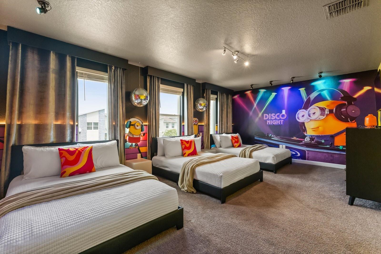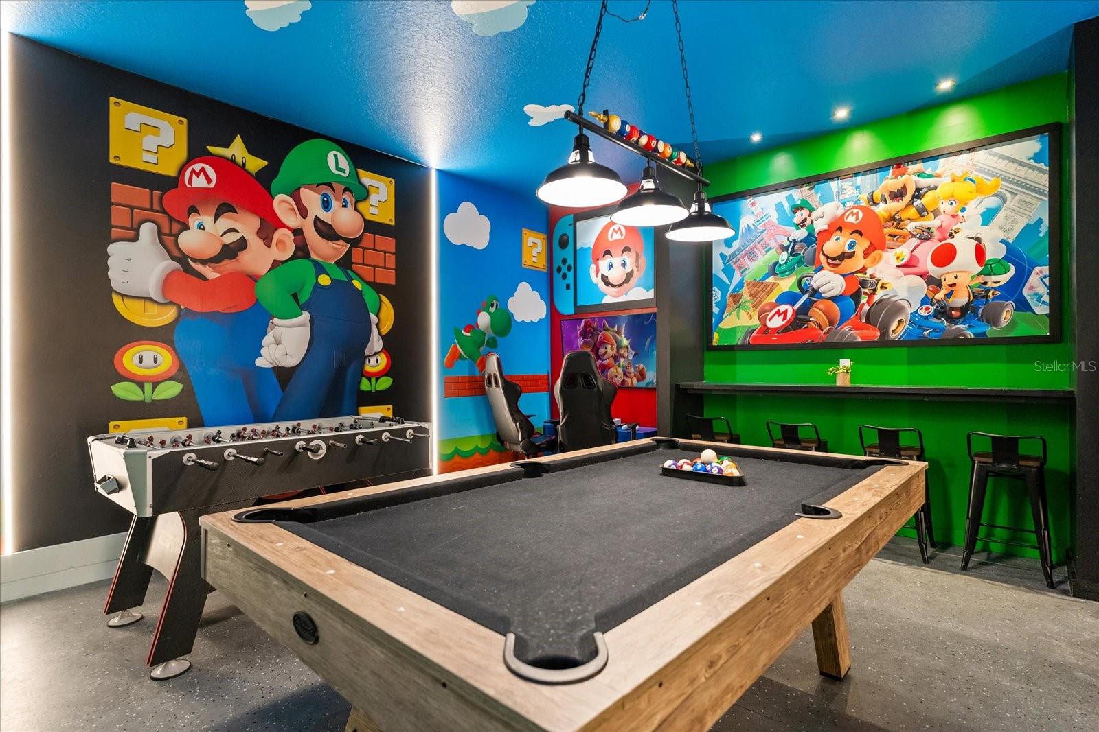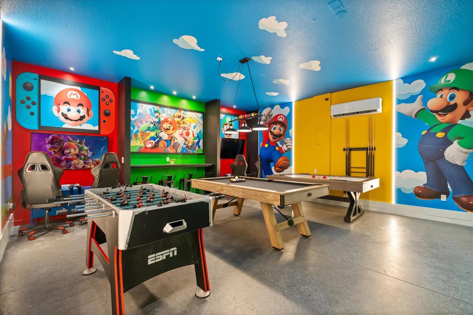 Bem-vindo à sua melhor oportunidade de investimento ou retiro de férias luxuoso na prestigiada comunidade Champions Gate Resort! Esta impressionante residência unifamiliar construída em 2019 possui 9 quartos espaçosos e 5 banheiros completos em 3.909 pés quadrados de área útil aquecida (4.780 pés quadrados no total). Esta moradia mobilada chave na mão foi concebida para alugueres de curta duração sem interrupções, actualmente com produção de rendimento superior gerida por uma das sociedades de gestão mais competentes da área. Entre nesta casa contemporânea de dois andares com uma planta aberta que combina perfeitamente luxo e entretenimento. A cozinha gourmet impressiona com eletrodomésticos de aço inoxidável, incluindo lava-louças, micro-ondas, fogão e geladeira, todos dispostos contra piso de cerâmica e uma linha de visão aberta para a área da piscina para um fluxo interno e externo sem esforço. A ampla sala de estar serve como ponto de encontro central, com um sofá secional cinza em forma de L, poltronas bege, uma mesa de centro de vários níveis e uma grande TV de tela plana montada na parede, tudo sob um teto de bandeja com iluminação de realce e um lustre de cristal para uma vibração relaxante e luxuosa. No andar de cima e de baixo, descubra nove quartos temáticos feitos sob medida para diversão em família e apelo de alta ocupação. Os destaques incluem um quarto infantil com tema da Sorveteria Mickey Mouse, com duas camas de solteiro brancas (uma com rodízio), murais vibrantes, paredes em azul água e iluminação pendente; um espaço temático Minions Disco Night com três camas de solteiro roxas, detalhes em neon do arco-íris e bolas de discoteca para uma atmosfera de festa energética; e um sofisticado quarto principal (15x12) com cama king-size, edredom acolchoado cinza, TV na parede e acesso ao banheiro privativo. Todos os quartos oferecem armários embutidos, piso em carpete e decoração temática que evoca a magia da Disney, acomodando confortavelmente até 26 pessoas. O entretenimento é abundante na imersiva sala de jogos com tema Super Mario, com piso de concreto, teto pintado de nuvens azuis, mesa de sinuca de madeira com feltro amarelo, air hockey, pebolim, cadeiras de jogos, detalhes em neon e luminárias pendentes para uma sensação de arcade retrô. Do lado de fora, relaxe em sua piscina privativa aquecida e spa, cercado por uma varanda com deck de tijolos, espreguiçadeiras, sofá ao ar livre e conjunto de jantar - perfeito para o pôr do sol na Flórida e reuniões ao ar livre. Como parte do Champions Gate Resort, desfrute de comodidades em estilo resort no Oasis Clubhouse, incluindo uma instalação de 25.000 pés quadrados com duas piscinas aquecidas, um rio lento de 850 pés, tobogãs, splash pad, academia de ginástica, fliperama, cinema, tiki bar, quadras de tênis e vôlei e campos de golfe profissionais projetados por Greg Norman. Idealmente localizado a apenas 10 minutos da Disney World, a 20 minutos do Universal Studios e a 35 minutos do Aeroporto Internacional de Orlando, com lojas e restaurantes próximos no Downtown Champions Gate. Seja para geração de rendimento, habitação multigeracional ou para a casa de férias dos seus sonhos, esta moradia promete fortes retornos e memórias para toda a vida. Agende sua exibição privada hoje mesmo – oportunidades como essa no Champions Gate não durarão!