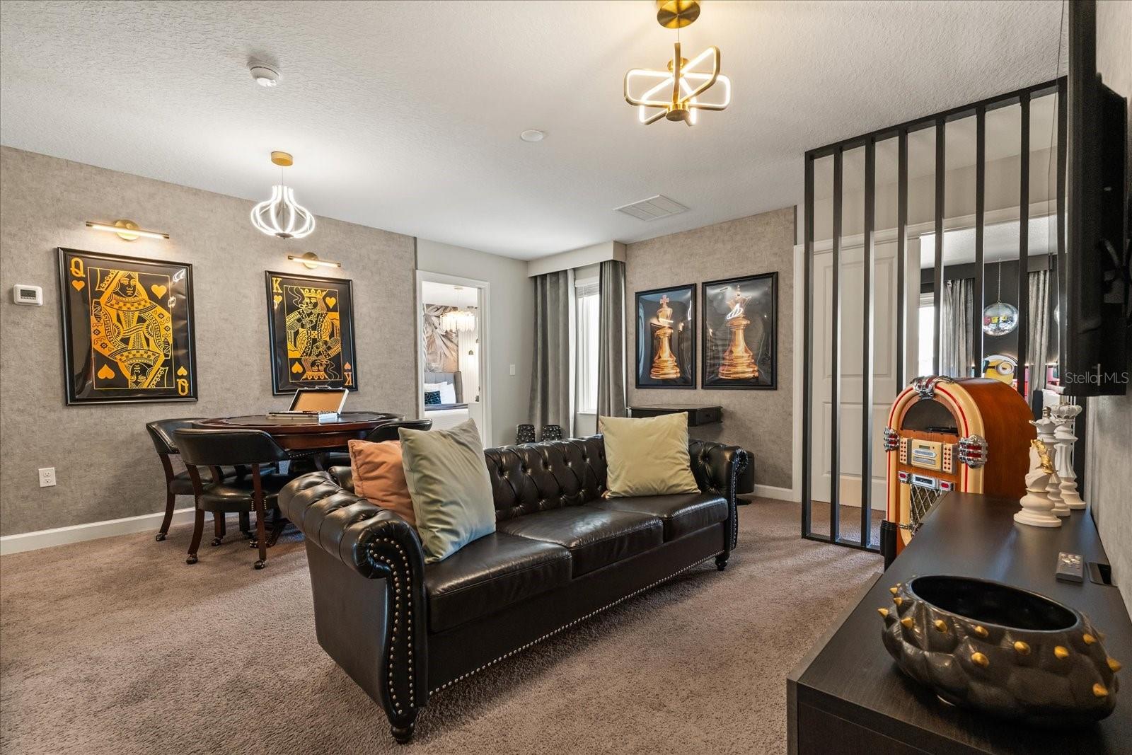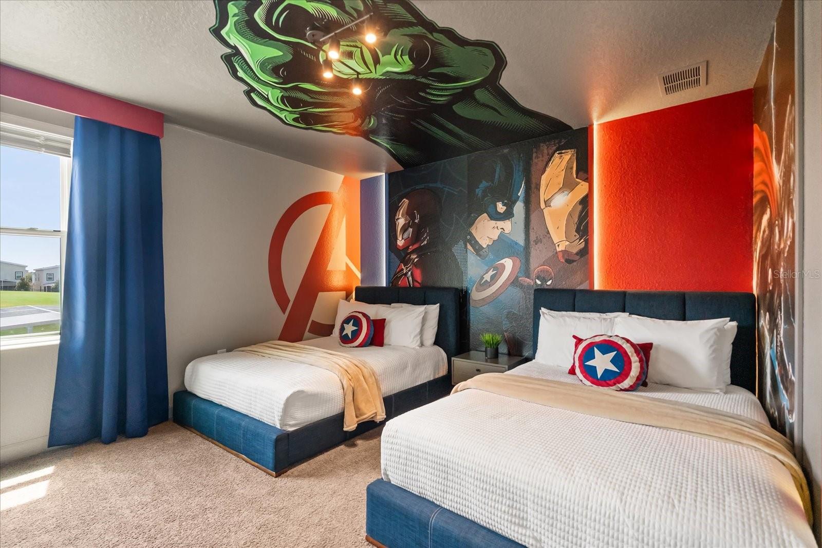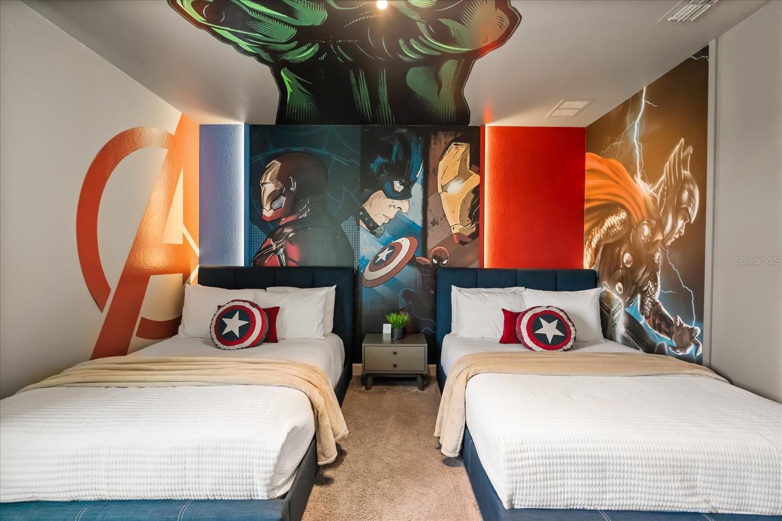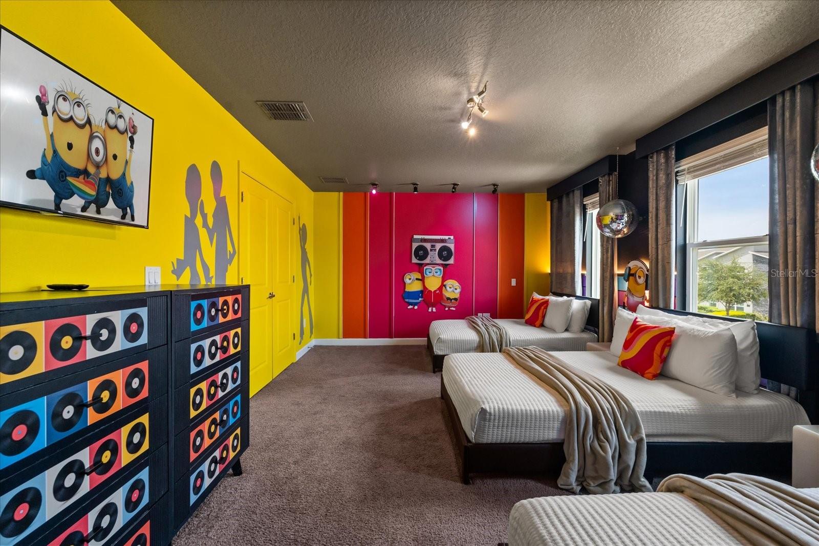Bem-vindo à sua melhor oportunidade de investimento ou retiro de férias luxuoso na prestigiada comunidade Champions Gate Resort! Esta impressionante residência unifamiliar construída em 2019 possui 9 quartos espaçosos e 5 banheiros completos em 3.909 pés quadrados de área útil aquecida (4.780 pés quadrados no total). Esta moradia mobilada chave na mão foi concebida para alugueres de curta duração sem interrupções, actualmente com produção de rendimento superior gerida por uma das sociedades de gestão mais competentes da área. Entre nesta casa contemporânea de dois andares com uma planta aberta que combina perfeitamente luxo e entretenimento. A cozinha gourmet impressiona com eletrodomésticos de aço inoxidável, incluindo lava-louças, micro-ondas, fogão e geladeira, todos dispostos contra piso de cerâmica e uma linha de visão aberta para a área da piscina para um fluxo interno e externo sem esforço. A ampla sala de estar serve como ponto de encontro central, com um sofá secional cinza em forma de L, poltronas bege, uma mesa de centro de vários níveis e uma grande TV de tela plana montada na parede, tudo sob um teto de bandeja com iluminação de realce e um lustre de cristal para uma vibração relaxante e luxuosa. No andar de cima e de baixo, descubra nove quartos temáticos feitos sob medida para diversão em família e apelo de alta ocupação. Os destaques incluem um quarto infantil com tema da Sorveteria Mickey Mouse, com duas camas de solteiro brancas (uma com rodízio), murais vibrantes, paredes em azul água e iluminação pendente; um espaço temático Minions Disco Night com três camas de solteiro roxas, detalhes em neon do arco-íris e bolas de discoteca para uma atmosfera de festa energética; e um sofisticado quarto principal (15x12) com cama king-size, edredom acolchoado cinza, TV na parede e acesso ao banheiro privativo. Todos os quartos oferecem armários embutidos, piso em carpete e decoração temática que evoca a magia da Disney, acomodando confortavelmente até 26 pessoas. O entretenimento é abundante na imersiva sala de jogos com tema Super Mario, com piso de concreto, teto pintado de nuvens azuis, mesa de sinuca de madeira com feltro amarelo, air hockey, pebolim, cadeiras de jogos, detalhes em neon e luminárias pendentes para uma sensação de arcade retrô. Do lado de fora, relaxe em sua piscina privativa aquecida e spa, cercado por uma varanda com deck de tijolos, espreguiçadeiras, sofá ao ar livre e conjunto de jantar - perfeito para o pôr do sol na Flórida e reuniões ao ar livre. Como parte do Champions Gate Resort, desfrute de comodidades em estilo resort no Oasis Clubhouse, incluindo uma instalação de 25.000 pés quadrados com duas piscinas aquecidas, um rio lento de 850 pés, tobogãs, splash pad, academia de ginástica, fliperama, cinema, tiki bar, quadras de tênis e vôlei e campos de golfe profissionais projetados por Greg Norman. Idealmente localizado a apenas 10 minutos da Disney World, a 20 minutos do Universal Studios e a 35 minutos do Aeroporto Internacional de Orlando, com lojas e restaurantes próximos no Downtown Champions Gate. Seja para geração de rendimento, habitação multigeracional ou para a casa de férias dos seus sonhos, esta moradia promete fortes retornos e memórias para toda a vida. Agende sua exibição privada hoje mesmo – oportunidades como essa no Champions Gate não durarão!