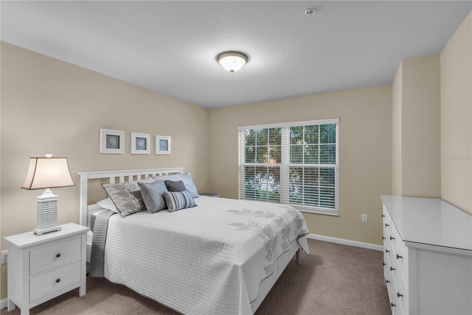 Condomínio totalmente mobiliado com 3 quartos e 2 banheiros no segundo andar e garagem anexa para 1 carro no condomínio fechado Promenades em Bella Trae em ChampionsGate, oferecendo um estilo de vida de baixa manutenção e fechamento adequado para ocupação do proprietário em tempo integral, uso sazonal ou propriedade de aluguel de longo prazo. Esta planta baixa “Cormorant” da Pulte Homes apresenta uma entrada no pátio privado, área de jantar formal ideal para a vida cotidiana ou entretenimento, cozinha aberta e sala de família, layout de quarto dividido para maior privacidade e um grande pátio coberto e com tela com vista para um lago e área de conservação sem vizinhos traseiros. A cozinha inclui bancada de granito, armários de bordo de 42 polegadas com sancas e ferragens, backsplash de azulejos, balcão de café da manhã, armário despensa e ilha central, criando um espaço funcional para uso diário. Piso cerâmico é instalado na cozinha e nos banheiros, com acabamentos neutros para maior durabilidade e facilidade de manutenção. Portas de vidro deslizantes abrem para o pátio de azulejos e tela, estendendo a área de estar ao ar livre com águas tranquilas e vistas para a conservação. A suíte do proprietário oferece vista para o lago, closet e banheiro privativo com pia dupla de granito, chuveiro com box de vidro e vaso sanitário separado. Dois quartos de hóspedes estão posicionados na frente do condomínio e compartilham um banheiro completo com penteadeira de granito e combinação banheira/chuveiro, proporcionando flexibilidade para os hóspedes, uso em home office ou ocupação de longo prazo. Armário de lavanderia com lavadora e secadora está localizado fora da cozinha. As comodidades da comunidade incluem um clube em estilo resort com piscina aquecida e spa, academia, biblioteca, bilhar e salas de reuniões, putting green, bocha e quadras de tênis e pickleball.