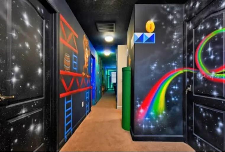 Bem-vindo a uma deslumbrante casa luxuosa de seis quartos localizada a poucos minutos do Walt Disney World® e Universal Studios®. Projetada para estadias memoráveis e com grande potencial de aluguel de curto prazo, esta residência totalmente temática acomoda até 14 pessoas e oferece entretenimento envolvente para todas as idades. A casa possui vários quartos com temas personalizados, um cinema privativo com jogos de fliperama e uma sala de jogos e loft dedicados. As comodidades ao ar livre incluem piscina privativa aquecida com cerca de segurança opcional, varanda com tela, assentos no pátio, TV externa, espreguiçadeiras e churrasqueira. No interior, desfrute de um layout de conceito aberto com cozinha totalmente equipada, assentos em ilha, área de jantar espaçosa, sala familiar, Wi-Fi rápido, smart TVs, HVAC central e lavanderia completa. Ideal como residência principal, segunda residência ou aluguel por temporada com geração de renda na principal área de resorts de Orlando.