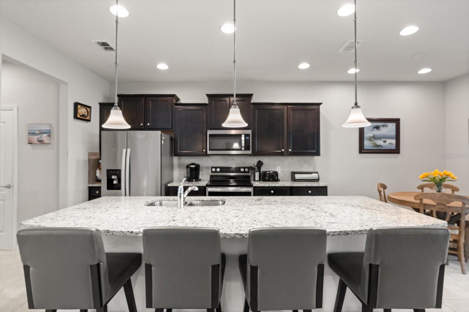 Bem-vindo ao retiro dos seus sonhos na Flórida! Elegante e espaçosa residência urbana de 3 QUARTOS e 2,5 BANHEIROS, com garagem para 2 carros, perfeitamente projetada ou para qualquer pessoa que busca o estilo de vida por excelência da Flórida Central perto da Disney! Situado na tranquila varanda da comunidade Bella Trae. Entre pela porta da frente e você será recebido com tetos altos e uma planta aberta. A área de estar principal integra perfeitamente os espaços de cozinha, sala de jantar e sala de estar, criando um ambiente ideal para relaxamento e entretenimento. A cozinha é um sonho culinário com bancada em granito, lindos armários, despensa, pia embutida e iluminação embutida e suspensa. Também possui um amplo bar de café da manhã, perfeito para refeições rápidas ou culinária social. No andar de cima, o QUARTO PRIMÁRIO com enorme closet. O banheiro privativo possui pias duplas, amplo balcão com balcões de granito e um chuveiro luxuoso. Os quartos adicionais são de tamanho generoso, oferecendo uso flexível de quarto de hóspedes, home office ou sala de jogos. Localizado em condomínio fechado com comodidades como academia, piscina, academia. HOA inclui instalações junto com áreas de manutenção e recursos de lixo de manutenção de piscina para substituição de telhado e pintura externa e muito mais. O exterior com acabamento em estuque e cobertura em telha, inclui sistema de irrigação e portas de correr que dão acesso a uma varanda blindada. Além da comunidade, você está a poucos minutos de lojas, restaurantes e de muitas rodovias importantes. Perto de todos os parques da Disney e do aeroporto de Orlando.