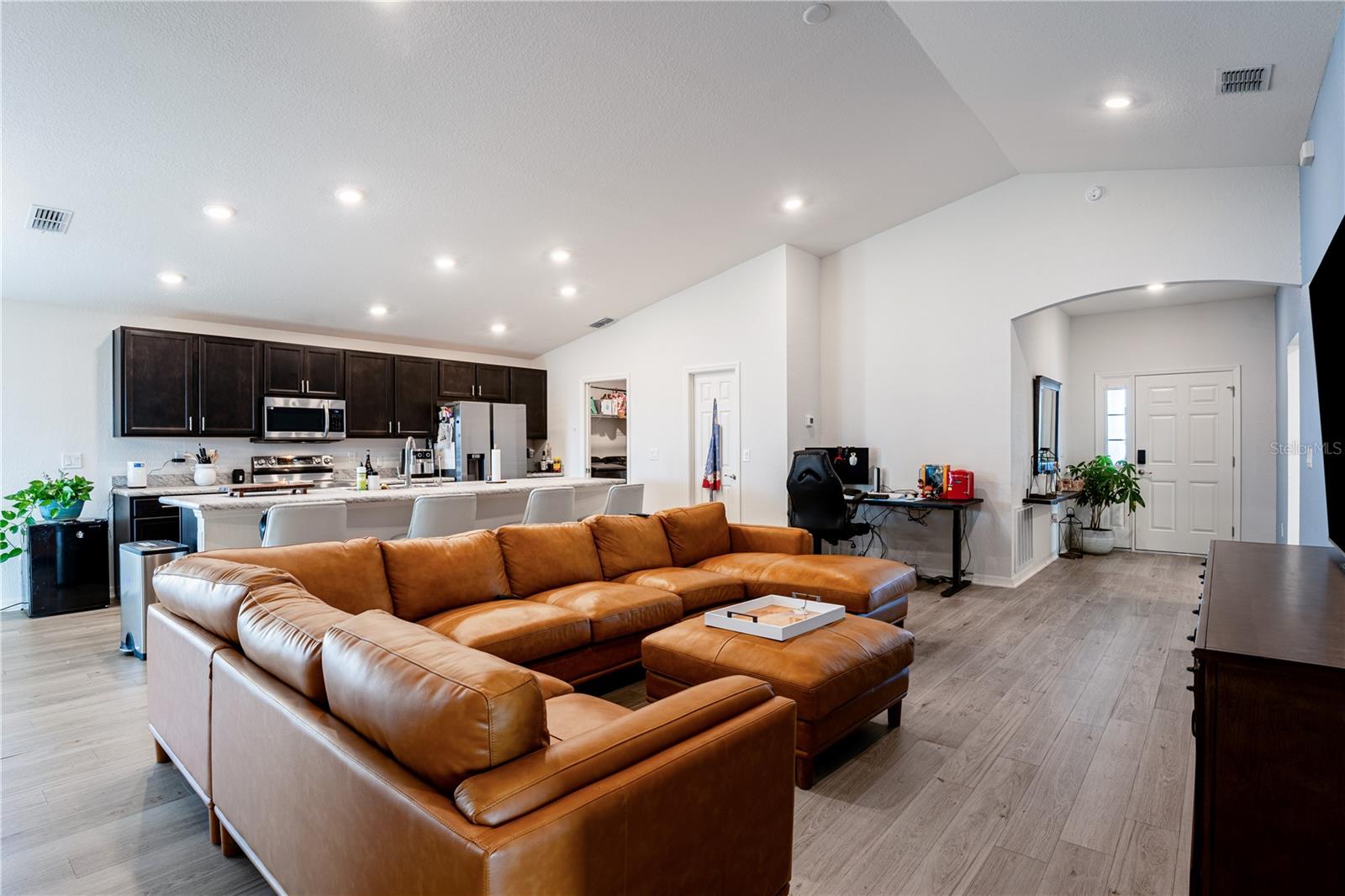 Descubra o charme de 1524 Fleur Drive, Davenport, FL 33837! Bem-vindo a esta casa unifamiliar excepcional na altamente procurada comunidade de Landings de Genebra. Esta construção de 2023 oferece estilo e funcionalidade contemporâneos, com 4 quartos espaçosos, 2 banheiros e 1.819 pés quadrados de espaço de vida cuidadosamente projetado. Entre em um layout brilhante e de conceito aberto, onde uma cozinha moderna aguarda, completa com armários de café expresso, utensílios de aço inoxidável Samsung, uma despensa e uma ilha central versátil perfeita para preparação para refeições ou jantar casual. O café adjacente e a sala de reuniões criam um fluxo contínuo, ideal para entretenimento. O piso de tábua de vinil de madeira luxo enfeita as principais áreas de estar, enquanto o carpete de pelúcia e resistente a manchas acrescenta conforto aos quartos. A suíte do proprietário é um verdadeiro retiro, com um guarda-roupa e um banheiro privativo com vaidades duplas, um chuveiro de azulejos e um armário de água privado. Desfrute de uma vida ao ar livre na Lanai coberta, com vista para um quintal lindamente mantido com amplo espaço para relaxamento ou atividades. Os recursos adicionais incluem uma garagem de 2 carros, janelas e isolamento com eficiência energética, persianas personalizadas e uma garantia completa do construtor para adicionar a paz de espírito. Aninhado em um lote de 1819 pés quadrados, esta casa oferece uma baixa taxa anual de HOA de apenas US $ 150 e está convenientemente localizada perto de opções de compras, refeições e entretenimento. Não perca esta oportunidade de fazer com que 1524 Fleur dirigisse seu sonho para casa!