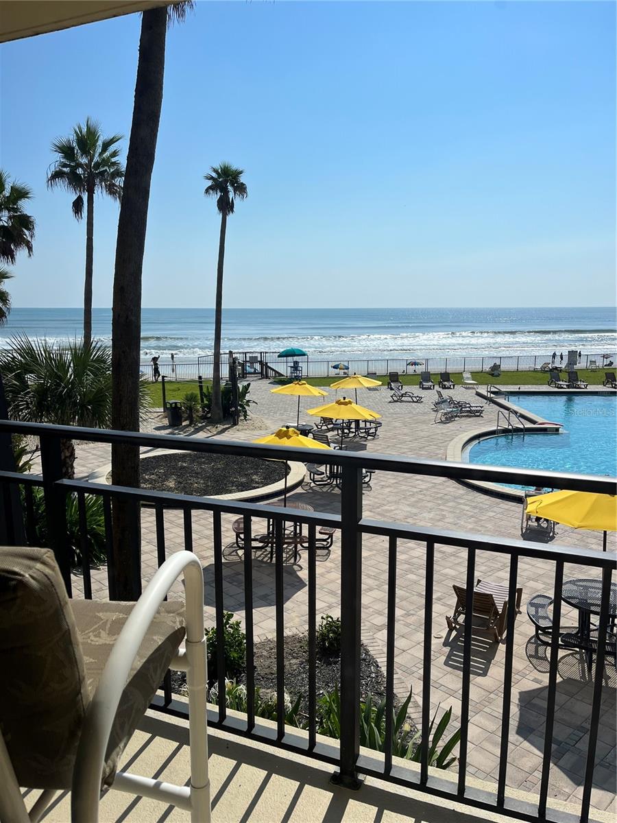Ótima oportunidade para propriedade com vista direta para o mar, varanda privativa e unidade completa de um quarto. Recém-pintado e vendido totalmente mobiliado com cozinha completa e lindo chuveiro de azulejos atualizado com assento. A unidade é totalmente revestida em padrão diagonal. A sala de estar é bastante aconchegante, com sofá completo, poltrona reclinável e poltrona para você aproveitar com todos os hóspedes. Aproveite a recém-renovada piscina olímpica ao ar livre, juntamente com o famoso Tiki Bar. Além disso, aproveite a piscina coberta aquecida que parece um spa! A sala de jogos é épica, juntamente com uma incrível loja de presentes e um bar interno com excelentes comidas e bebidas abertas diariamente. O HOA cobre: energia elétrica, água, manutenção predial, áreas comuns, internet e TV a cabo, piscina, recepção, área de atividades e muito mais. Aprovação HOA necessária e aplicação em documentos. A localização fantástica fica a apenas 3 km do famoso calçadão de Daytona Beach e você estará bem no coração de Daytona Beach, perto da Lagoa de Daytona, dos restaurantes Ocean Walk, do Main Street Pier & Boardwalk e muito mais. O aeroporto e o Daytona Beach Speedway ficam a aproximadamente 13 km de distância. Todas as medidas são aproximadas e as informações não são garantidas. Aproveite a vida na praia ou como um ótimo investimento.