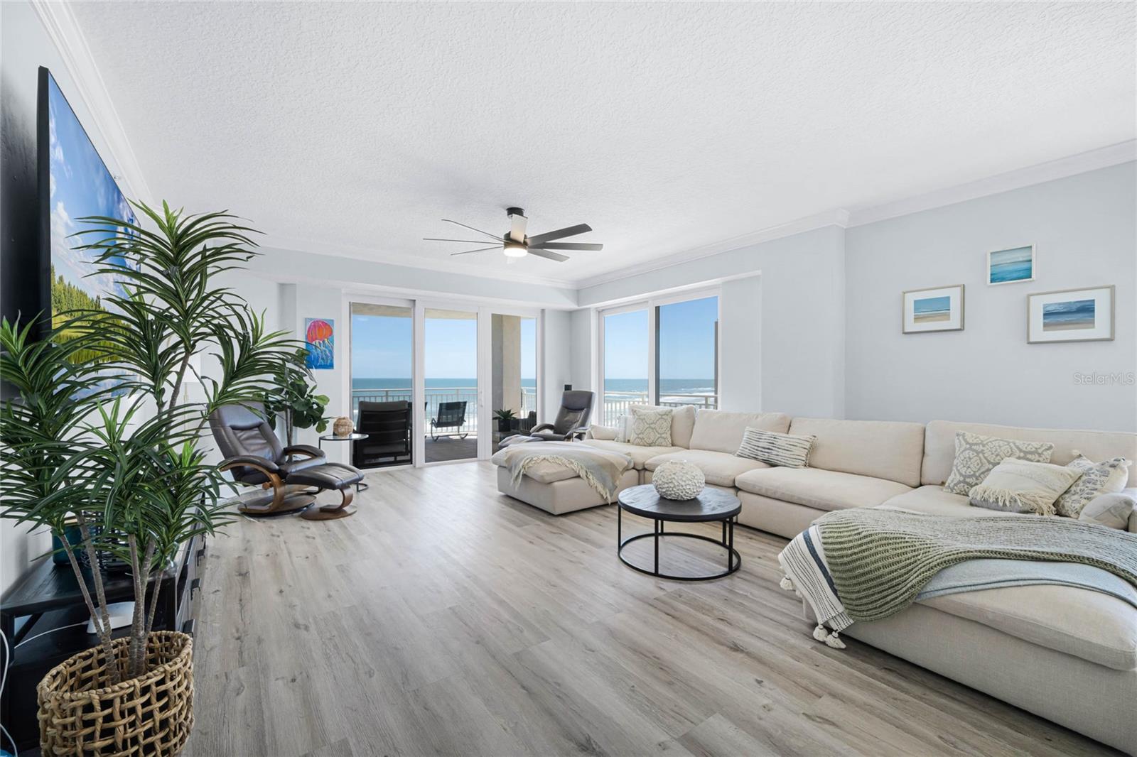 Aqui está sua chance de possuir uma das unidades de esquina mais procuradas do edifício St Maarten. Este condomínio fica no quinto andar e tem a maior planta do prédio, com mais de 2.500 pés quadrados de área útil e 2 grandes varandas. Há janelas na frente, nas laterais e nos fundos do condomínio e uma varanda envolvente com vista direta para a praia e uma excelente vista em ambas as direções. A varanda traseira oferece um excelente ponto de vista para assistir ao lançamento de foguetes. A sala na parte traseira da unidade tem vista para a praia. Há eletrodomésticos de aço inoxidável e bancadas de granito na cozinha ampla e atualizada, com piso frio. O amplo quarto principal, com casa de banho privativa, fica nas traseiras do condomínio com acesso à ampla varanda e excelentes vistas para a praia desde o interior. O banheiro privativo tem piso frio, banheira de hidromassagem e chuveiro duplo. Dois grandes quartos ficam na frente do condomínio, um deles com banheiro privativo e varanda com vista para a cidade, e outro compartilha o banheiro de hóspedes. Junto à cozinha existe uma lavandaria, arrecadação e uma grande despensa que oferece muitas opções de arrumação. O edifício do condomínio dispõe de uma piscina interior e spa, duas piscinas exteriores e spa, duas saunas, uma sala de fitness, uma sala de convívio, uma sala de bilhar, uma arrecadação para bicicletas, um parque para cães, outros equipamentos desportivos ao ar livre e amplo estacionamento. para proprietários/hóspedes. Esta unidade também vem com uma vaga de estacionamento designada sob o prédio. É permitido o aluguer de curta duração pelo que existe a oportunidade de utilizar o condomínio como negócio, no entanto não se encontra actualmente a ser utilizado para esse fim, o período mínimo de aluguer é de duas semanas. O condomínio está sendo vendido sem mobília, mas a maioria dos móveis são negociáveis. O edifício acaba de passar por uma grande renovação, incluindo uma nova área de piscina exterior e deck, um novo paredão, uma nova piscina interior e um novo telhado. Todo o edifício está sendo repintado e novas grades de varanda estão sendo instaladas como parte do cronograma de manutenção regular, coberto pelas taxas HOA.