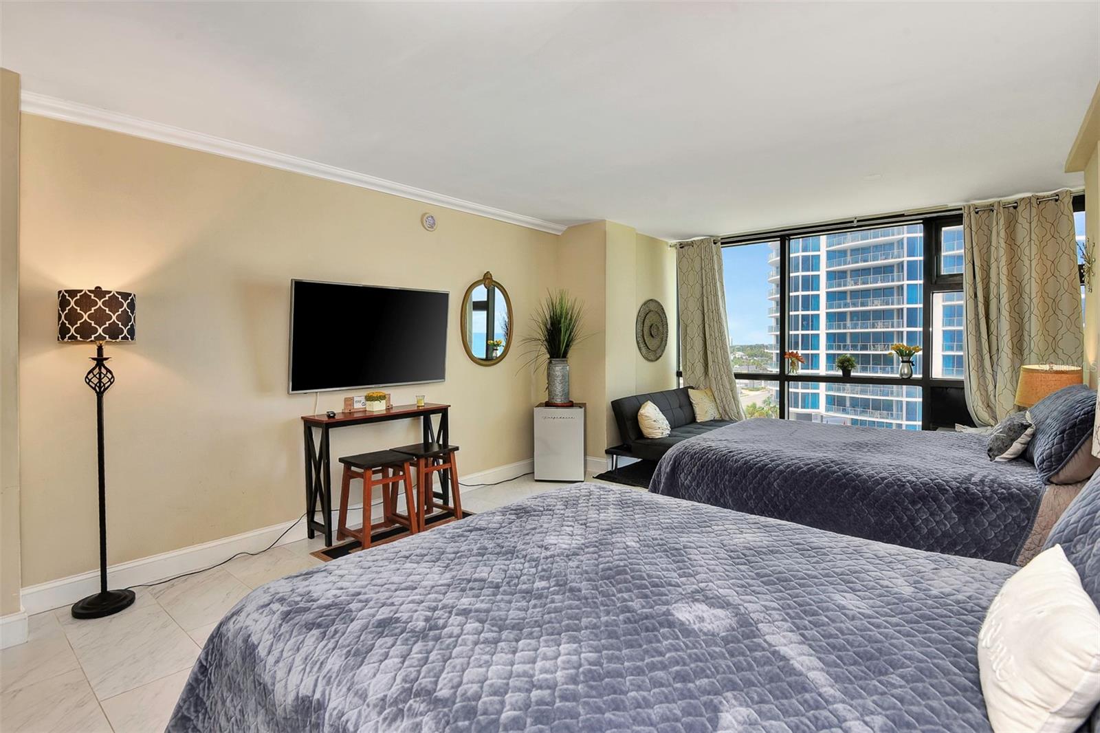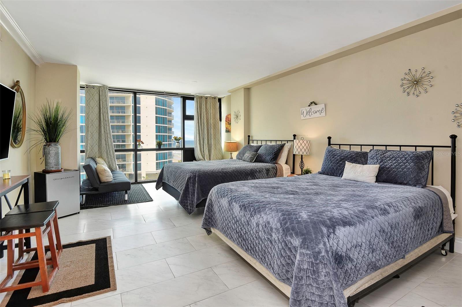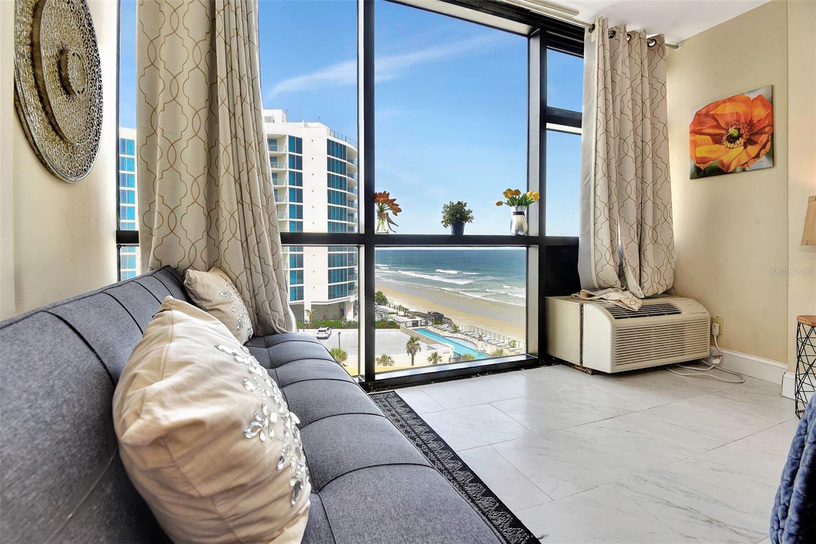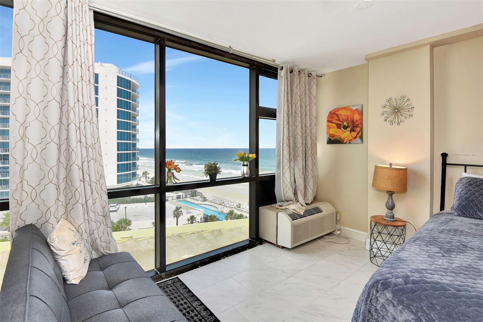 Experimente o melhor estilo de vida de praia neste deslumbrante condomínio. Com uma remodelação moderna e elegante, este luxuoso condomínio de 2 unidades está completo com janelas do chão ao teto e oferece vistas deslumbrantes sobre o Oceano Atlântico. As duas unidades, 620 e 621, combinam-se para 793 pés quadrados de beleza, garantindo amplo espaço para que todos possam relaxar e descontrair com conforto. 621 possui uma nova e elegante cama king-size, dois sofás novos, um lindo banheiro e piso de porcelanato por toda parte. A segunda unidade, 620, possui duas camas queen size, um novo e elegante sofá futon, uma cozinha compacta, um banheiro visível, porcelanato por toda parte, e esta unidade pode acomodar confortavelmente até cinco pessoas. Relaxe e desfrute de uma variedade de comodidades incríveis, incluindo um lobby totalmente remodelado, corredores atualizados com carpete novo instalado em 2024, uma piscina espetacular e um bar tiki. Tudo isto vem com a oportunidade de aderir ao programa de aluguer diário gerido pela equipa de gestão local. Você pode desfrutar de uma renda extra sem complicações para você, com divisão de lucro 80/20. Estas duas unidades destacam-se da concorrência porque foram totalmente remodeladas e têm vistas incríveis. Um histórico comprovado de aluguéis, bem como quaisquer aluguéis futuros, serão transferidos com a nova propriedade. A melhor característica deste condomínio é a localização! A poucos passos das praias arenosas de Daytona, você terá seu próprio pedaço de paraíso ao seu alcance. Esteja você procurando um refúgio tranquilo ou um cenário de praia vibrante, você encontrará tudo o que precisa para relaxar e recarregar energias neste lindo e luxuoso condomínio. Nota: A unidade 620 vem com um locatário de longo prazo e o aluguel será transferido para novos proprietários. HOA de taxa mensal de $ 809 que cobre todas as comodidades é totalmente coberta por este locatário. Em novembro de 2024, a taxa de avaliação terminou. Haverá renda adicional proveniente de todos os aluguéis do 2º condomínio 621 com divisão 80/20. Caso haja interesse, os novos proprietários têm a opção de manter o 621 fora do programa de aluguel, apenas para uso pessoal.