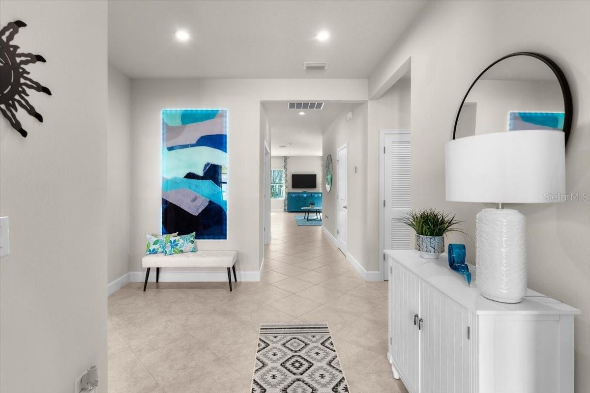 Bem-vindo à casa dos seus sonhos na cobiçada comunidade Eagle Crest! Esta impressionante residência de 2 anos, apresentando o amado modelo Baymont, simboliza luxo e conforto modernos com mais de US$ 50.000 em atualizações de qualidade. Situada em um novo condomínio vibrante, esta residência espaçosa possui 3 quartos, 2 banheiros, além de uma versátil sala flexível, que oferece amplo espaço para relaxamento e entretenimento. Ao entrar pela porta frontal de vidro atualizada, você é saudado pela grandiosidade dos tetos de 10 pés e do piso de cerâmica requintado, que foi colocado em um padrão de corte de diamante atualizado e se estende por toda a área principal da casa, criando um ambiente de elegância e sofisticação. A cozinha atualizada é uma delícia para o chef, adornada com armários premium e bancadas de quartzo. backsplash de azulejos e acabamentos que elevam sua experiência culinária a novos patamares. Ilumine a sua sala com iluminação LED energeticamente eficiente, melhorando a estética e a funcionalidade de cada divisão. A calçada meticulosamente trabalhada aumenta o apelo do meio-fio, recebendo você em casa com estilo e graça. Delicie-se com o que há de melhor na vida ao ar livre com a varanda atualizada e o pátio traseiro estendido, que é perfeito para refeições ao ar livre ou simplesmente relaxar em meio ao ambiente sereno. O piso da garagem para 2 carros é revestido com revestimento de Poliureia de alta qualidade que tem garantia de 15 anos e acrescenta um toque de luxo ao seu dia a dia. Esta casa está repleta de características e atualizações desejáveis, oferecendo um estilo de vida de conforto e conveniência incomparáveis. Não perca a chance de tornar sua residência impecável e experimentar o epítome da vida contemporânea em Eagle Crest. Agende hoje mesmo sua exibição e prepare-se para se apaixonar! Metragem quadrada recebida de registros fiscais. Todas as informações registradas no MLS pretendem ser precisas, mas não podem ser garantidas.
