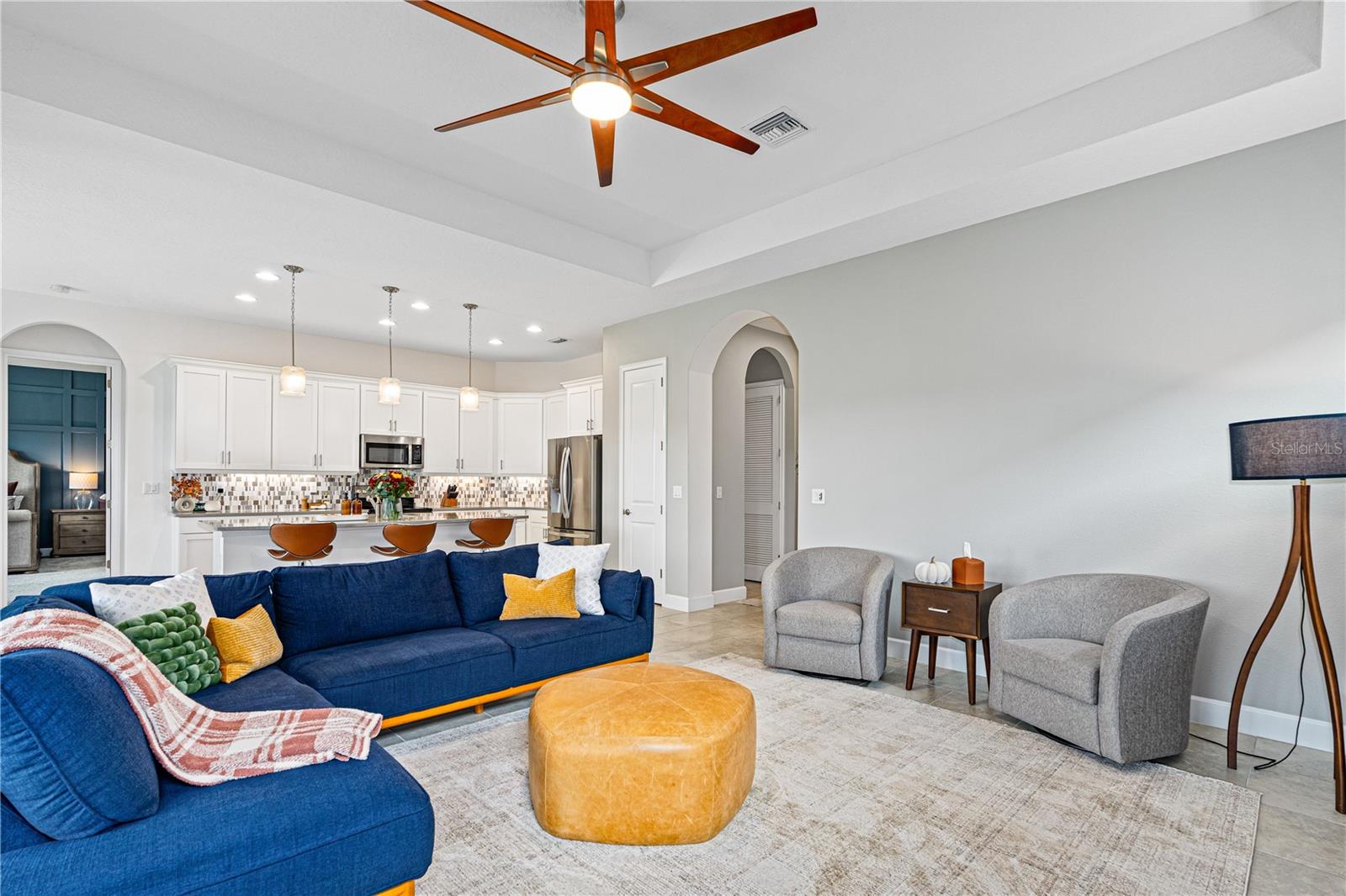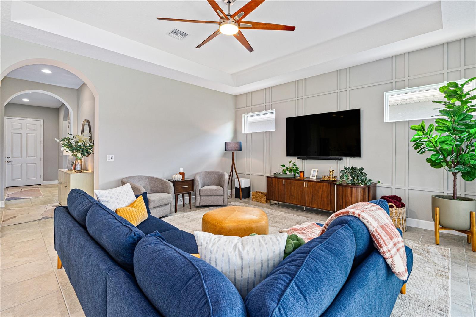 Bem-vindo ao lar! Esta deslumbrante casa de 3 quartos, 2 banheiros e escritório, meticulosamente mantida, está localizada na desejada comunidade Mosaic, no coração de Daytona Beach! Perfeitamente situado em um terreno à beira-mar e a uma curta caminhada ou passeio de bicicleta das comodidades da comunidade, ou a uma curta distância de carro de lojas, restaurantes, golfe e entretenimento. A entrada recebe você com piso de cerâmica que percorre todas as áreas de estar da casa e muita luz natural. Atualizações infinitas, incluindo molduras personalizadas instaladas profissionalmente na Grande Sala e na Suíte Master, tetos trey, persianas remotas, paisagismo profissional e calhas ao redor da casa. O escritório oferece portas de correr e pode ser usado como sala flexível ou quarto adicional. A Grande Sala está aberta para a Cozinha e oferece belas vistas para o mar. A cozinha é espaçosa e possui um balcão de café da manhã de grandes dimensões, armários elevados com muito espaço de armazenamento, eletrodomésticos de aço inoxidável, bancadas de quartzo, backsplash de azulejos de vidro deslumbrante e um recanto de cozinha de grandes dimensões. A Suíte Master possui pia dupla, box amplo, armários elevados e um amplo closet. Planta de quarto dividido. A varanda protegida é o lugar perfeito para descontrair e relaxar no final do dia. Esteja você desfrutando de uma noite tranquila com um bom livro ou assistindo ao pôr do sol, este é o seu pequeno slide de serenidade. Como bônus adicional, aproveite o estilo de vida da comunidade Mosaic! Isso inclui o Club Mosaic, uma academia de ginástica de última geração, duas piscinas, Bandshell, playground infantil e fundos no Lake Mosaic e no Boardwalk. Imperdível! Todas as medidas e informações consideradas precisas, mas não podem ser garantidas, compradores e corretores de imóveis são aconselhados a verificar.
