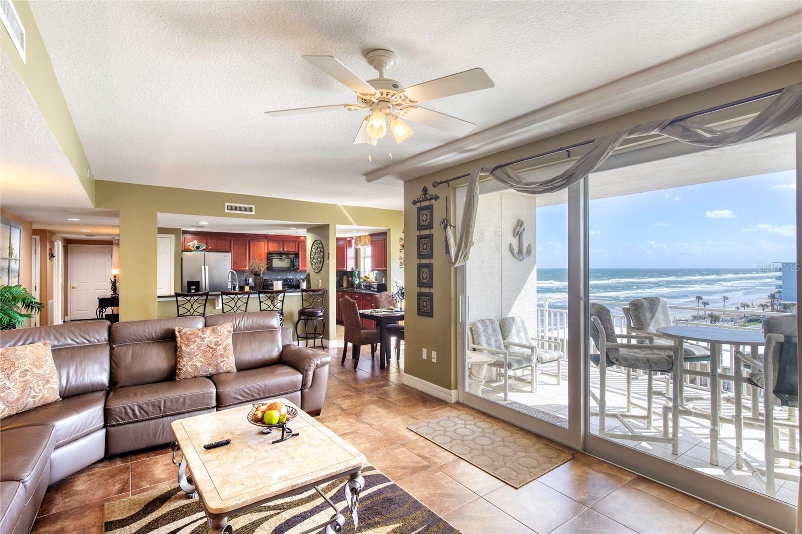 Aluguel de UMA SEMANA! Beleza com vista para o mar em Daytona Beach Shores! Esta joia Opus, leve e brilhante, de 3 quartos/2 banheiros, oferece quilômetros de vistas deslumbrantes para o mar. Esta fantástica unidade apresenta uma paleta de cores de bom gosto e vistas panorâmicas do oceano e do rio a partir da cozinha, áreas de estar e de jantar. Observe as ondas rolando em sua cozinha espaçosa com bancadas de granito e um grande balcão para café da manhã. A área de jantar adjacente oferece capacidade para quatro pessoas com vista para o mar e para o rio. A sala de estar possui controles deslizantes superdimensionados para furacões para mostrar as vistas do oceano e fornecer acesso à ampla varanda de 23 pés voltada para o sul, com vistas deslumbrantes do oceano e da Intracoastal Waterway. Uma suíte master com vista para o mar oferece acesso à varanda, closet, enorme banheira de imersão, chuveiro vertical e pia dupla. Dois espaçosos quartos de hóspedes, um banheiro de hóspedes e uma lavanderia com W&D. As comodidades incluem estacionamento subterrâneo seguro, academia, salas sociais com bilhar, piscina à beira-mar e spa. -Dois animais de estimação por família até 80 libras cada