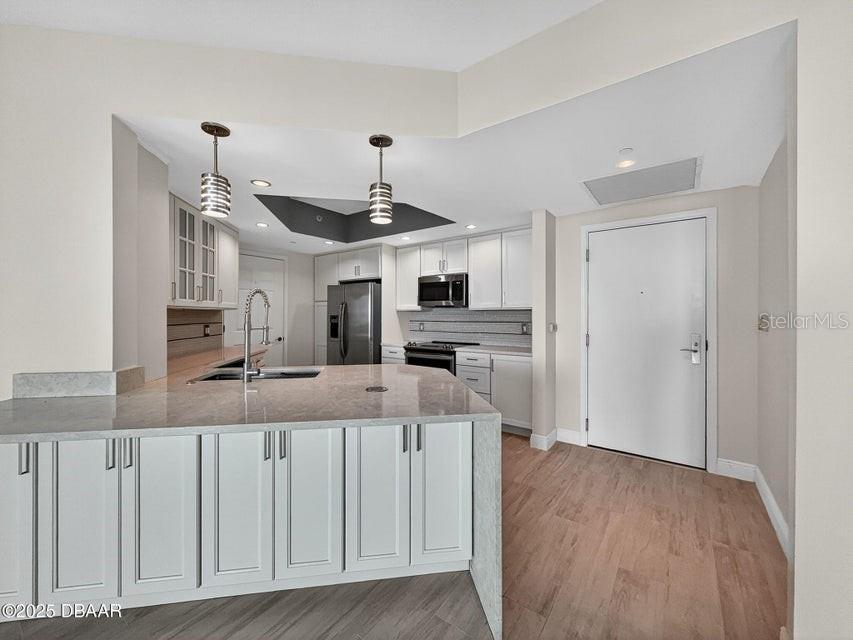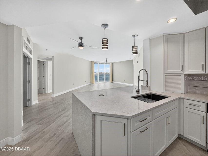 Não perca este condomínio Southside lindamente atualizado que combina perfeitamente elegância, conforto e luxo moderno. Cada detalhe foi meticulosamente atualizado sem nenhuma despesa poupada. A Cozinha Gourmet apresenta requintadas bancadas de quartzito brasileiro com bordas em cascata, backsplash combinando e armários totalmente redesenhados que oferecem armazenamento abundante. Desfrute de vistas deslumbrantes do lado sul que se estendem até Ponce Inlet e até assista ao lançamento de foguetes na sua varanda, perfeito para o café da manhã ou o pôr do sol à noite. A planta aberta destaca um elegante Great Room com extraordinária vista para o rio, uma espaçosa suíte primária com banheiro de mármore com pias duplas, banheira de hidromassagem e um grande chuveiro walk-in. A Guest Suite oferece seu próprio banheiro privativo lindamente atualizado. O versátil Den pode facilmente servir como terceiro quarto, escritório ou aconchegante recanto de leitura, completo com armários personalizados. Aproveite a comodidade de estar num andar inferior, perto o suficiente para subir as escadas se preferir, enquanto ainda captura a paisagem deslumbrante. Esta residência de luxo combina classe e estilo perfeitamente, oferecendo uma experiência de vida sofisticada e acolhedora. Aproveite a vida à beira-mar sem manutenção no fabuloso MG em Halifax e você quase nunca precisará sair do condomínio! A Marina Grande é uma comunidade ativa, aos moradores são oferecidas aulas de ioga, noite de pôquer, futebol de segunda à noite, hora do café, noite de cinema, Mahjong, noite de food truck de quinta-feira e Grill & Chill com seus vizinhos. Isto é mais do que um lar; É a personificação do estilo de vida da Flórida. Aceita animais de estimação e a poucos minutos do centro de Daytona Beach, da praia mais famosa do mundo, das corridas da NASCAR e de inúmeras atividades ao ar livre. Não perca esta oportunidade incrível! Agende sua exibição privada hoje e abrace o sonho da Flórida!