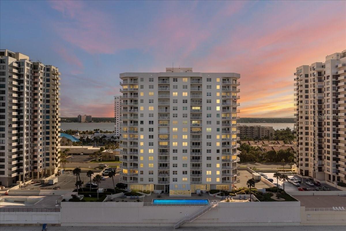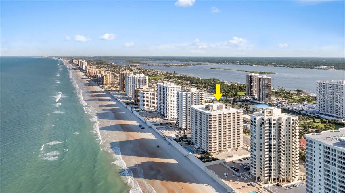 Bem-vindo ao condomínio dos seus sonhos em Oceans Six em Daytona Beach Shores, FL. Esta deslumbrante residência de 2 quartos e 2 banheiros oferece vistas deslumbrantes do oceano em todos os quartos, complementadas por vistas serenas do rio. *MOBILIADO!* Localizada no 7º andar, esta elegante unidade apresenta uma planta aberta com abundante luz natural. Aproveite a conveniência da lavanderia na unidade, facilitando as tarefas diárias. Delicie-se com as comodidades de luxo, incluindo piscinas interiores e exteriores e um spa, perfeito para relaxamento e recreação. Abrace o estilo de vida litorâneo com esta propriedade excepcional, onde cada detalhe é pensado para conforto e sofisticação.