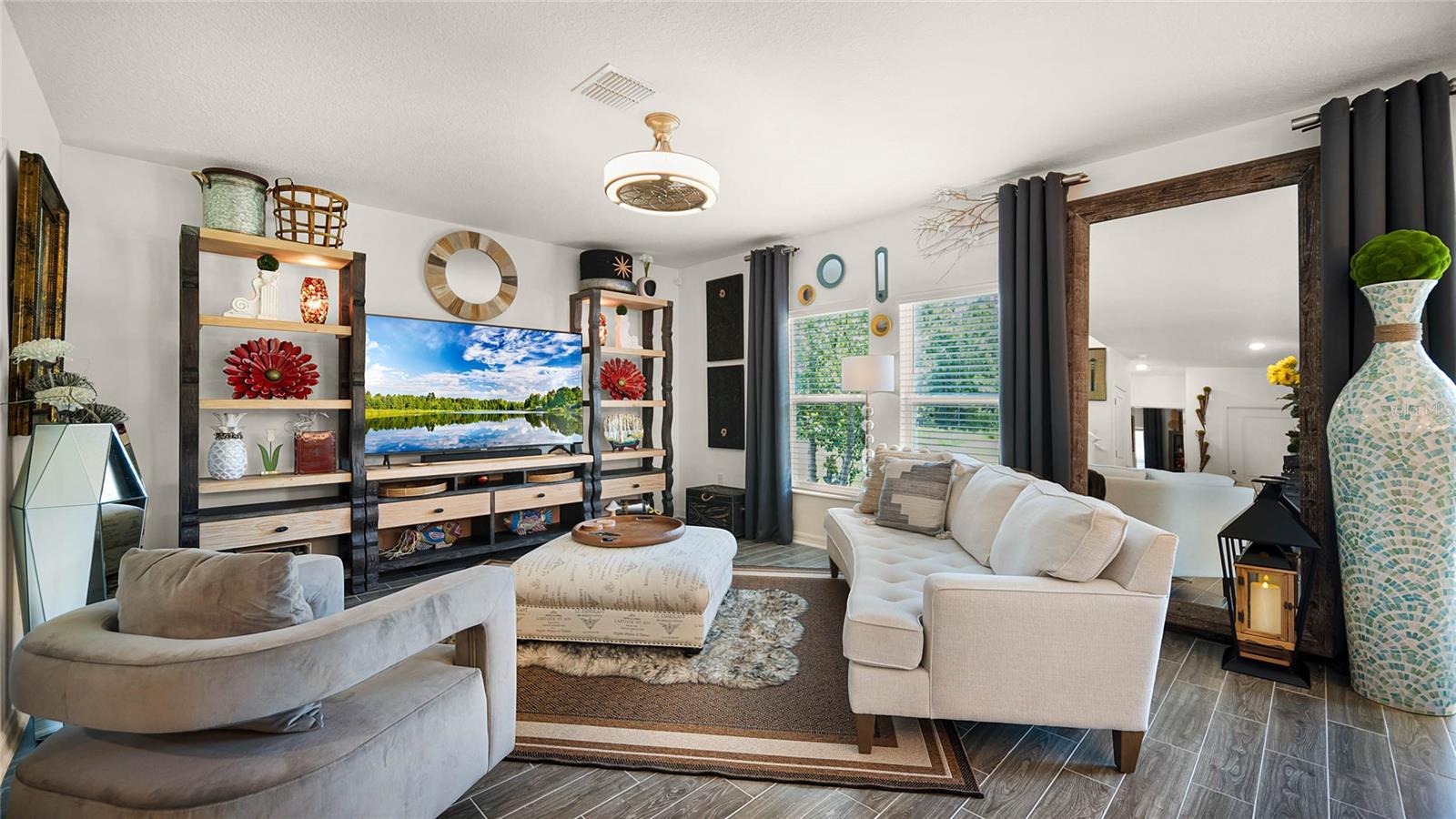 Esta casa maravilhosamente projetada está pronta para morar, eliminando a necessidade de construção. Recentemente construída em 2022, esta residência oferece quatro quartos e três banheiros completos em um terreno de esquina que dá acesso a uma tranquila área de conservação. Com eficiência energética, pois vem equipado com Painéis Solares alugados pelo valor mensal de US$ 53, oferecendo benefícios de economia de custos. Na chegada, o gramado bem cuidado e a charmosa varanda frontal chamam imediatamente a atenção por sua estética atraente. Ao entrar, você é recebido por uma planta aberta que começa com um amplo hall de entrada que faz uma transição perfeita para os espaços de estar, facilitando a hospedagem dos hóspedes sem esforço. A cozinha de estilo moderno possui bancadas de quartzo, eletrodomésticos de aço inoxidável, backsplash decorativo, despensa e balcão de café da manhã acentuados por iluminação pendente. A luz natural abundante preenche a sala, destacando o piso de cerâmica em estilo madeira. O primeiro andar inclui um quarto versátil adequado para escritório ou visitas, acompanhado de uma casa de banho completa. Subindo para o segundo nível, um loft aberto oferece espaço adicional. O quarto principal possui um closet espaçoso e banheiro privativo com pias duplas e chuveiro. Dois outros quartos amplos também estão localizados neste andar, juntamente com uma lavanderia conveniente. Esta foi construída como uma casa inteligente que inclui um alarme com câmera interna. Os recursos adicionais incluem janelas duplas suspensas de baixa inclinação, facilitando a limpeza, sistema de controle de pragas Taexx integrado, sistema de irrigação e muito mais. No exterior, o pátio aberto tem vista para uma área de conservação serena, proporcionando um retiro tranquilo. Situada numa rua sem saída, esta propriedade garante perturbações mínimas no trânsito. Situado na Reserva do LPGA, os moradores podem desfrutar de comodidades comunitárias, como piscina e playground. Além disso, a proximidade dos principais campos de golfe LPGA com 36 buracos, Daytona Stadium, Florida Tennis Center, International Speedway e praias cativantes próximas contribuem para o fascínio deste local. Não perca a oportunidade de tornar sua esta notável casa!