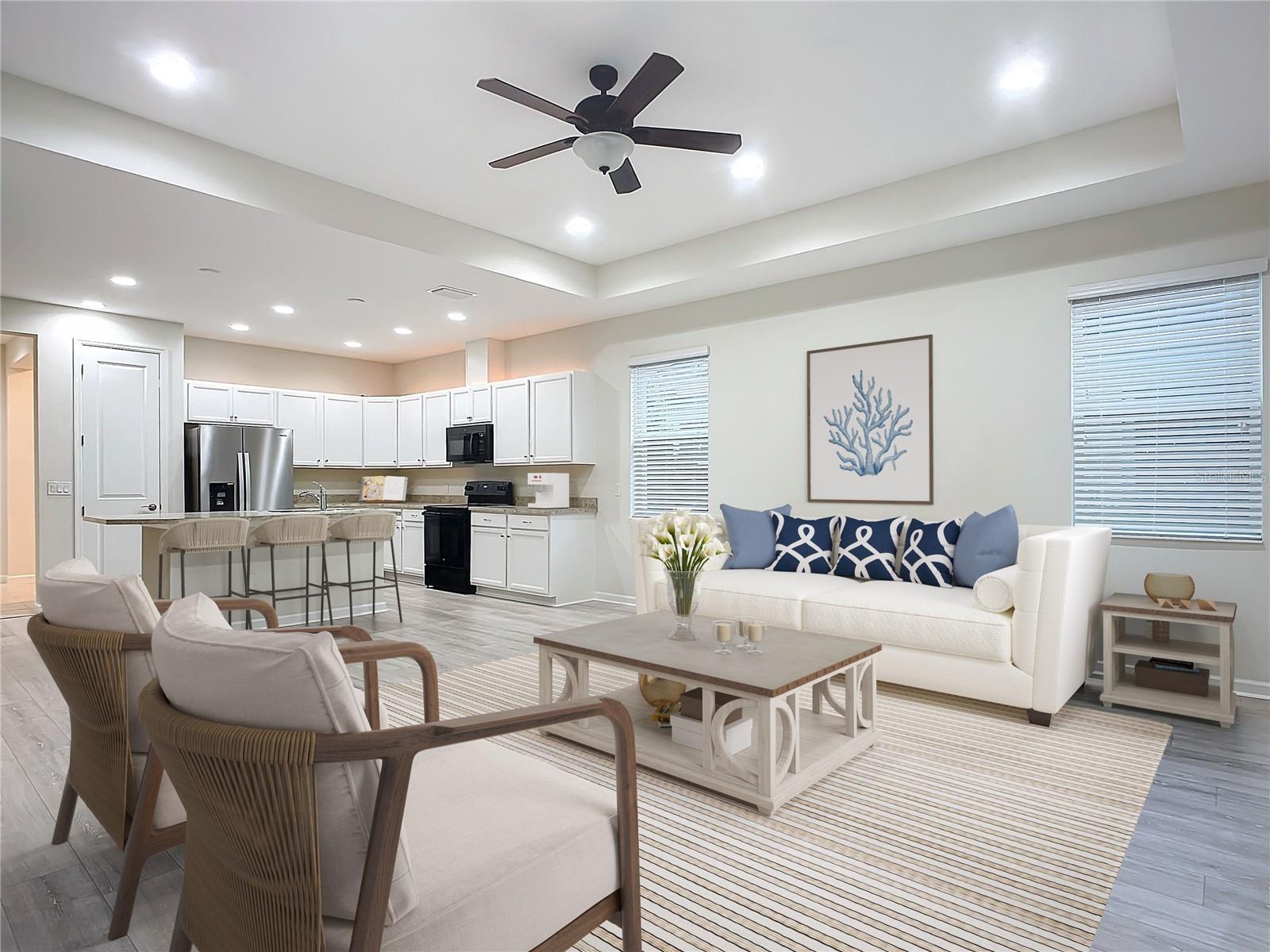 Uma ou mais fotos foram virtualmente encenadas. Villa Caicos com 2 quartos e o melhor preço em Margaritaville. Aqui está sua chance de viver esse estilo de vida Latitude e mudar sua atitude. Margaritaville é um estilo de vida. Aproveite a Flórida com a qual você sempre sonhou. Na Fase Um você pode caminhar até restaurantes, lojas e comodidades e ter a segurança do portão de entrada tripulado. Esta comunidade foi projetada pensando no lazer e no estilo de vida ativo. Esta é uma comunidade de resorts com trilhas para caminhada e ciclismo, piscinas, academia de ginástica, centro da cidade, restaurante e bar tiki, centro de negócios, tênis, quadras de pickleball, lojas de varejo e uma banda com entretenimento. A casa fica sem vizinho nos fundos e com um pátio protegido para relaxar e desfrutar do ar livre. A planta oferece garagem para 2 carros e dispõe de 2 quartos e arrumos. A sala pode ser usada como quarto extra ou para hobbies ou trabalho em casa. A planta aberta apresenta pranchas de vinil luxuosas e um espaço para refeições designado, além de amplo balcão e cozinha pela qual qualquer cozinheiro morreria. A casa é uma planta dividida com uma sala designada. a lavandaria fica dentro de casa e há bastante espaço para arrumação e com garagem para 2 carros. As atualizações incluem persianas de privacidade em cada quarto, cortina de controle remoto para porta de vidro deslizante, portas de 8 pés, luzes embutidas, luz de movimento externa, portas francesas, luzes acima do armário e cortinas de varanda. O banheiro dispõe de assento para chuveiro. A melhor parte é que você está perto da praia. a interestadual e há muitas opções de compras. Você está a uma curta distância de carro de Santo Agostinho e Orlando