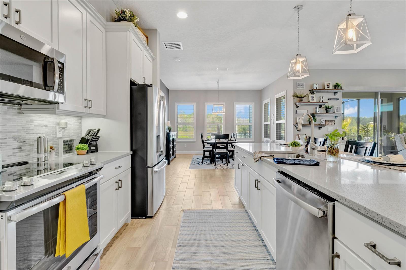 Uma ou mais fotos foram virtualmente encenadas. Esta bela casa térrea pronta para morar em Daytona Beach oferece paisagismo atualizado e estabelecido com bordas curvas, um quintal cercado, armários atualizados, uma despensa, persianas em toda a casa, um sistema de segurança com fio e assim muito mais! Esta requintada casa de construção mais recente ostenta quase 2.400 pés quadrados de espaço luxuoso. Com 4 quartos espaçosos, 3 banheiros completos e garagem para 3 carros com piso acabado em epóxi e estantes suspensas, esta casa oferece conforto e comodidade. Desfrute de vistas deslumbrantes sobre a água de todos os ângulos, acentuadas pelo design de conceito aberto. Tetos altos, piso de cerâmica atualizado e janelas abundantes inundam a casa com luz natural, criando um ambiente sereno. A suíte do proprietário é um retiro por si só, completa com vistas deslumbrantes, banheiro privativo com pia dupla, box amplo e um amplo closet. Com um design de planta dividida, três quartos adicionais e mais dois banheiros oferecem muito espaço e privacidade. Do lado de fora, há uma varanda grande com tela 20x20 com vista para a água, oferecendo o local perfeito para relaxar ou se divertir. Calhas também foram adicionadas. A calçada de pavimentação e o pátio traseiro foram vedados em 2023, iluminação embutida foi adicionada ao quarto principal e chuveiro, bem como à sala de estar, e um sistema de filtragem de água para toda a casa foi instalado em 2022. A lavanderia possui carregamento frontal lavadora e secadora, além de armários superiores e inferiores e bancada. O layout aberto é um sonho para quem gosta de se divertir, com cozinha de chef com bancada de granito e uma grande ilha com pia para preparar e cozinhar alimentos no estilo chef. O elegante backsplash de azulejos atrás do fogão elétrico e os eletrodomésticos de aço inoxidável adicionam um toque de sofisticação e amplos armários. A casa tem vista para um pequeno lago com uma floresta ao fundo, oferecendo uma vista espetacular e imperdível. Mas o luxo não para em casa. Entre em um mundo de luxo e estilo, esta bela casa está situada no coração da vibrante comunidade Mosaic, a um quarteirão do clube comunitário. Desfrute de um mergulho na piscina de entrada zero em estilo resort ou exercite-se na academia de ginástica de última geração, trilhas para caminhada, fogueira, playground e muito mais. A sala de atividades é grande o suficiente para acomodar um grupo de 40 a 50 pessoas, tornando-a perfeita para pequenos eventos e festas privadas. O Club Mosaic é o local mais grandioso de todos, com DUAS piscinas! A localização é imbatível. Você está a apenas 5 minutos dos Tanger Outlets, Tomoka Town Center, Publix e I-95, e a praia fica a apenas 15 minutos de carro. Daytona Beach é uma cidade de emoção e aventura. Há algo para todos, desde o Daytona International Speedway até o Museu de Artes e Ciências. A cidade também abriga escolas de alto nível e uma variedade de restaurantes e lojas para compras. Experimente o melhor de Daytona Beach morando em 668 Mosaic Blvd. A casa dos seus sonhos espera por você! Ligue hoje para agendar uma exibição privada!