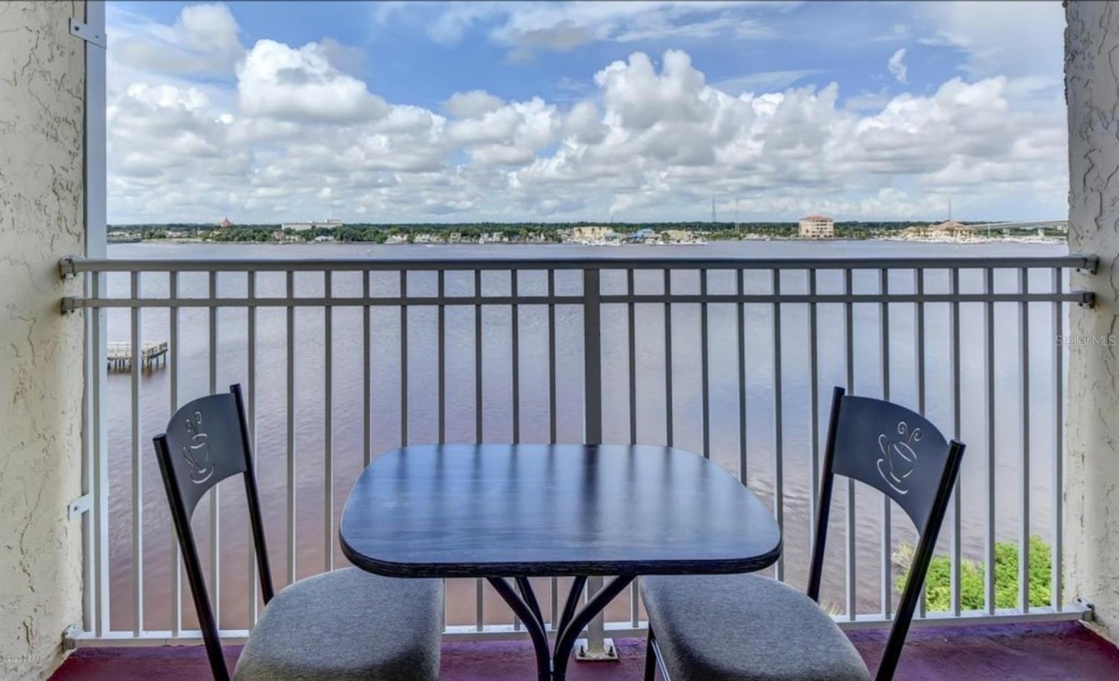 à venda está este lindo condomínio de 1 quarto em Daytona Beach com INCRÍVEL varanda privada com vista para o rio Halifax., a poucos passos da praia e do centro de convenções e a poucos passos da rua principal para eventos e semana de bicicleta. Piso de madeira em todo o apto. novas portas de funda, lindas, um grande quarto principal. venha e veja.