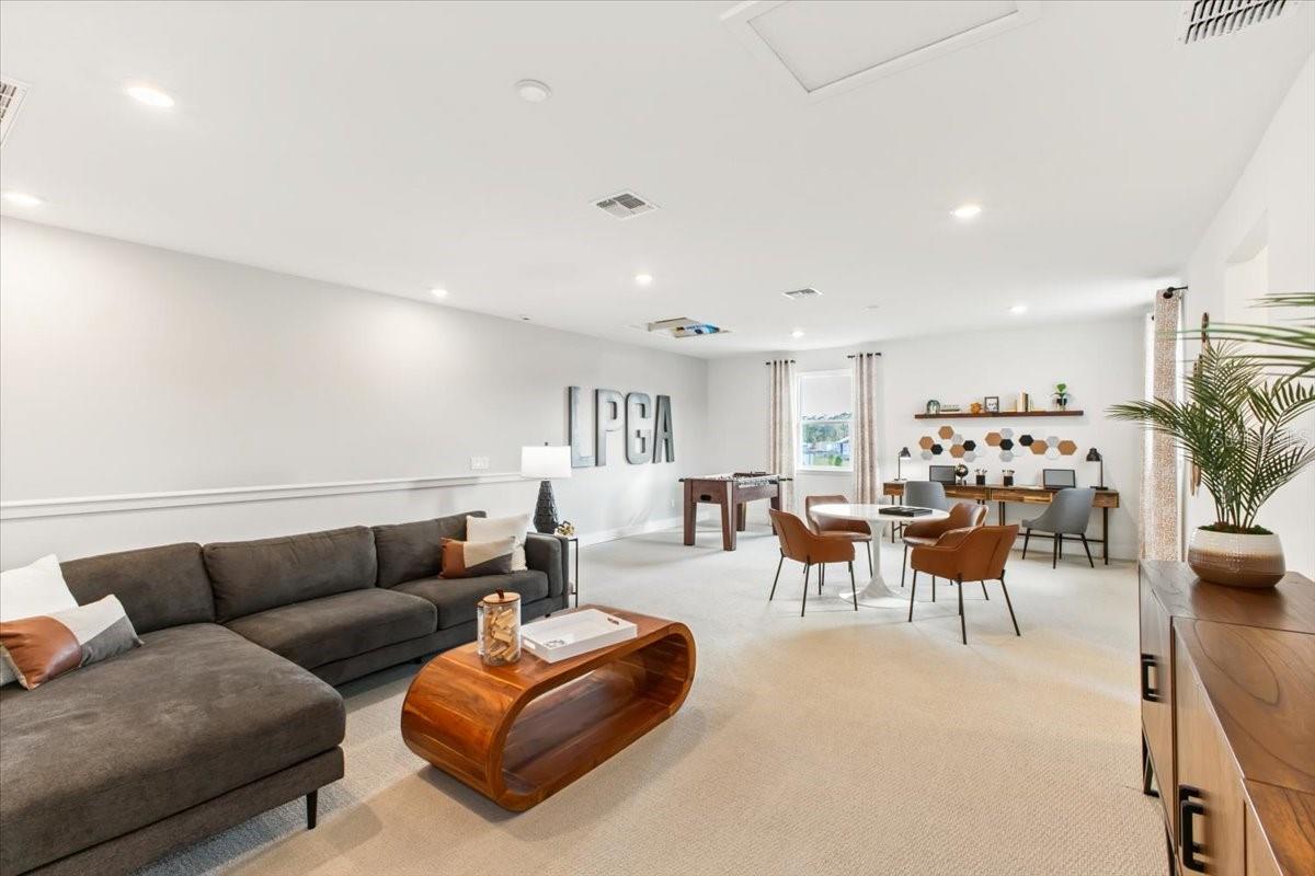 Ex-Model Home disponível agora como está! Móveis e acessórios não transmitem! Sem vizinhos traseiros. A planta baixa em Daytona Beach oferece um plano de conceito aberto com 5 quartos, 4,5 banheiros e uma garagem de 3 carros. A grande casa de dois andares impressiona após a entrada com tetos de bandeja no vestíbulo. Agora vendendo, o Legends Preserve oferece novas casas unifamiliares em Daytona Beach, FL. Esta comunidade lindamente serena fica a apenas 20 quilômetros das impressionantes praias de Daytona. Localizados na International Golf Drive ao lado do mundialmente famoso campo de golfe LPGA, os moradores terão acesso fácil à I-4 e I-95, bem como ao Aeroporto Internacional de Daytona. As atrações próximas incluem Daytona International Speedway, Tanger Outlets e o Daytona Boardwalk. Cada uma de nossas casas é construída com recursos inovadores e eficientes em termos de energia projetados para ajudá-lo a desfrutar de mais economia, melhor saúde, conforto real e tranquilidade.