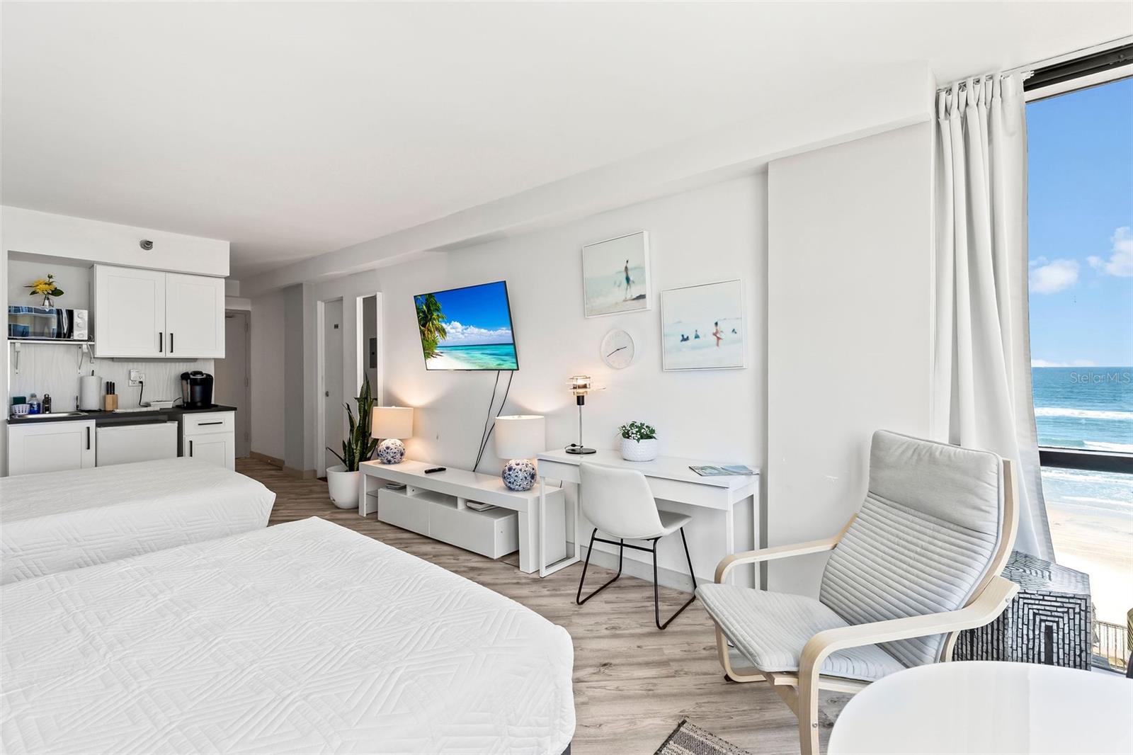 Oportunidade de investimento à beira-mar-o impressionante condomínio de unidade dupla em Daytona Beach! Descubra a mistura perfeita de potencial de luxo, flexibilidade e renda com este raro condomínio ao estilo de dupla unidade "hotel", localizado nas vegetas expansivas de Daytona Beach, mundialmente famosa. Essas duas unidades de estúdio lindamente atualizadas, conectadas por uma porta de passagem convenientes, podem ser alugadas individualmente ou juntas como uma espaçosa suíte de 2 quartos-oferecendo versatilidade máxima de aluguel! Cada unidade meticulosamente mantida possui vistas parciais do oceano, móveis elegantes e arranjos confortáveis para dormir para até 4 hóspedes em cada quarto. A venda inclui todos os móveis e reservas futuras com gerenciamento de aluguel já existentes - tornando este um investimento na mão. com renda futura já nos livros. Como um bônus adicional, a Unidade 412 inclui uma sala de armazenamento de 5'x10, ideal para armazenamento do proprietário, suprimentos de aluguel ou até um recanto ou espaço de trabalho adicional para dormir. O próprio edifício passou por extensas reformas nos últimos dois anos, com um saguão e recepção modernizados, tinta fresca e carpete nos corredores, uma sala de conferências e um centro de fitness. Você vai adorar a piscina à beira -mar com vistas panorâmicas, o Bar & Restaurant ao lado da piscina, uma piscina de bebê e acesso direto à praia. O estacionamento é uma brisa com uma garagem de dois andares convenientemente presa ao edifício para facilitar o acesso lateral aos elevadores. Se você está procurando um aluguel de curto prazo de alto desempenho, uma escapada de férias ou uma mistura de ambos, esta propriedade oferece! Não perca esta oportunidade excepcional - escasso de uma exibição hoje!