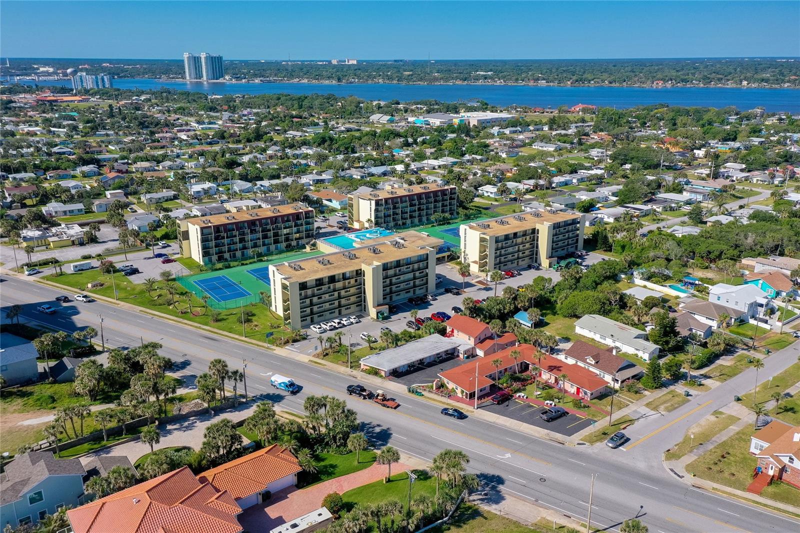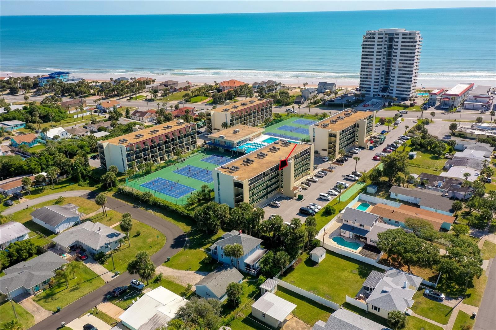 Vida costeira ativa nos condomínios do ponto de vista. Nenhum dano do furacão Milton. A poucos passos das margens beijadas pelo sol, este condomínio exclusivo de dois andares no 4º e 5º andares apresenta 2 quartos, 2,5 banheiros e oferece um retiro sereno com vista para o oceano. Entre para descobrir um design de conceito aberto sem problemas. A espaçosa cozinha possui amplo balcão e espaço para armários e armários brancos criam uma atmosfera convidativa. A espaçosa sala de estar acena com portas de vidro deslizantes que levam a uma varanda privada, oferecendo um santuário sereno para saborear seu café da manhã ou descontrair com um coquetel refrescante, enquanto desfruta da brisa do oceano fresca e das vistas de Peek-a-Boo do oceano e da intracoastal. Cada quarto possui sua própria varanda privada, oferecendo um santuário pessoal para aproveitar o ambiente costeiro. 3 armários de armazenamento para todos os seus equipamentos de praia. Os condomínios Vantage Pointe oferecem uma variedade de comodidades no estilo resort, incluindo uma piscina aquecida e spa elevada no segundo andar para capturar as brisas do oceano, tênis e quadras de pickleball, shuffleboard, fitness center, área de churrasco, clube e muito mais. Com acesso privado na praia do outro lado da rua, todos os dias apresentam uma oportunidade para aventuras encharcadas de sol e felicidade à beira-mar. Convenientemente localizado a apenas 1,6 km da Bellair Shopping Plaza e a 1,5 quilômetros de Ocean Walk e da banda. Abrace o fascínio da vida costeira e faça deste requintado condomínio seu santuário costeiro hoje! O elevador de cadeira pode transmitir ou ser removido. Todas as informações registradas no MLS devem ser precisas, mas não podem ser garantidas.