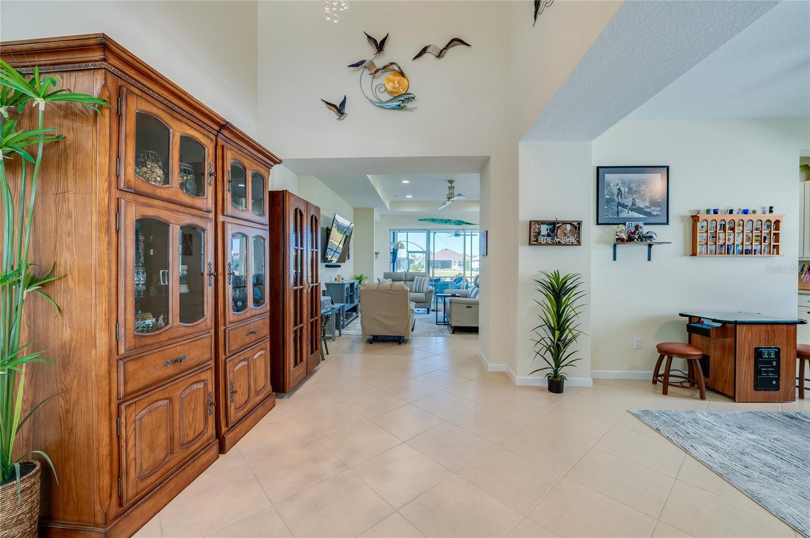 Bem-vindo ao seu pedaço do paraíso no Latitude Margaritaville Daytona Beach! Esta linda casa em estilo ilha, modelo Parrot, de 3 quartos e 2 banheiros, incorpora o que há de melhor em um resort despreocupado. Ao entrar no hall de entrada, um teto alto de 15 pés lhe dá as boas-vindas, criando uma atmosfera arejada e espaçosa. A planta aberta conecta perfeitamente as áreas de estar. A cozinha possui balcões de granito, uma ilha central, armários brancos de 42'', iluminação embutida e pacote completo de eletrodomésticos em aço inoxidável, incluindo lava-louças e geladeira novos. Uma aconchegante copa oferece um local encantador para refeições casuais, enquanto a sala de jantar formal oferece um ambiente elegante para receber reuniões familiares e receber convidados. Portas de vidro deslizantes levam da sala de estar ao pátio pavimentado com tela, oferecendo vistas serenas do lago. O generoso quarto principal é um retiro em si mesmo, com um recanto de leitura com vista para o lago e possui 2 closets e banheiro privativo com pia dupla e box amplo. Experimente a vida em estilo resort com uma variedade de comodidades, incluindo um restaurante/bar privativo, um clube de praia com traslado, várias piscinas, academia com piscina olímpica, tênis, pickleball, bandshell e trilhas panorâmicas para caminhadas e caminhadas. Convenientemente localizado com fácil acesso à I-95, você estará a poucos minutos de praias de classe mundial, passeios de barco e pesca, além de campeonatos de golfe LPGA, Daytona International Speedway, Tanger Outlet Mall e One Daytona. Não perca a chance de possuir este pedaço de paraíso em Latitude Margaritaville Daytona Beach. Todas as informações registradas no MLS pretendem ser precisas, mas não podem ser garantidas.