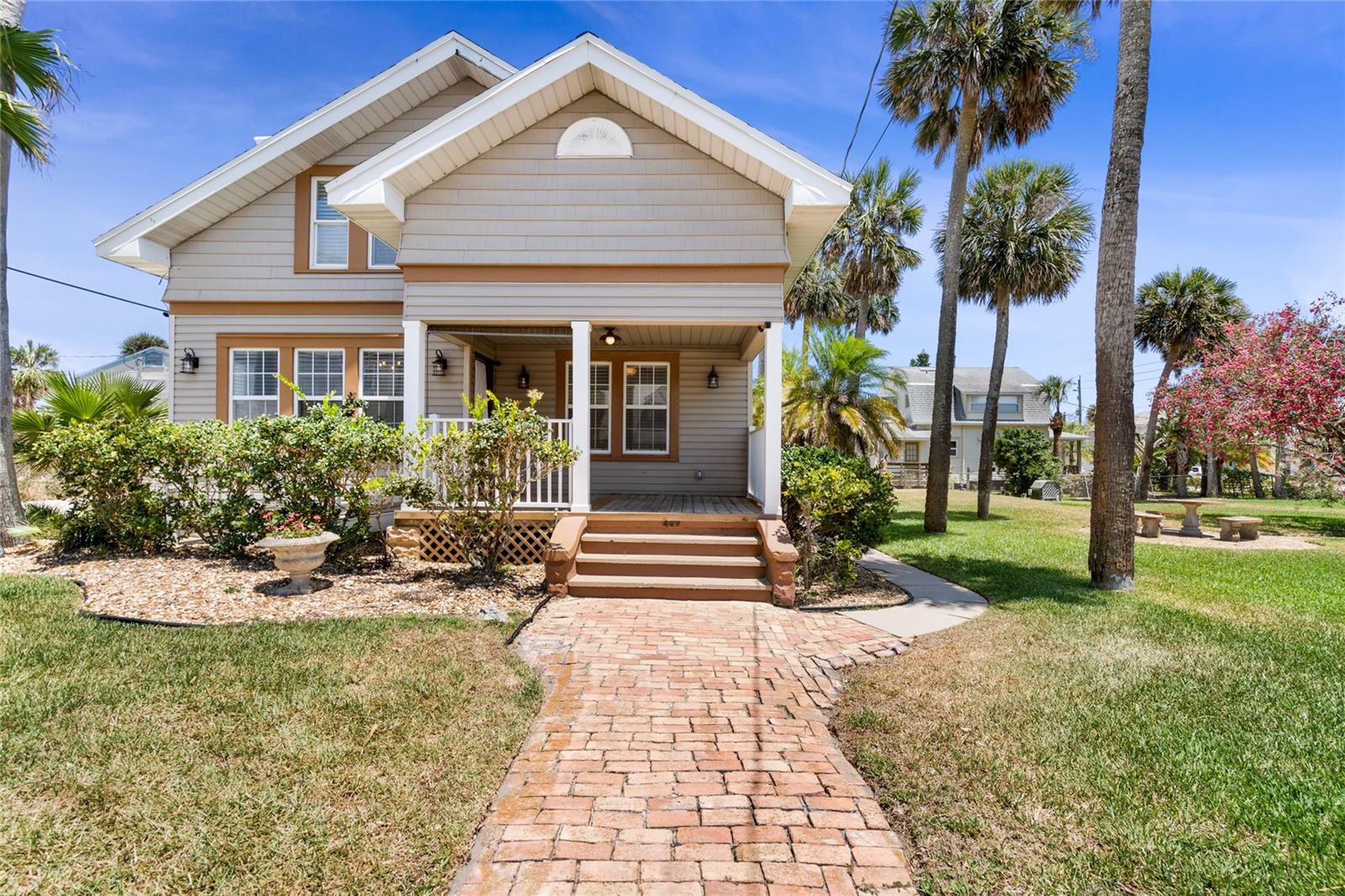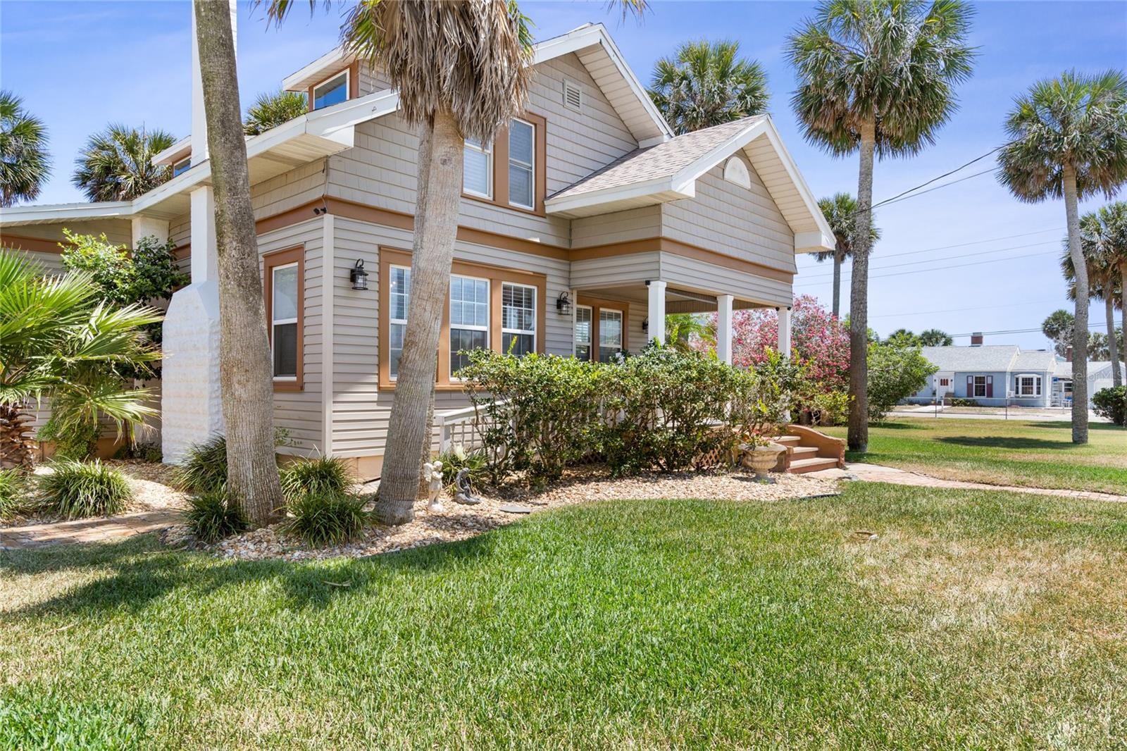 Uma ou mais fotos foram virtualmente encenadas. Linda casa histórica em lote duplo. Entre no charme costeiro atemporal desta residência à beira-mar. Restaurada para preservar seu design vintage e ao mesmo tempo incorporar conveniências modernas, esta casa oferece espaço, conforto e estilo. Ao entrar, a luminosa sala de estar recebe você com suas amplas janelas e lareira convidativa, enquanto a espaçosa sala de jantar possui encantadores embutidos. Descubra os recantos encantadores, ao lado de quartos generosos adornados com tetos altos, grandes armários e rodapés clássicos. O fascínio continua com uma cozinha recém-renovada e uma adorável suíte master no primeiro andar com um grande banheiro com pias duplas e um box amplo deslumbrante. No andar de cima você encontrará dois quartos grandes adicionais, complementados por outro banheiro lindamente remodelado. Em toda a casa você encontrará pisos de madeira restaurados que ecoam o caráter atemporal da época. Atualizações adicionais incluem novo serviço elétrico, luminárias, um telhado mais novo, sistemas de climatização atualizados para cada andar e melhorias no encanamento. No exterior, uma garagem individual para dois carros fica na espaçosa entrada, enquanto o amplo quintal oferece potencial para loteamento e construção de uma segunda casa, sem comprometer os generosos tamanhos do lote. Descubra as infinitas possibilidades deste terreno de esquina que se estende por 0,38 hectares e está localizado a apenas um quarteirão da praia. Também fica muito perto da maioria das atrações vibrantes de Daytona Beach, incluindo o calçadão, a Main Street, a Beach Street e a Riverfront Esplanade. Raramente uma casa como esta, com dimensões de lote tão generosas, fica disponível à beira-mar. Se este parece ser o seu retiro costeiro ideal, não hesite em agendar uma exibição privada. Não há garantias expressas ou implícitas. Todas as medidas são aproximadas. Metragem quadrada recebida de registros fiscais. Todas as informações registradas no MLS pretendem ser precisas, mas não podem ser garantidas. Desculpe, não há aluguéis de curto prazo.