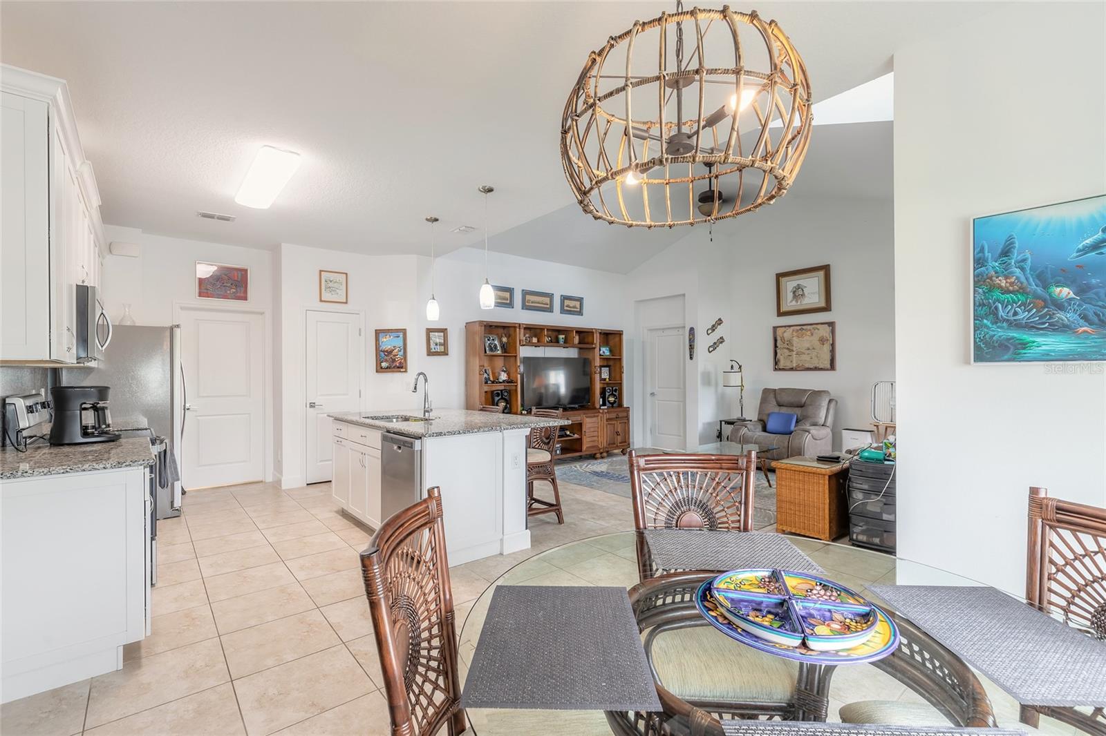 Bem-vindo a esta encantadora casa de campo Dreamsicle na exclusiva comunidade Latitude Margaritaville! Esta linda casa de 2 quartos e 2 banheiros com uma sala versátil oferece a combinação perfeita de estilo e conforto. Ao entrar, você será saudado por um layout de conceito aberto e tetos abobadados altos, criando uma atmosfera iluminada e arejada. O grande piso de cerâmica flui perfeitamente, realçando o apelo moderno da casa. O espaçoso quarto principal é o retiro privado, completo com banheiro privativo com box amplo luxuoso. Com planta dividida, a privacidade é garantida, pois o quarto de hóspedes e o escritório ficam no lado oposto da casa, perfeito para visitas ou home office. A cozinha gourmet é o sonho de um chef, ostentando eletrodomésticos de aço inoxidável, armários de fechamento suave de shaker de 42", impressionantes bancadas e backsplash de granito, uma despensa e uma grande ilha para armazenamento extra e espaço de preparação. Ao lado da cozinha, você encontrará uma lavanderia conveniente com armários adicionais Saia para o pátio protegido, onde você pode desfrutar de seu café da manhã ou relaxar no sereno espaço ao ar livre. Localizada na procurada comunidade de Latitude Margaritaville, esta casa oferece acesso a ambientes de classe mundial. comodidades, incluindo piscinas, academias de ginástica, restaurantes e muito mais. Não perca, agende seu tour privado hoje e descubra seu pedaço do paraíso! Todas as informações são consideradas precisas, mas não podem ser garantidas.