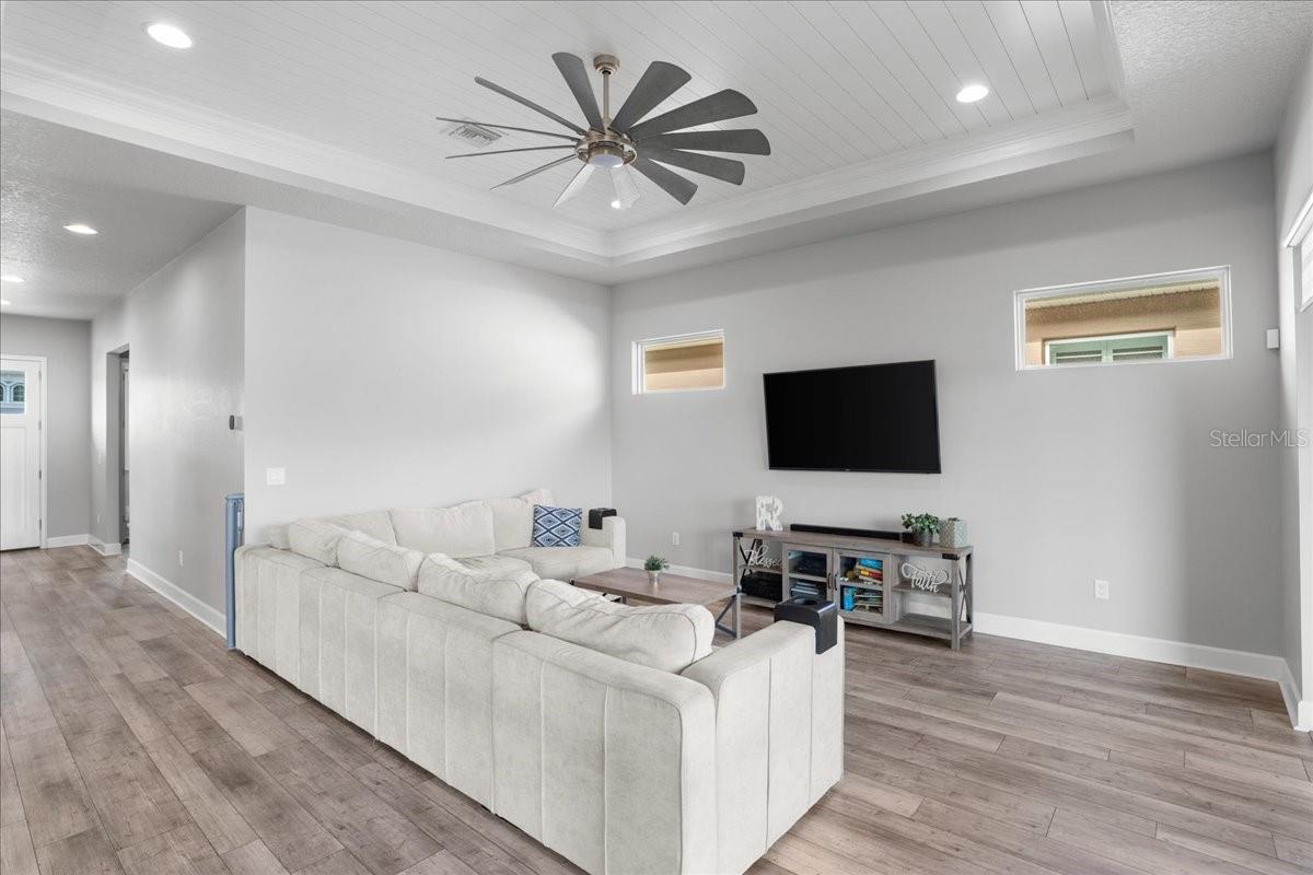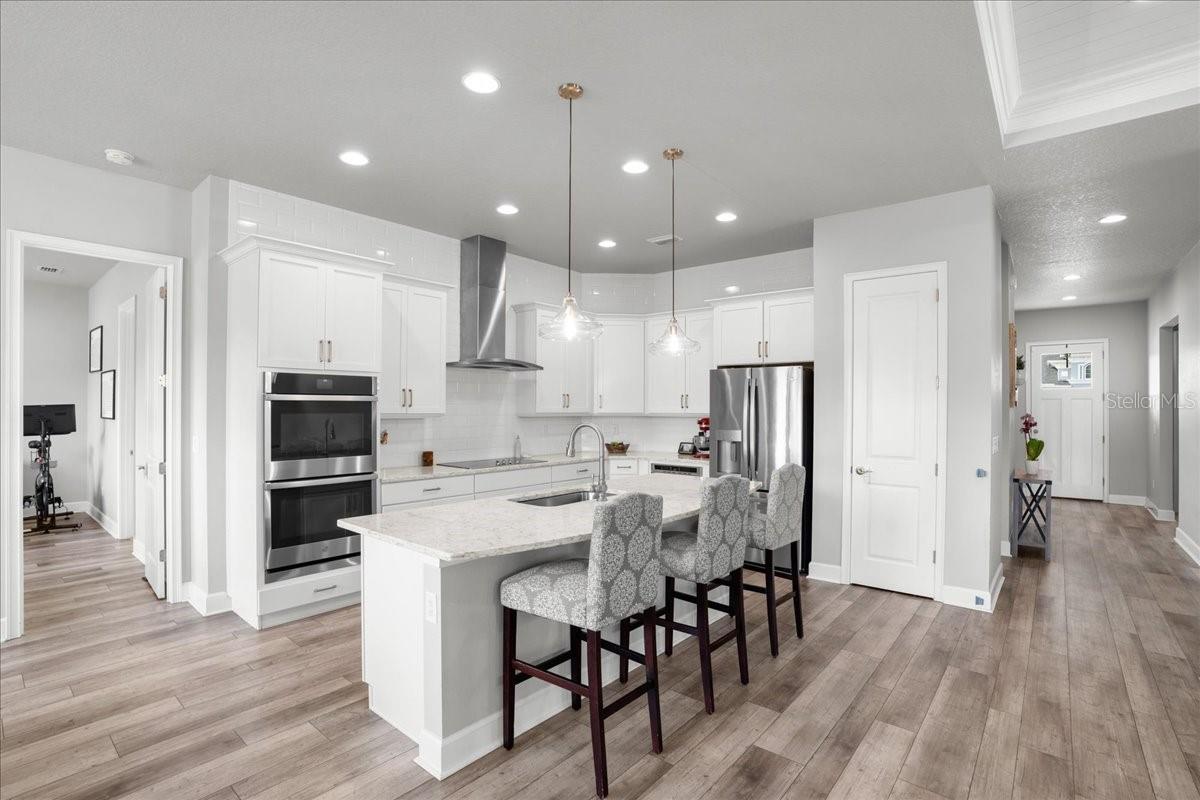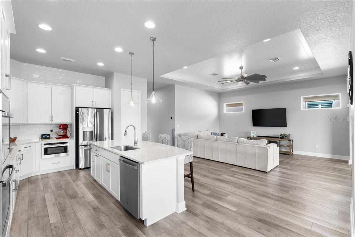 BEIRA-MAR! CAMINHÁVEL PARA PISCINAS COMUNITÁRIAS! Este escritório 3/2 + tem vista para o lago e não tem vizinhos no quintal. Se você está procurando uma casa de blocos de concreto mais recente e com preço perfeito em um bairro comunitário muito unido, esta é para você. Este modelo Juliette 2020 é adornado com atualizações por dentro e por fora e certamente fará falta para esses proprietários originais. A frente da casa tem grande apelo de meio-fio com uma calçada de pavimentação, calçada de pavimentação e varanda frontal coberta. A parte de trás da casa é um sonho absoluto, com varanda coberta estendida, quintal totalmente cercado e vista para o lago e para a área de conservação, onde você verá a vida selvagem quase todas as noites! Ao entrar no hall de entrada, você encontrará tetos volumosos, iluminação embutida e luxuoso piso de pranchas de vinil em toda esta casa de 2.000 m². Escritório dedicado à sua direita com parede personalizada com detalhes em shiplap e portas deslizantes de celeiro, e à sua esquerda estão seus dois quartos de hóspedes amplos e banheiro de hóspedes completo. A sala de estar, a cozinha e as salas de jantar ficam no centro da casa e todas oferecem vistas deslumbrantes do lago. A sala de estar tem tetos retangulares com detalhes em shiplap e uma porta tripla de vidro deslizante com guarda-sóis elétricos que dá acesso à varanda coberta. A cozinha é bastante impressionante com bancadas de quartzo, backsplash de azulejos de altura total, eletrodomésticos GE, forno duplo, micro-ondas embutido, grande despensa de alimentos com prateleiras personalizadas e gavetas rolantes nos armários inferiores. A planta baixa é ótima para privacidade com quartos divididos - principal na parte traseira com vista para o lago e hóspedes/escritório na frente. O quarto principal 17x13 tem muito espaço para dois e um ENORME banheiro principal com pias / pias separadas para ele e para ela, chuveiro com box de vidro sem moldura, vaso sanitário separado e armário de roupas com prateleiras de armazenamento adicionais. Mosaic é uma comunidade extremamente popular e unida que foi planejada com abundância de espaços sociais para reunião e conexão. As comodidades incluem: piscina para todas as idades, piscina somente para adultos, academia, sala de clube (eventos privados permitidos), parque comunitário, anfiteatro ao ar livre (noites de karaokê!), fogueira, parque infantil, Wi-Fi comunitário em todas as áreas comuns, lago de pesca abastecido, gramado para eventos e eventos programados regularmente pela diretora de estilo de vida da Mosaic, Caroline! Tudo isso por uma taxa HOA de apenas 120/mês. A Mosaic tem tudo: a casa, a comunidade e o estilo de vida. Todas as informações e tamanhos dos quartos neste anúncio são precisos, mas não podem ser garantidos. Compradores/agente devem realizar a devida diligência.