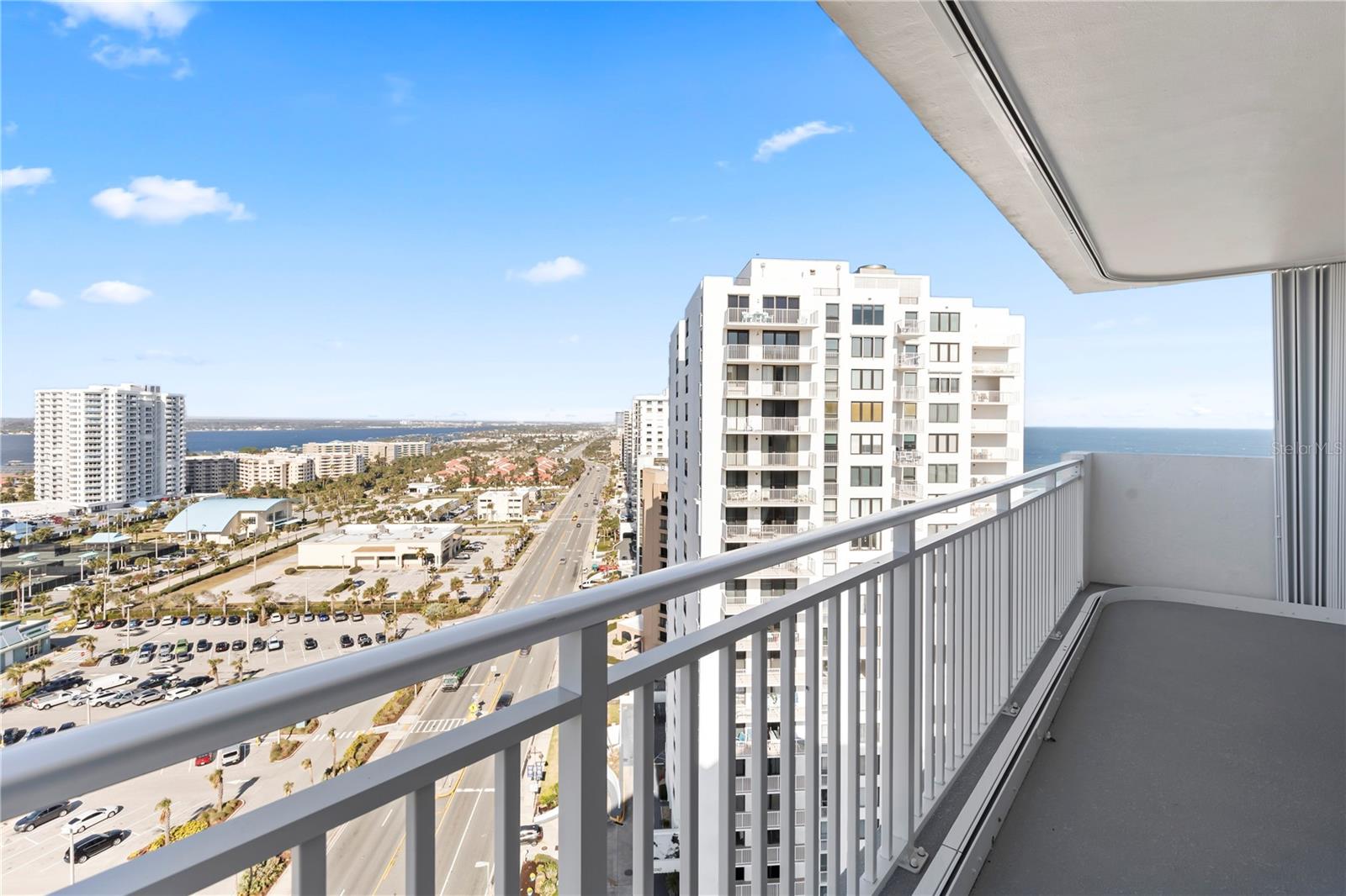 Viva acima de tudo com vistas panorâmicas do oceano e do rio! Localizada no desejável Condomínio Oceans Two, esta unidade de 2 quartos e 2 banheiros no 19º andar oferece vistas deslumbrantes do Oceano Atlântico e do Rio Halifax de todos os quartos. Projetado com a privacidade e a vida costeira em mente, a planta aberta apresenta uma espaçosa área de estar e jantar repleta de luz natural proveniente de grandes janelas panorâmicas e controles deslizantes que levam a uma varanda privativa. A cozinha atualizada inclui eletrodomésticos atualizados, uma barra de café da manhã e muito espaço de armazenamento com armários embutidos, enquanto a combinação de lavadora/secadora de estilo europeu acrescenta conveniência. A suíte principal oferece acesso à varanda e vistas deslumbrantes, enquanto a suíte de hóspedes foi cuidadosamente posicionada para maior privacidade, criando a sensação de uma planta dividida. Esta unidade está equipada com venezianas, novas venezianas e muitos recursos integrados exclusivos deste condomínio para maximizar o espaço. O Oceans Two oferece acesso seguro à praia, piscina em estilo resort e deck com área para churrasco, duas salas club e uma academia bem equipada. O Centro Comunitário, localizado do outro lado da rua, oferece atividades e eventos sociais, além de tênis, pickleball e golfe para um estilo de vida ativo. Esta propriedade combina luxo, conforto e uma localização privilegiada para a melhor experiência de vida à beira-mar. Todas as informações registradas no MLS pretendem ser precisas, mas não podem ser garantidas.