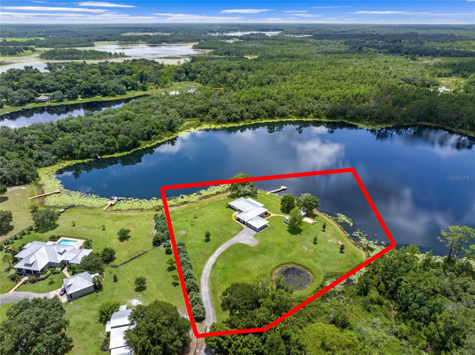 Bem-vindo à casa dos seus sonhos, uma mistura perfeita de vida serena no campo e conveniência moderna! Situada em mais de 4 acres de terreno pitoresco - 2,77 acres dos quais são altos e secos - esta propriedade deslumbrante oferece espaço e tranquilidade, ao mesmo tempo que fica a apenas 10 minutos de supermercados e lojas. Entre para descobrir pisos de madeira real que proporcionam um ambiente acolhedor e convidativo à ampla planta aberta dividida. A cozinha lindamente atualizada é uma delícia culinária, com eletrodomésticos embutidos e elegantes bancadas de granito, além de uma ilha e despensa grandes que tornam o preparo das refeições um prazer. A ampla suíte principal é um verdadeiro santuário, ostentando um banheiro reformado com pias duplas e armários duplos para amplo armazenamento. Relaxe e descontraia-se com vistas serenas do lago privado alimentado por nascentes, conhecido por seu fundo de areia branca e cristalina e excelentes oportunidades de pesca em seu próprio cais. O lote possui mais de 600 pés de frente para o lago e muito espaço para uma piscina. Um grande galpão oferece armazenamento conveniente para todos os seus equipamentos e ferramentas, enquanto uma garagem privada garante privacidade e segurança. Os destaques adicionais incluem um telhado de metal durável e a proximidade do centro de DeLand, oferecendo uma combinação perfeita de isolamento e acessibilidade. Não perca esta rara oportunidade de possuir um pedaço do paraíso com todos os confortos da vida moderna. Agende hoje mesmo seu tour privado!