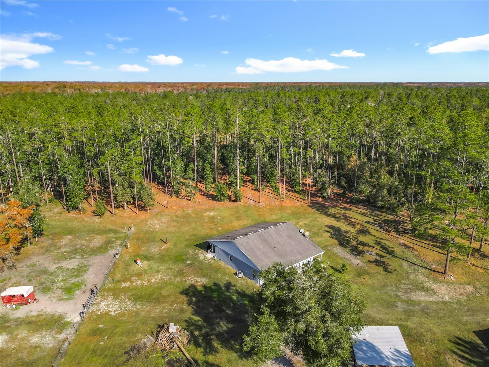 Uma ou mais fotos foram virtualmente encenadas. Procurando privacidade, paz e tranquilidade? Esta bela propriedade de 20 acres - apresentando uma casa de bloco sólido de design personalizado com 3 quartos e 3,5 banheiros - oferece a serenidade e o espaço com os quais você sempre sonhou. Entre em uma planta baixa fantástica e eficiente, sem desperdício de espaço. A Great Room de conceito aberto flui perfeitamente para a espaçosa cozinha, criando o ambiente perfeito para entretenimento ou reunião com a família. A cozinha possui armários de madeira maciça de 42 polegadas, uma grande ilha e amplo balcão. Uma grande lavanderia/despensa está localizada ao lado da cozinha para armazenamento e lavagem. Janelas amplas mantêm a casa iluminada, ao mesmo tempo que proporcionam vistas deslumbrantes de sua área privada. O layout do quarto dividido inclui uma suíte primária generosa com closet e banheiro privativo completo com pias duplas e chuveiro amplo. Cada um dos dois grandes quartos secundários também oferece seu próprio banheiro privativo completo e amplo espaço no armário - uma configuração ideal para residências multigeracionais ou hóspedes de longo prazo. Um conveniente lavabo para hóspedes está localizado fora da área de estar principal. As portas francesas se abrem para a impressionante varanda com tela de 44' x 15', abrangendo toda a parte de trás da casa. Desfrute de manhãs e noites tranquilas observando a vida selvagem nativa - veados, falcões e muito mais - direto do seu próprio quintal. A propriedade é um terreno raro, alto e seco, de 20 acres. Inclui um curral cercado de 1 acre atualmente usado para vacas, além de três celeiros - um de 60' x 30' e dois de 30' x 15' - proporcionando versatilidade excepcional. Madeira de pinheiro amarelo plantada oferece belas florestas privadas e vantagens fiscais agrícolas ou prontas para serem colhidas por valor se cortadas para limpar mais a propriedade. Há um pequeno lago na propriedade. Traga seus cavalos e desfrute de trilhas para passeios nas proximidades da Lake Heart Conservation Area. A localização é um sonho para os cavaleiros: • A Heart Island Conservation, com 8 km de trilhas para passeios a cavalo, está localizada no final da Winning Wood Trail. • A Floresta Nacional de Ocala, com mais de 160 quilômetros de trilhas para cavalos, fica a 30 minutos • Spring Garden Ranch, o maior centro de treinamento Standardbred da América do Norte, fica a apenas 6,4 km de distância • Rocking Horse Stables, um local de eventos reconhecido pela USEA para adestramento, salto e cross-country, fica a 45 km de distância • O mundialmente famoso Ocala World Equestrian Center fica a apenas 96 km da propriedade Tudo isso está convenientemente localizado a poucos minutos do Parque Estadual DeLeon Springs, oferecendo natação, observação de pássaros e refeições no histórico Sugar Mill Pancake House. Você também está a apenas 51 km de Daytona Beach e a uma curta distância de carro do charmoso centro de DeLand, conhecido por seu caráter da antiga Flórida com comodidades modernas. Aeroporto Internacional de Daytona Beach 29 milhas. A Esta propriedade excepcional combina privacidade, natureza e a verdadeira vida na Flórida - uma oportunidade rara que você não vai querer perder.