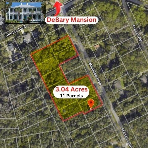 11 Lotes residenciais vagos a serem vendidos em conjunto. 5 lotes localizados ao longo da Mansion Blvd e 6 lotes imediatamente a oeste na Paper Road. 3,04 acres no total. A Mansão DeBary é sua vizinha. Apenas meia milha até Gemini Springs com pesca, acampamento e natação. Trilhas para caminhada e bicicleta a poucos passos da sua porta da frente.