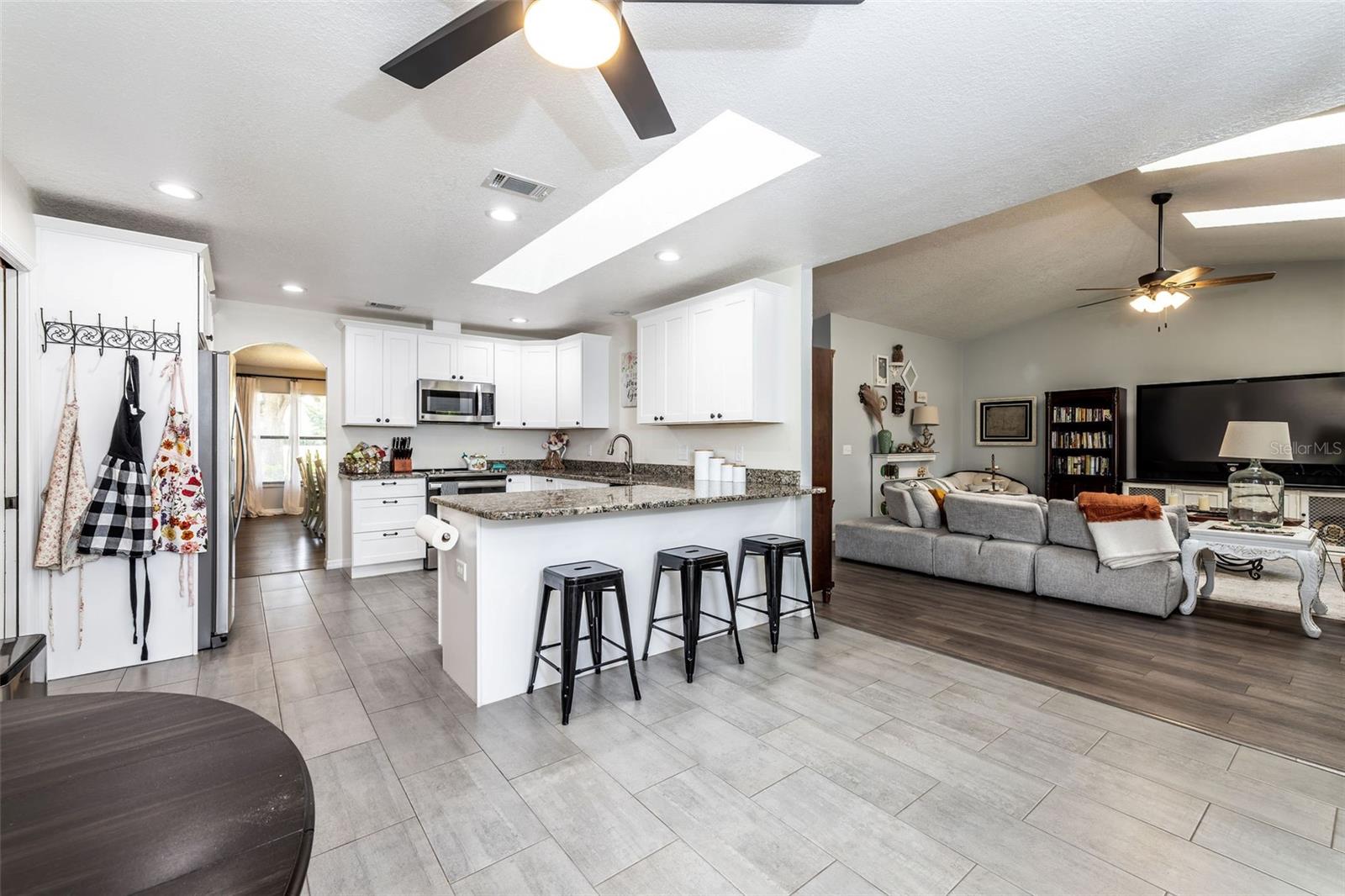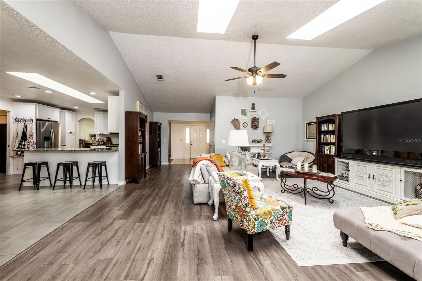 Bem-vindo a esta bela casa de 3 quartos e 2,5 banheiros em um terreno de mais de 1/3 acre localizado em uma das melhores comunidades de Debary, Debary Plantation. Esta casa oferece uma variedade de atualizações modernas e recursos desejáveis que certamente irão impressionar. Ao entrar pela charmosa varanda frontal, você é recebido por um hall de entrada adequado que leva a uma ampla sala de estar com tetos elevados que criam um ambiente aberto e arejado, repleto de muita luz natural. A sala de jantar formal extragrande tem o tamanho perfeito para hospedar reuniões formais e eventos especiais. A cozinha remodelada é o sonho de um chef, ostentando armários contemporâneos em estilo shaker com muito espaço para gavetas, despensa embutida, balcões de granito, eletrodomésticos recém-substituídos, balcão para café da manhã e área de jantar. O acesso à varanda é feito pelas portas de vidro duplo, proporcionando o cenário perfeito para entretenimento interno/externo. O destaque da casa é sem dúvida a grande sala espaçosa e aberta. Os altos tetos abobadados, as claraboias e a lareira de tijolos reais adicionam a quantidade certa de charme e funcionalidade ao ambiente. A enorme suíte principal impressiona por sua amplitude e estilo e é completa com 3 ARMÁRIOS para todas as suas necessidades de armazenamento, além de uma varanda privativa, perfeita para desfrutar de seu café da manhã ou relaxar à noite. O retiro do banheiro recém-renovado inclui pia dupla, banheira de imersão e box amplo. Dois quartos adicionais maiores que a média compartilham um banheiro de hóspedes de tamanho completo lindamente reformado. Do lado de fora da espaçosa varanda com tela, você encontrará um quintal de tamanho generoso, totalmente cercado e irrigado, oferecendo um espaço seguro e privado para atividades ao ar livre e animais de estimação para passear livremente. Os vários carvalhos maduros e as árvores frutíferas jovens oferecem muita sombra e fazem com que este oásis privado pareça um parque. Esteja você fazendo um churrasco, plantando um jardim ou simplesmente aproveitando o sol da Flórida, este quintal é o local ideal. A enorme garagem é o espaço perfeito para trabalhar as habilidades do artesão, pois oferece uma área de oficina e possui ½ banheiro! O telhado mais recente (2020), o novo campo de drenagem (2022) e o ar condicionado mais recente (2022) garantem tranquilidade e eficiência energética nos próximos anos. As venezianas instaladas em todo o exterior da casa são venezianas totalmente funcionais. Aproveite a vida em uma das comunidades mais procuradas de DeBary SEM pagar uma taxa HOA. Esta comunidade está perfeitamente localizada perto de escolas de primeira linha (Debary Elementary a apenas 0,5 km de distância), campos de golfe profissionais, acesso ao rio, Gemini Springs Park, lojas, restaurantes e praias do condado de Volusia. Não perca a oportunidade de tornar sua casa lindamente atualizada para experimentar o epítome da vida na Flórida.