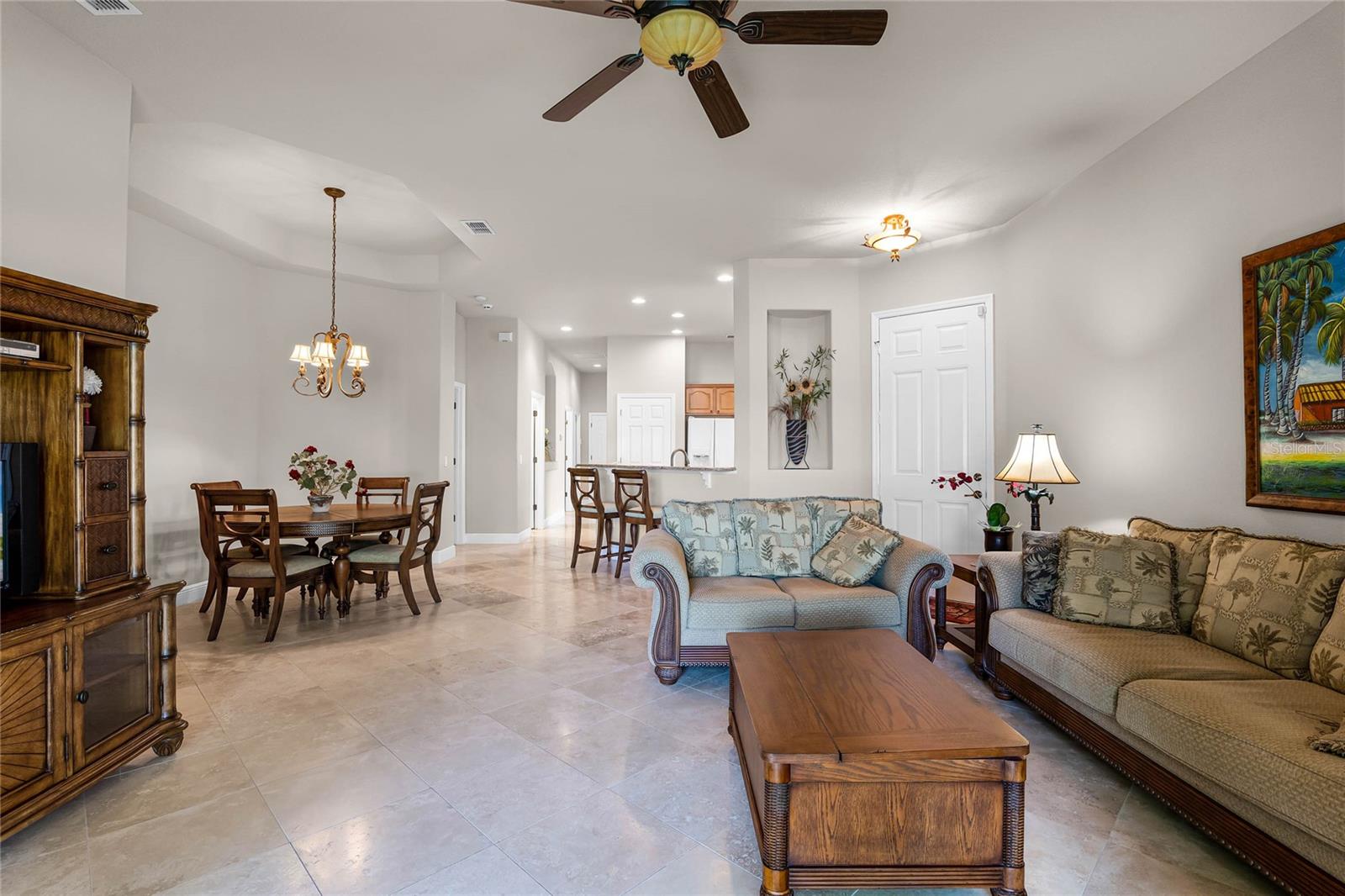 Bem -vindo a esta impressionante casa de 3 quartos, 2 banheiros, localizada no condomínio fechado do Clube Country de Debary. Esta casa possui um grande lanai, com vista para um lago tranquilo com um recurso de água, cercado por um paisagismo deslumbrante que é meticulosamente mantido pelo HOA. A cozinha possui armários de madeira maciça e bancadas em granito, enquanto a suíte primária é expansiva com um banheiro atualizado e um grande closet. Quarto 2 e 3 mostram belos pisos de madeira, enquanto as áreas de cozinha, jantar e estar apresentam lindos pisos de travertino. Os recursos adicionais desta casa incluem tratamentos de janelas, uma lavanderia e uma garagem de 2 carros. A comunidade oferece comodidades como um campo de golfe, fitness center, piscina e playground. Localizados em uma comunidade fechada e privada com uma entrada e saída, os moradores desfrutam de uma sensação de segurança e exclusividade. A DeBary Elementary, que foi recentemente classificada como uma escola, está próxima, juntamente com o fácil acesso a grandes rodovias, restaurantes e outras conveniências. Não perca esta propriedade excepcional em um local privilegiado.