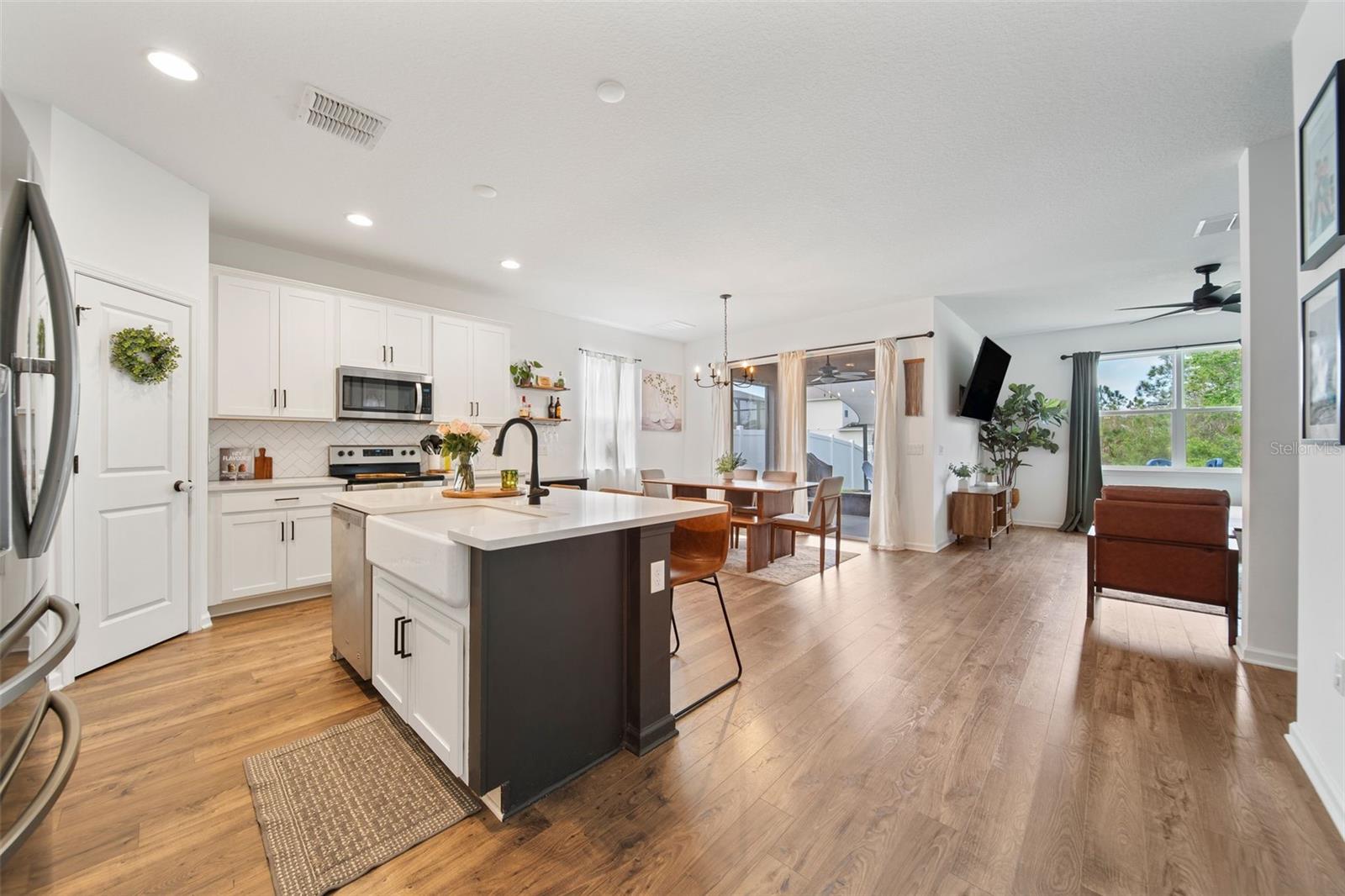 Descubra sua residência perfeita em DeBary, FL - Esta casa quase nova oferece recursos modernos e uma planta baixa procurada. Esta notável propriedade de dois andares se destaca, com 5 quartos espaçosos e 3 banheiros, uma verdadeira raridade nesse local procurado. Ao entrar, você é bem-vindo por uma planta bem projetada. Os corredores da frente levam a quartos bem proporcionados com um banheiro compartilhado, proporcionando conveniência e privacidade para a família ou os hóspedes. Na parte traseira, você encontrará o coração da casa - uma cozinha moderna com elegantes bancadas de quartzo, uma grande ilha, uma despensa de tamanho generoso e utensílios de aço inoxidável que se conectam perfeitamente à área de estar expansiva, ideal para hospedar reuniões ou vida diária. O quarto principal, localizado na parte de trás da casa, oferece vistas tranquilas no quintal do espaço verde, criando um refúgio pacífico para relaxar. No andar de cima, uma área versátil de loft oferece o local perfeito para um escritório ou sala de jogos, acompanhado por um quarto adicional e banheiro completo. Dentro da comunidade Rivington, os moradores podem desfrutar de quilômetros de trilhas para caminhada e uma sala de eventos disponíveis para alugar perto da piscina. As trilhas do bairro também se conectam ao The Debary Sunrail e em breve se estenderão a Alexander Island e Gemini Springs State Park. Esta comunidade faz fronteira com o St Johns e fornece fácil acesso aos centros de emprego de Lake Mary e Sanford. A próspera comunidade de DeBary contará em breve uma rua principal que se tornará um paraíso dos ciclistas, com restaurantes e espaços de varejo. Minutos para o I4 e a proximidade de fazer compras no zoológico e na praia do zoológico e nas praias da Flórida Central. Os vendedores são motivados para que possam garantir uma transição suave antes do próximo ano letivo. Não perca esta incrível oportunidade!