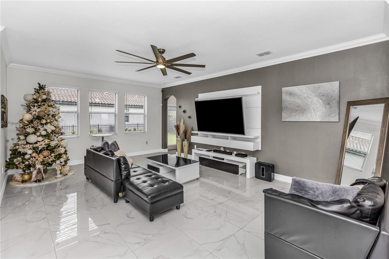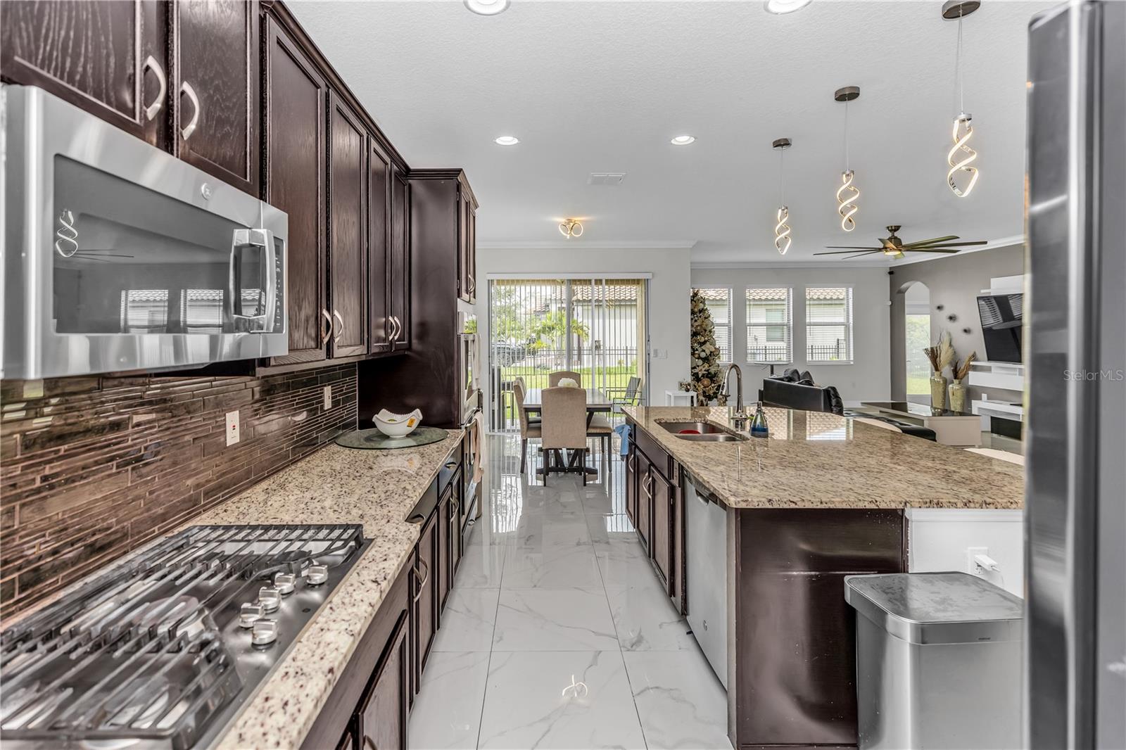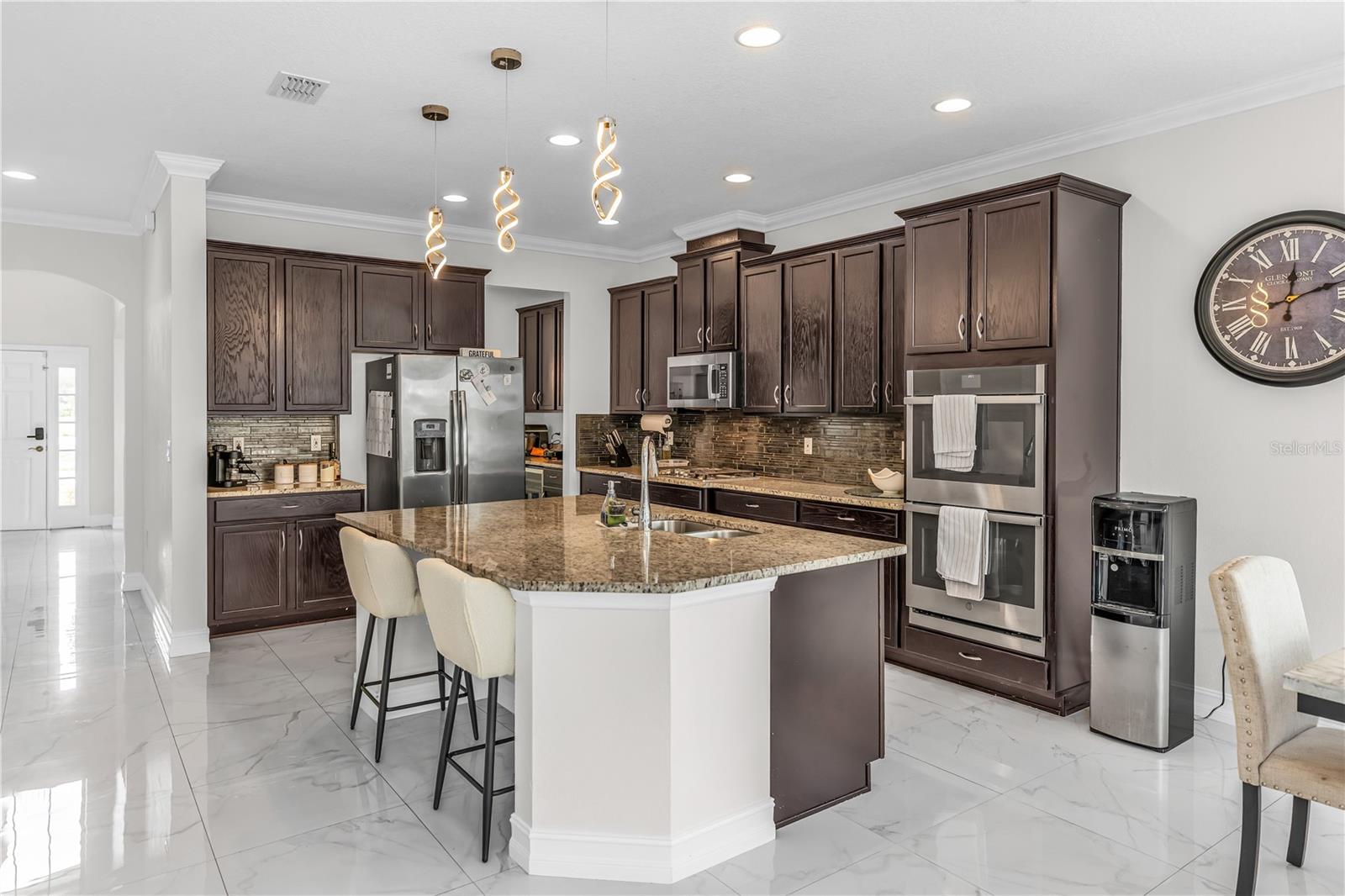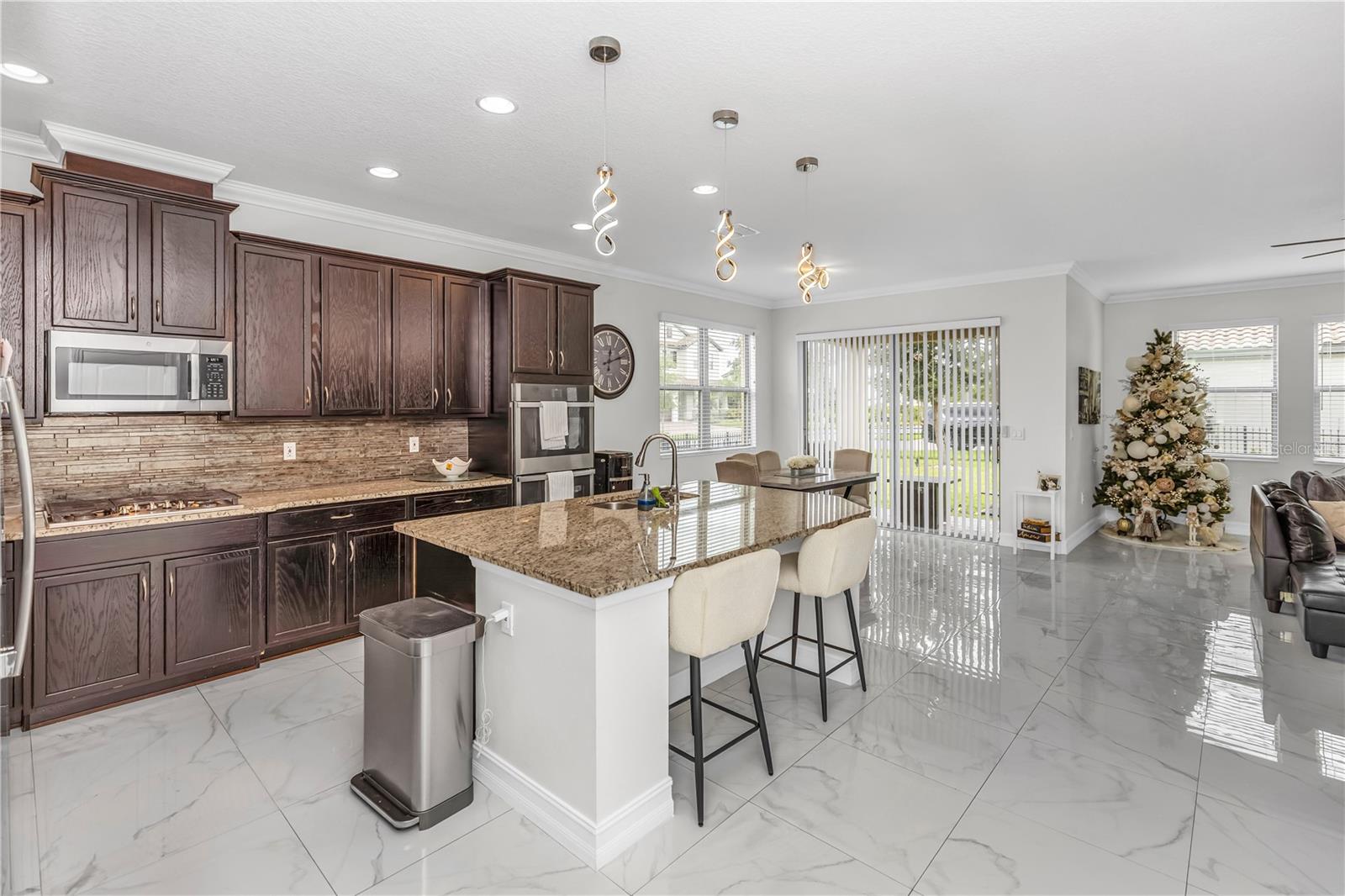 Bem-vindo ao 612 via Isabelle Drive-uma impressionante residência de 5 quartos e 3 banheiros, aninhada dentro do condomínio fechado desejável de Riviera Bella em Debary, Flórida. Esta casa combina estilo atemporal, conforto diário e vida verdadeira no estilo resort. Entre e seja recebido por um layout aberto e cheio de luz, destacado pelo elegante piso de azulejos e portas arqueadas encantadoras. A cozinha do chef é a peça central da casa, mostrando uma ilha de granito de grandes dimensões, utensílios de aço inoxidável, fogão a gás, fornos duplos, backsplash de ladrilhos, um bar seco com geladeira de vinho e uma despensa personalizada-perfeita para entreter ou desfrutar de um café tranquilo da manhã. O primeiro andar possui um quarto privado, ideal para hóspedes ou vida multigeracional. No andar de cima, você encontrará quatro quartos adicionais com piso de vinil durável, incluindo uma luxuosa suíte de proprietário com entrada de duas portas e um banho inspirado em spa, completo com vaidades duplas, uma banheira de jardim e um chuveiro. Uma espaçosa sala de bônus no andar de cima oferece o cenário perfeito para noites de cinema, jogos ou uma sala de jogos. Destaques adicionais incluem janelas de painel duplo baixo e portas de vidro deslizantes, uma grande lavanderia, recursos de casa inteligentes, armazenamento de escada e uma garagem em 3 carros com piso de tec com seixos. Saia de um lanai coberto com vista para um quintal generoso - um espaço convidativo para relaxar noites, refeições ao ar livre ou reuniões de fim de semana. Os moradores desfrutam de acesso exclusivo ao rio St. Johns, um clube em estilo resort, piscina espumante, fitness center, playgrounds, splash pad com um playground e trilhas para caminhada. Convenientemente localizado perto das principais rodovias, você terá uma viagem fácil para fazer compras e refeições. Não perca a oportunidade de tornar esta propriedade impressionante sua nova casa - onde elegância, conforto e comunidade se reúnem.
