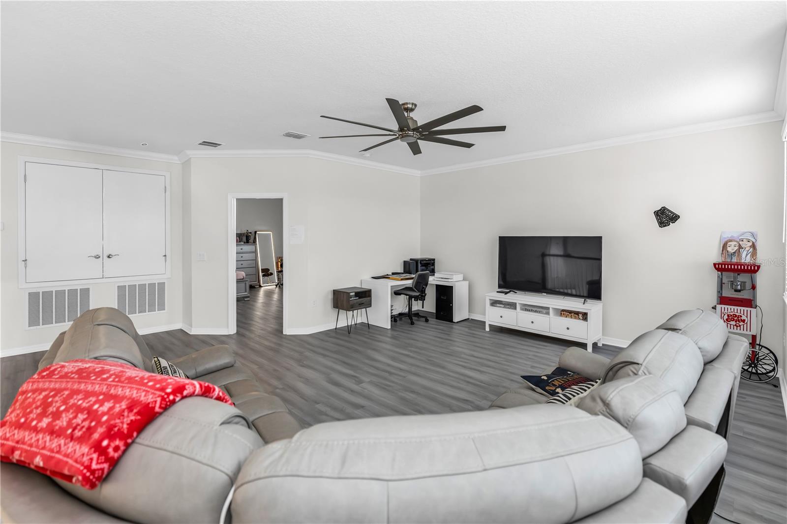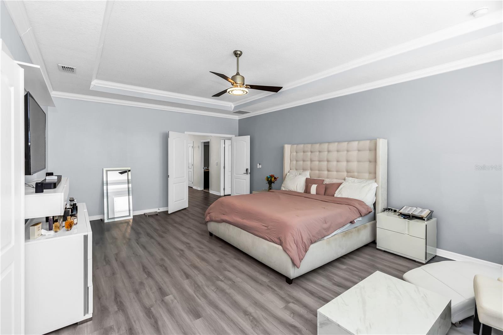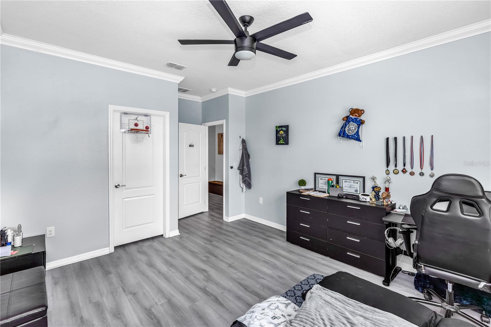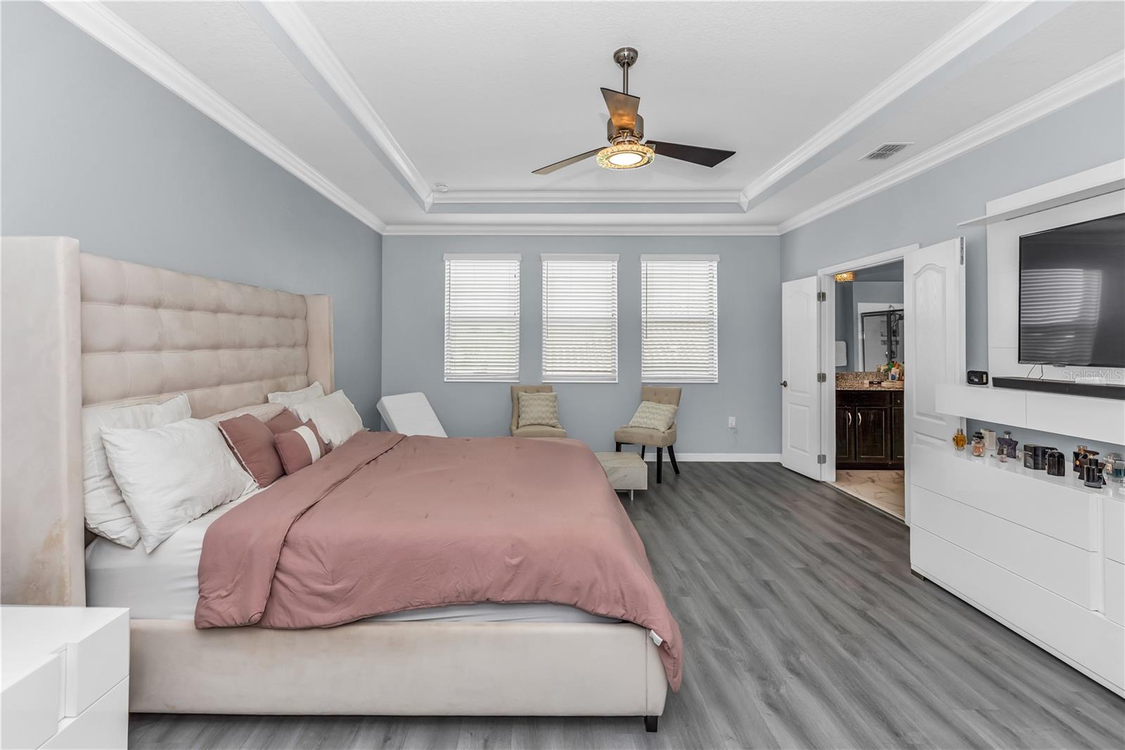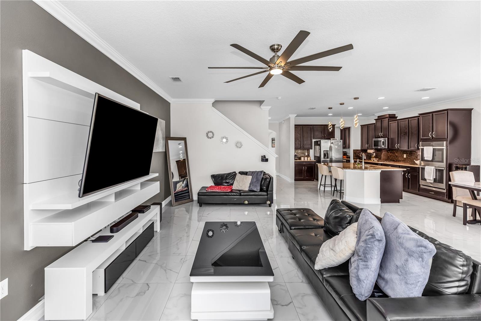 Bem-vindo ao 612 via Isabelle Drive-uma impressionante residência de 5 quartos e 3 banheiros, aninhada dentro do condomínio fechado desejável de Riviera Bella em Debary, Flórida. Esta casa combina estilo atemporal, conforto diário e vida verdadeira no estilo resort. Entre e seja recebido por um layout aberto e cheio de luz, destacado pelo elegante piso de azulejos e portas arqueadas encantadoras. A cozinha do chef é a peça central da casa, mostrando uma ilha de granito de grandes dimensões, utensílios de aço inoxidável, fogão a gás, fornos duplos, backsplash de ladrilhos, um bar seco com geladeira de vinho e uma despensa personalizada-perfeita para entreter ou desfrutar de um café tranquilo da manhã. O primeiro andar possui um quarto privado, ideal para hóspedes ou vida multigeracional. No andar de cima, você encontrará quatro quartos adicionais com piso de vinil durável, incluindo uma luxuosa suíte de proprietário com entrada de duas portas e um banho inspirado em spa, completo com vaidades duplas, uma banheira de jardim e um chuveiro. Uma espaçosa sala de bônus no andar de cima oferece o cenário perfeito para noites de cinema, jogos ou uma sala de jogos. Destaques adicionais incluem janelas de painel duplo baixo e portas de vidro deslizantes, uma grande lavanderia, recursos de casa inteligentes, armazenamento de escada e uma garagem em 3 carros com piso de tec com seixos. Saia de um lanai coberto com vista para um quintal generoso - um espaço convidativo para relaxar noites, refeições ao ar livre ou reuniões de fim de semana. Os moradores desfrutam de acesso exclusivo ao rio St. Johns, um clube em estilo resort, piscina espumante, fitness center, playgrounds, splash pad com um playground e trilhas para caminhada. Convenientemente localizado perto das principais rodovias, você terá uma viagem fácil para fazer compras e refeições. Não perca a oportunidade de tornar esta propriedade impressionante sua nova casa - onde elegância, conforto e comunidade se reúnem.