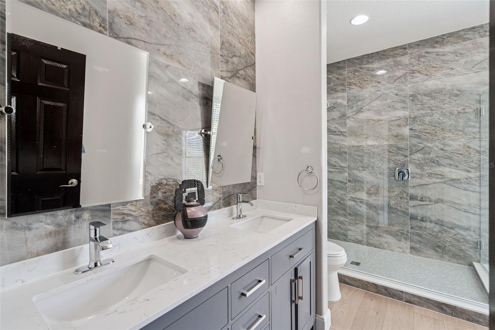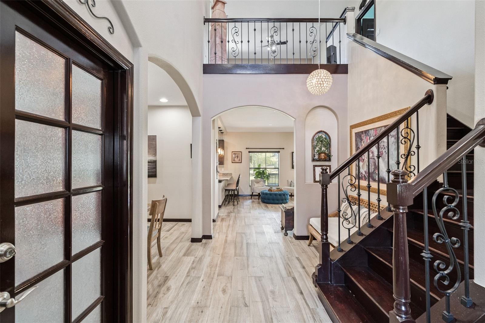 Casa moderna requintada com suítes primárias duplas em condomínio fechado de Riviera Bella. Um exemplo impressionante de luxo moderno e design cuidadoso, esta imaculada residência de 4 quartos e 3,5 banheiros, construída em 2012, apresenta uma rara oportunidade para compradores exigentes. Meticulosamente mantida e parecendo uma construção nova, esta casa é uma prova de artesanato de qualidade e vida sofisticada. Ao entrar, um deslumbrante hall de entrada da catedral lhe dá as boas-vindas, dando um tom de elegância que se estende por toda a casa. A grande sala, cozinha, entrada e sala de jantar de conceito aberto são adornadas com belos pisos de cerâmica de madeira, criando um espaço de estar elegante e sem carpete. Esta residência é perfeitamente adequada para viver multigeracionais ou receber hóspedes, com duas suítes principais – uma convenientemente localizada no primeiro andar e uma segunda no andar de cima. Um espaçoso escritório no primeiro andar proporciona um espaço de trabalho tranquilo e produtivo. A elegante sala de jantar é o sonho de qualquer artista, ideal para organizar jantares memoráveis ou desfrutar de refeições íntimas à luz de velas. A grande sala, o coração da casa, é um espaço acolhedor e convidativo que você terá orgulho de chamar de seu. A cozinha gourmet é uma delícia para o chef, com armários escuros grandes de 42", elegantes eletrodomésticos de aço inoxidável, uma despensa e um bar de café da manhã para refeições casuais. Da grande sala, vá para a varanda e desfrute de vistas serenas do lago de retenção com sua charmosa fonte. Os moradores da Riviera Bella desfrutam de acesso exclusivo a uma variedade de comodidades. Uma curta caminhada do quintal leva à sede do clube, onde você pode dar um mergulho refrescante na piscina ou participar de reuniões comunitárias. A segurança e a tranquilidade de um O condomínio fechado e vigiado é inestimável. A suíte principal do nível inferior é um verdadeiro retiro, completa com armários duplos, pias duplas, uma luxuosa banheira de jardim e um chuveiro tipo spa com bicos portáteis, contemporâneos e em cascata. No andar de cima, uma área de loft versátil oferece espaço adicional, um banheiro de azulejos bem equipado com pias duplas e um chuveiro com porta de vidro. e um grande closet. A partir do segundo andar, você pode desfrutar de vistas pitorescas da bela fonte no lago abaixo. Esta propriedade excepcional oferece um estilo de vida de conforto, luxo e conveniência. Com suas características impressionantes e localização privilegiada, esta casa é imperdível.