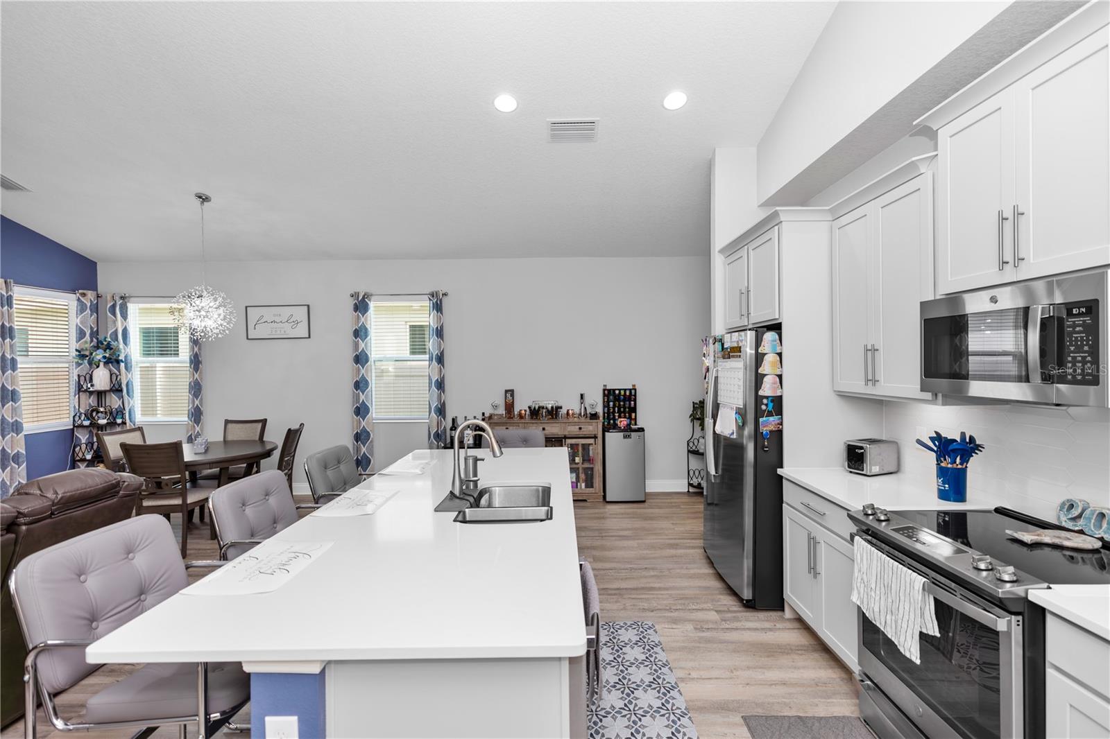 Por que esperar para construir quando você pode se mover para esta casa de 3 banheiros e de 2 banheiros atualizou impecavelmente na comunidade de Rivington, procurada? Pensado e melhor que o novo, esta casa é repleta de recursos premium que realmente o diferenciam. Ao entrar, você será recebido por belos tetos abobadados que aprimoram a sensação brilhante e aberta da casa. A cozinha é uma verdadeira peça central, com acabamentos modernos, uma grande ilha, uma despensa com prateleiras de madeira atualizadas e um layout elegante perfeito para vida diária e entretenimento. Você encontrará pisos de vinil de luxo por toda parte - nenhum tapete em qualquer lugar! O espaço de estar de conceito aberto é elevado com uma parede de destaque personalizada e prateleiras flutuantes, um novo lustre e ventiladores de teto em todos os cômodos para conforto durante todo o ano. A suíte primária possui uma tábua encantadora e uma parede de sotaque, enquanto a lavanderia é totalmente equipada com armários superiores e uma pia conveniente. A garagem possui pisos epóxi, armazenamento aéreo e funcionalidade adicional para suas necessidades de armazenamento ou hobby. Ao ar livre, uma cerca de privacidade de vinil nova e um sistema completo de calha adicionam os toques finais perfeitos. Localizado em uma das comunidades mais desejáveis da Flórida Central, Rivington oferece um estilo de vida no estilo resort com uma piscina brilhante, pavilhão de amenidade interna/externa, playground, parque de cães, parques de bolso de bairro e 16 quilômetros de caminhadas, trilhas e calçadas. Esta é sua chance de possuir uma casa meticulosamente atualizada e pronta para se mover em um bairro vibrante e conectado. Bem -vindo para casa em Rivington, vivendo no seu melhor! Programe sua turnê privada hoje. Esta casa pode estar sob vigilância de áudio e visual.