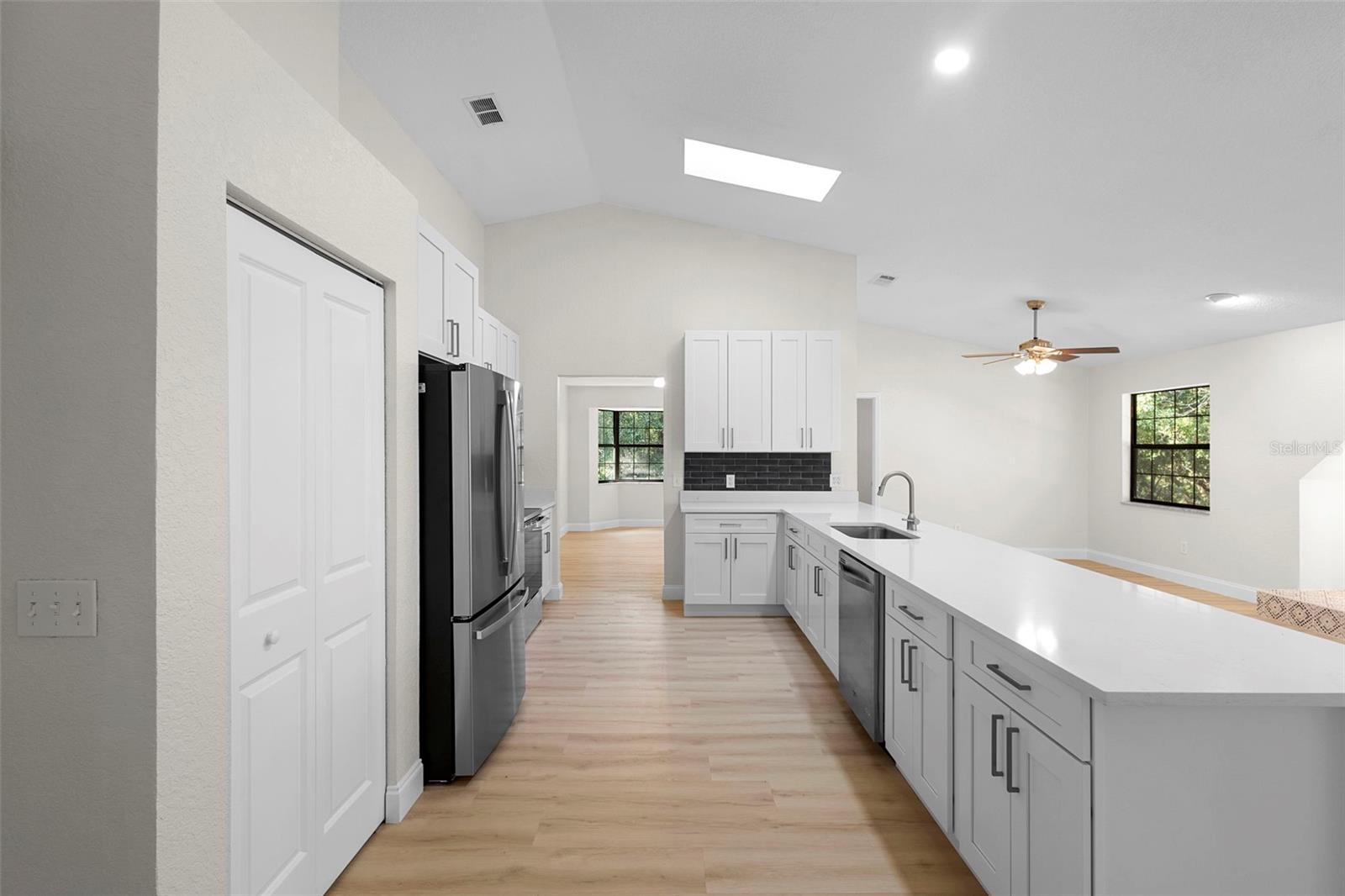 Bem-vindo ao seu retiro recém-renovado no tranquilo bairro de Orlandia Heights. Esta espaçosa casa de 3 quartos e 2 banheiros combina conforto, estilo e funcionalidade inteligente em um layout cuidadosamente projetado. Entre para encontrar luxuosos pisos de pranchas de vinil nas principais áreas de estar, complementados por novos carpetes macios nos quartos para maior conforto. A cozinha é um verdadeiro empecilho, com elegantes bancadas de quartzo, eletrodomésticos de aço inoxidável, armários totalmente novos e um backsplash impressionante. Abre-se perfeitamente para a sala de família, onde uma lareira a lenha cria uma peça central acolhedora para reuniões ou noites relaxantes em casa. Ao lado da cozinha, a sala de jantar está perfeitamente posicionada para qualquer coisa, desde refeições durante a semana até jantares festivos de feriados. Precisa de um espaço versátil? A sala dos fundos é ideal para um escritório doméstico, quarto de hóspedes, academia de ginástica ou qualquer outra coisa que se adapte ao seu estilo de vida. A suíte principal se destaca pelas portas francesas duplas que dão para a varanda e um banheiro de inspiração spa com amplo box amplo e acabamentos modernos. Dois quartos adicionais e um segundo banheiro totalmente atualizado completam o interior. Do lado de fora, um lote generoso oferece muito espaço para entretenimento, jardinagem ou simplesmente aproveitar o sol da Flórida. A casa está convenientemente localizada perto de um parque local, de um supermercado e da estação DeBary SunRail, tornando o deslocamento diário e as tarefas diárias fáceis e eficientes. Esteja você trabalhando em casa, relaxando ou sendo criativo no jardim, esta casa oferece um novo começo da maneira certa.