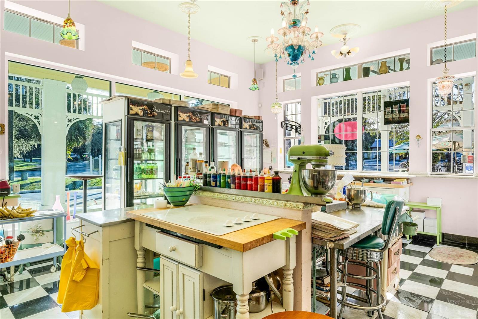 Bem-vindo a uma oportunidade única na vida de possuir um pedaço da história culinária de DeLand! Esta padaria independente e única, aninhada no coração do centro de DeLand, a apenas uma quadra da Universidade Stetson, tem sido um item básico da comunidade há 18 anos. Enquanto o nome comercial querido está avançando, o edifício icônico em si já está disponível para venda, apresentando uma chance extraordinária para um empresário visionário deixar sua marca. Entre em um mundo de charme e caráter enquanto explora o interior desta padaria única. O espaço é adornado com uma variedade eclética de lustres lançando um brilho quente sobre o piso de granito e mármore, criando uma atmosfera convidativa que complementa perfeitamente os deliciosos aromas que flutuam dos fornos. O loft ou escritório de armazenamento no andar de cima adiciona um toque de praticidade a esse espaço encantador. Equipado para o sucesso, a padaria possui quatro fornos de gás comerciais, bancadas de aço inoxidável e uma grande pia de três compartimentos, com pias adicionais estrategicamente colocadas para acesso rápido e eficiente. A conveniência de um sistema de filtragem de água e água Insta garante operações perfeitas. As prateleiras de aço inoxidável e os refrigeradores de vista aberta de vidro mostram a arte de suas criações culinárias, enquanto um contador de exibição de granito adiciona um toque de elegância. O design atencioso se estende além da área de cozimento para incluir dois banheiros, um dos quais é acessível de fora, atendendo às necessidades de clientes e funcionários. A versatilidade deste estabelecimento é enfatizada ainda mais por suas opções de drive-thru ou de campanha, proporcionando uma experiência conveniente para os clientes em movimento. Saia e você descobrirá uma área de estar ao ar livre frontal, oferecendo espaços cobertos e descobertos para os clientes desfrutarem de suas guloseimas na vibrante atmosfera do centro da cidade. Um pequeno pátio traseiro tem vista para um lago sereno, fornecendo uma fuga tranquila para clientes e funcionários. Os entusiastas da natureza apreciarão a abundância de pássaros, patos e vida selvagem migratória que vêm e oferecem um cenário único e pitoresco para clientes e fotógrafos. Com a reputação de Deland por atividades no centro da cidade, festividades, desfiles e lar da Universidade Stetson, as possibilidades para o novo proprietário são ilimitadas. Seja imaginando uma empresa de catering, um café, uma cafeteria ou uma padaria de pão dedicada, este estabelecimento é uma tela para seus sonhos culinários. Não perca a chance de escrever o próximo capítulo de sucesso para esta padaria amada no coração de DeLand!