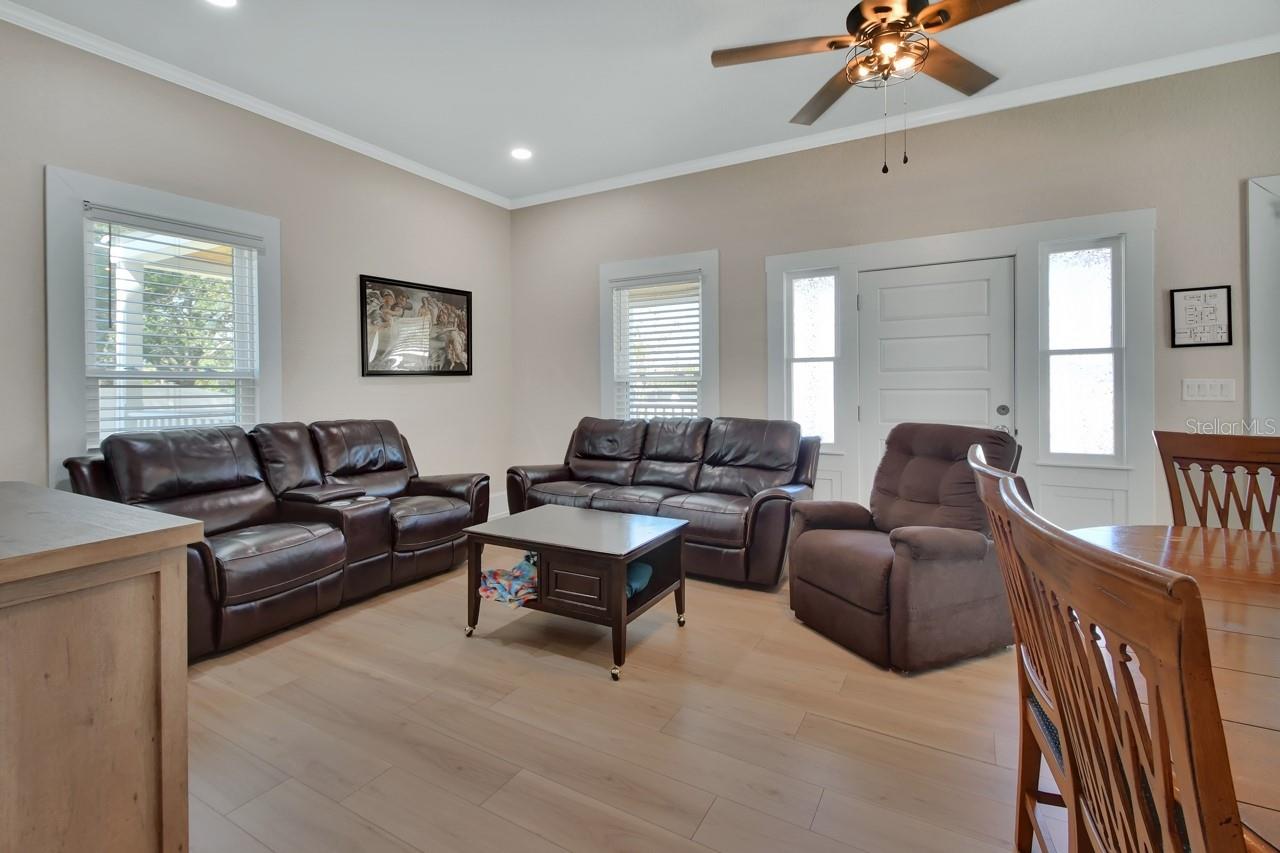 Marco histórico absolutamente lindo, que é zonado B5 que é compatível com a zona residencial. Construído em 1870, a casa de Stockton-Lindquist é a casa mais antiga de DeLand e é o epítome da elegância histórica com funcionalidade profissional perfeita para um negócio comercial. A casa foi lindamente remodelada! HVAC, janelas, sépticos, janelas, adoráveis pisos laminados e de azulejos de cerâmica, atualizações elétricas e de encanamento em 2021. O lote de 0,60 acres é totalmente cercado com paisagismo adorável e há um sistema de irrigação. A varanda envolvente com o teto da língua e da ranhura e uma grande área de pátio traseiro para se divertir. Há um gerador de casa cheia que é alimentada pelo gás natural. A expansiva cozinha e banheiros foram reformados com balcões de granito, ampla quantidade de armazenamento em armários de toque macio de ponta, respingo traseiro decorativo e utensílios de aço inoxidável. Atualmente, está sendo usado como uma instalação de vida sóbria. Três andares com seis quartos ou escritórios e quatro banheiros com uma cozinha grande e uma sala da frente que seria uma área de recepção perfeita. É fácil imaginar isso como um fabuloso Bed & Breakfast ou uma agência de seguros de ponta, escritório imobiliário ou escritório de advocacia ou pode ser residencial renovado e ser uma casa de sonho. Localizado perto do centro de Deland e da Stetson University, com fácil acesso à I-4. Cinco espaços de estacionamento com muito mais espaço para expandir para estacionamento adicional. As reformas tornam uma peça encantadora da história de DeLand uma peça de exibição!