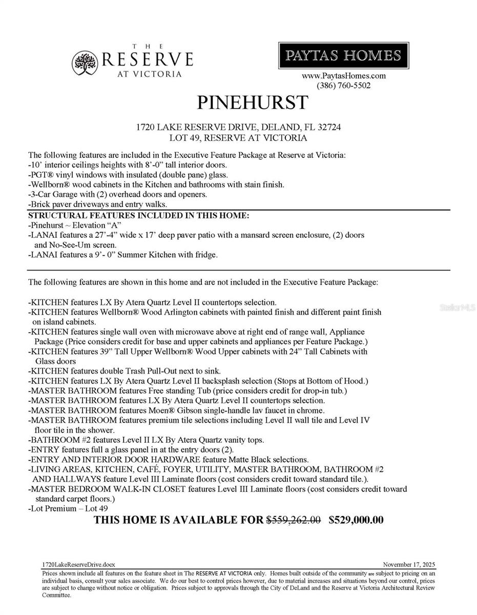 *Pronto para mudança imediata Paytas Homes 3 quartos/2 banheiros modelo Pinehurst na altamente desejável Reserva em Victoria em DeLand. Esta casa lindamente projetada possui uma garagem para 3 carros com entrada no pátio, acabamentos internos premium e acesso ao centro de comodidades em estilo resort da comunidade, clube, sala de ginástica, piscina e quadras de pickleball. Entre em um layout aberto e claro com atualizações por toda parte: • Cozinha espaçosa com bancadas de quartzo premium, ilha, gaveta de lixo, backsplash de azulejos e armários de madeira Wellborn, incluindo parte superior de 39" + armários frontais de vidro de 24". • Túneis solares para iluminação natural. • Piso laminado atualizado na sala principal e master. • Teto rebaixado na Grande Sala. • Varanda coberta de grandes dimensões, amplo pátio pavimentado com cobertura de mansarda e cozinha de verão, perfeita para entretenimento ao ar livre! O design de quarto dividido oferece privacidade com uma espaçosa suíte do proprietário, closet e banheiro luxuoso com pias duplas e box amplo. Construída pela Paytas Homes, conhecida pela construção de qualidade e design excepcional, esta casa inclui garantia do construtor para maior tranquilidade. Localizado a poucos minutos da I-4, centro histórico de DeLand, lojas, restaurantes e fácil acesso de carro às praias. Entrega imediata disponível - agende hoje mesmo sua visita! *O corretor tem afiliação comercial com o vendedor.