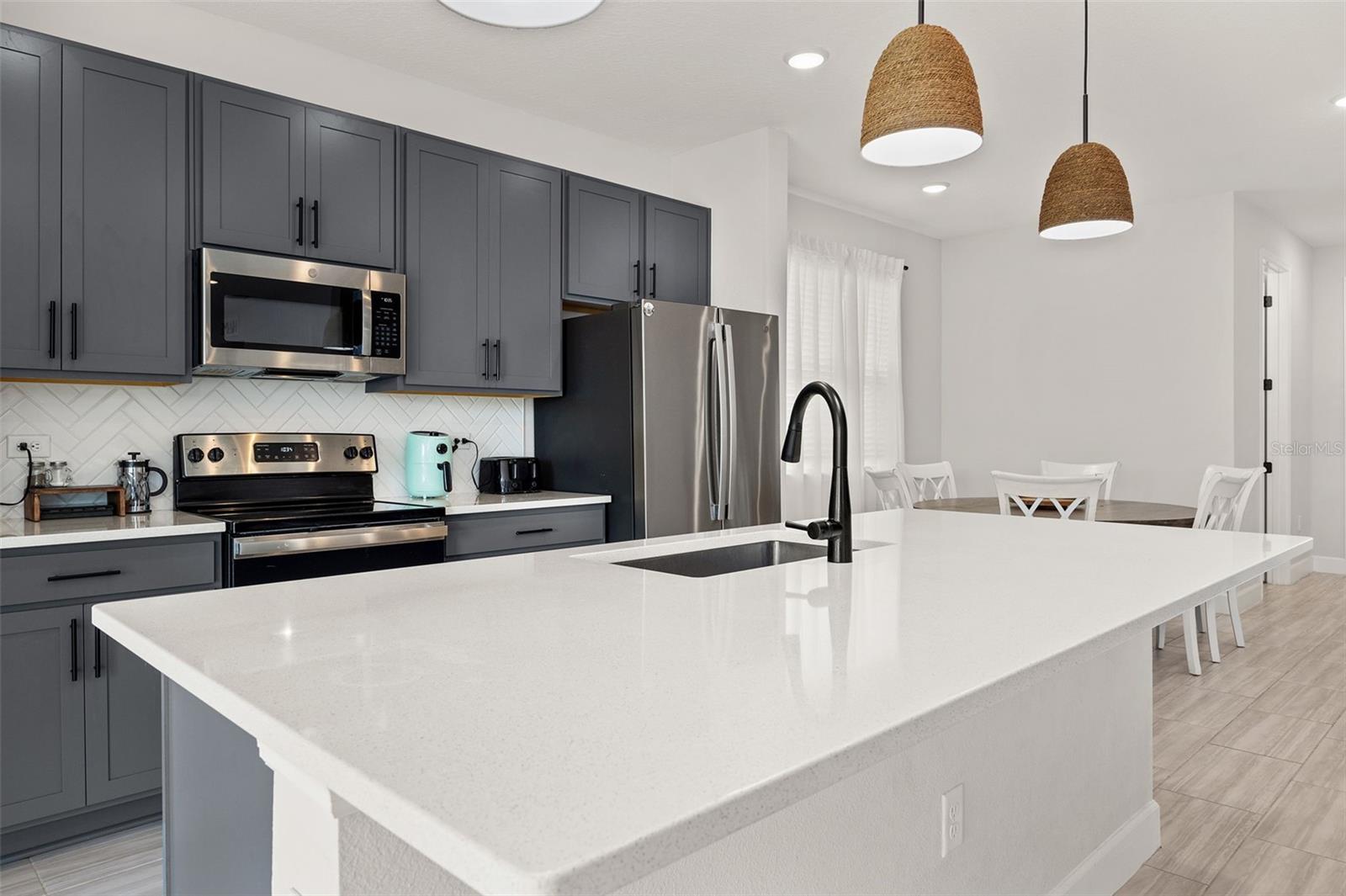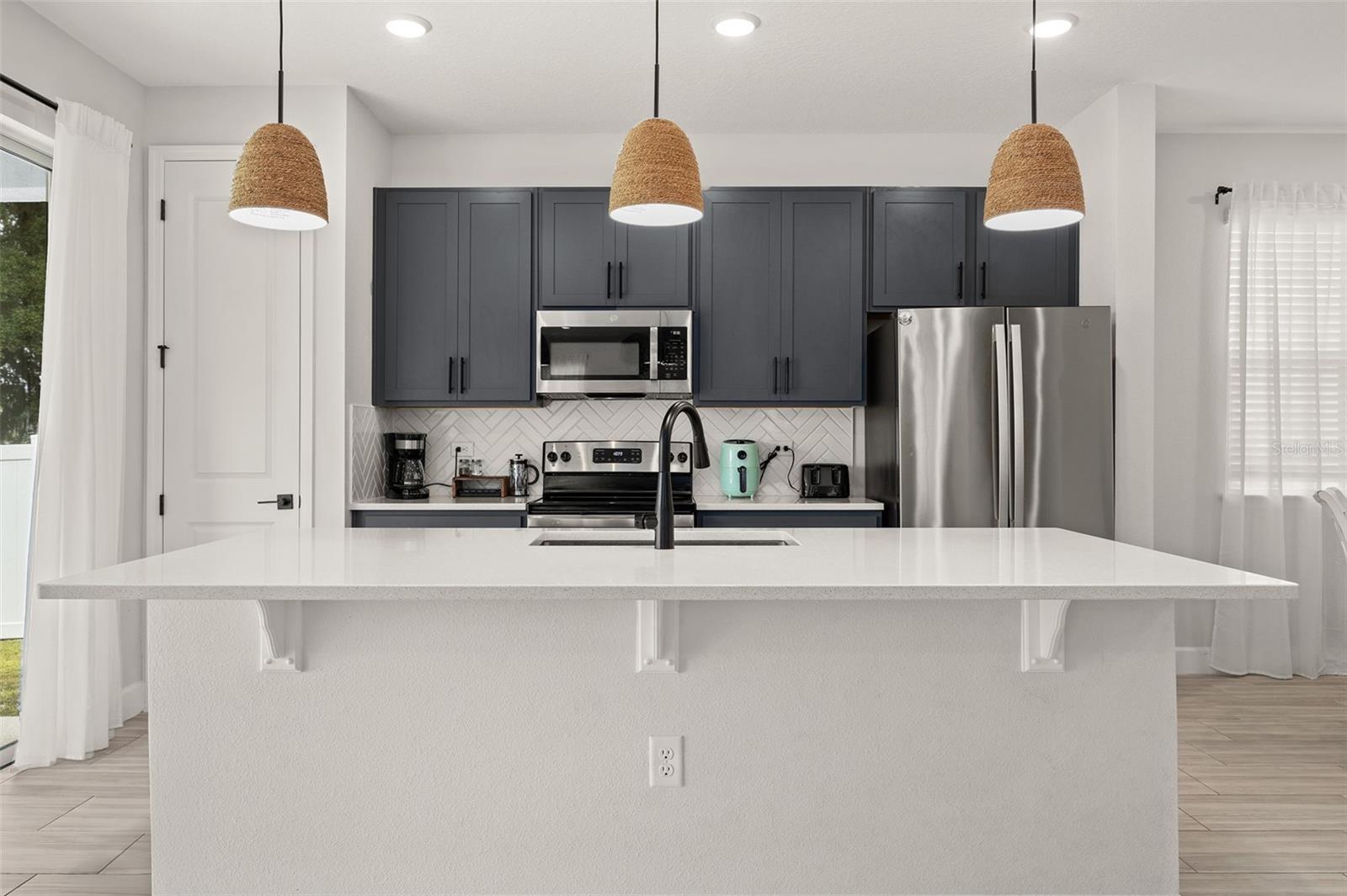 Grande casa moderna com 4 quartos e 3 banheiros que pode ser usada como residência multigeracional. Ao entrar nesta casa construída mais recentemente você encontrará um quarto e um banheiro localizados no andar principal. Um conceito aberto cozinha que desagua na espaçosa sala de estar. Além disso, fora da cozinha você encontrará um amplo espaço para jantar mesa da sala. Ao subir as escadas, há um grande espaço bônus/entretenimento com uma lavanderia no andar de cima. sala. Aproveite a espaçosa suíte master e banheiro, dois quartos adicionais e terceiro banheiro no segundo andar da casa. Saia para o quintal completamente cercado e relaxe em seu pátio coberto. Muito espaço para animais de estimação correrem ou atividades adicionais ao ar livre. Perto do centro da cidade Deland, onde você pode encontrar lojas, restaurantes e entretenimento.