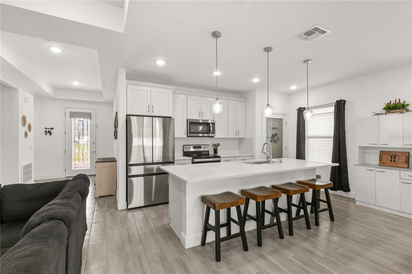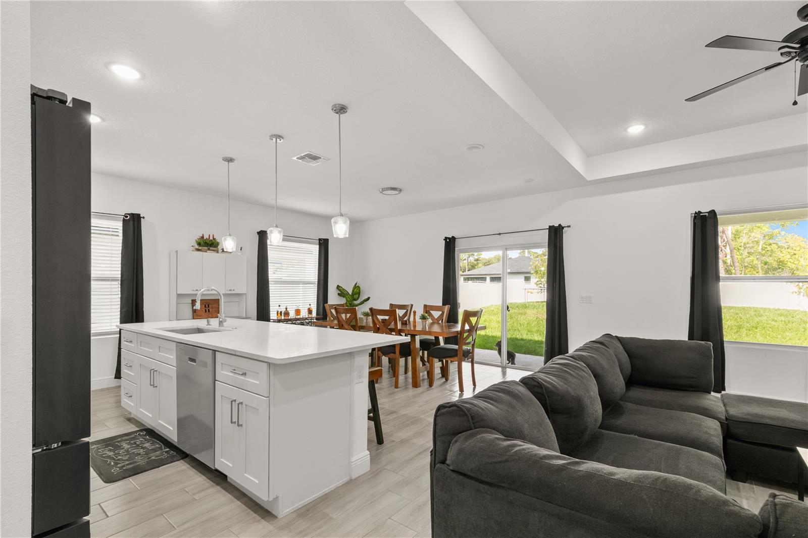 3 bd l 3 BA Home, idealmente localizado perto de compras, jantar, Universidade Stetson e grandes rodovias! Esta casa lindamente projetada apresenta uma planta piso de conceito aberto com tetos de bandeja crescente e duas espaçosas suítes primárias com chuveiros. A cozinha moderna oferece armários de 42 ", bancadas de quartzo e utensílios de aço inoxidável. Atualizações adicionais incluem uma nova cerca de privacidade de vinil, um sistema de filtragem de água em toda a casa e sarjetas para maior conveniência. Aproveite a Flórida que vive no grande Lanai coberto-Perfeição para relaxar ou entretenimento. Esta casa é uma casa, é uma casa obrigatória!
