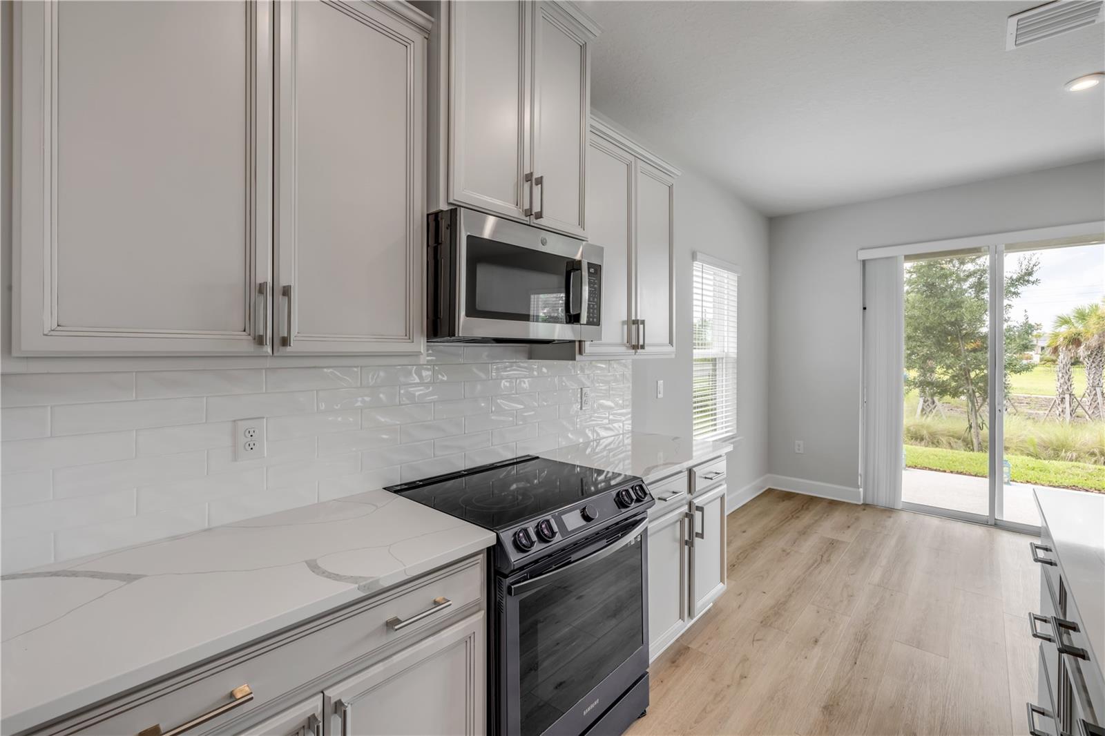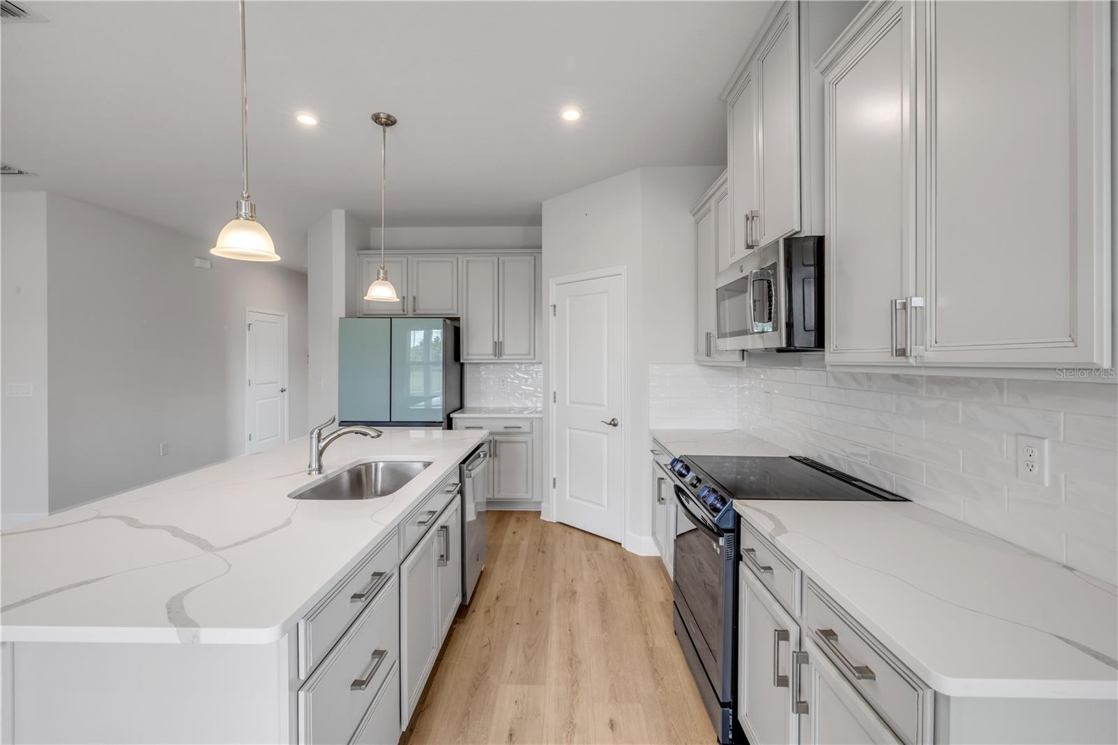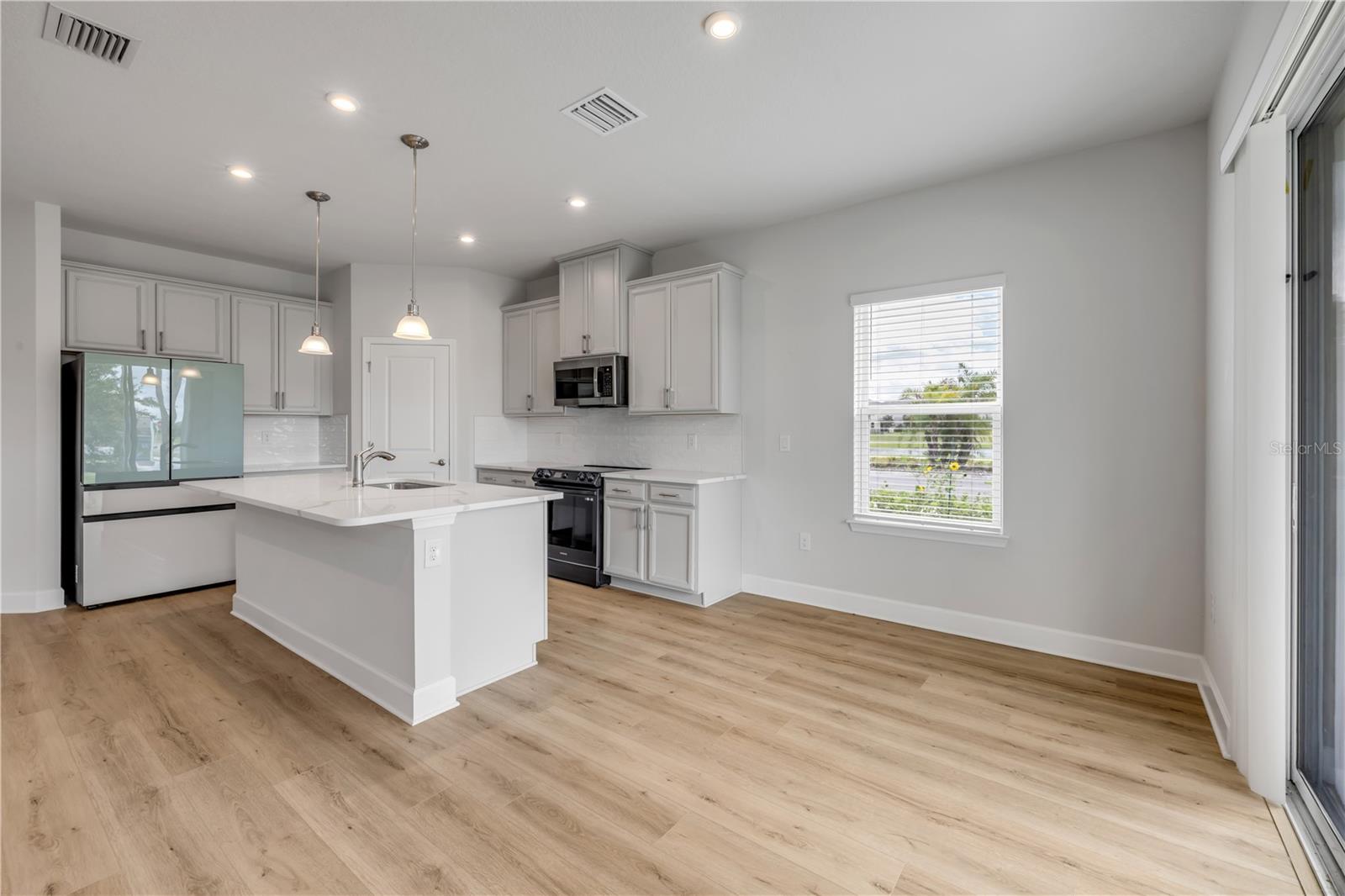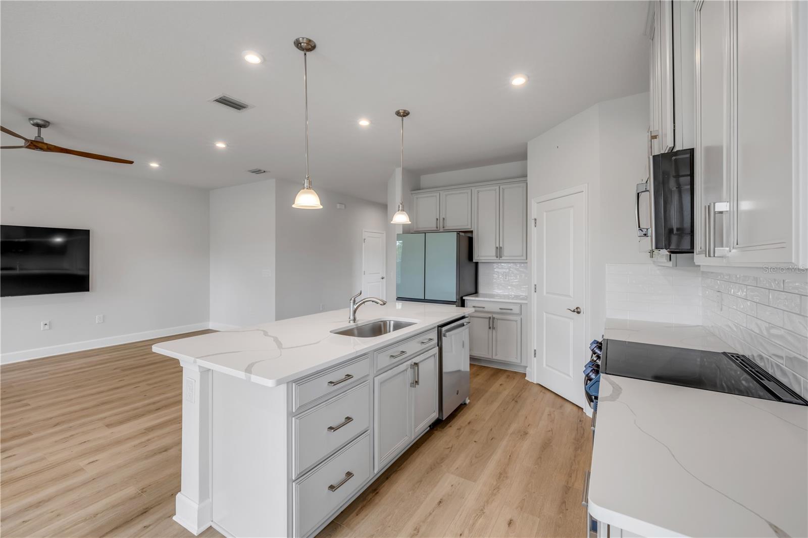 Bem-vindo a esta casa lindamente projetada de 3 quartos e 2 banheiros, com um escritório/Den versátil, construído em 2023 e localizado em um lote de canto desejável em Lakewood Park. Esta residência combina a arquitetura moderna com atualizações atenciosas, com um elegante exterior com compensação de pedra, calçada de pavimentação e uma espaçosa garagem de 2 carros. No interior, a planta aberta é preenchida com luz natural e flui perfeitamente da área de estar para a cozinha gourmet, completa com bancadas de quartzo, aparelhos premium e armários personalizados. A suíte primária é um verdadeiro retiro com um banho de segurança inspirado no spa, incluindo um chuveiro atualizado com um assento embutido, ladrilho de chão ao teto e um amplo closet. O piso de tábua de vinil de luxo melhora os principais espaços de estar, enquanto o carpete de pelúcia adiciona conforto a cada quarto. Calhas de chuva instaladas profissionalmente, um sistema de aspersão de água recuperada e paisagismo meticuloso criam apelo excepcional. Ao ar livre, desfrute de um pátio privado perfeito para relaxar ou divertir, bem como acesso à piscina e playground da comunidade para adicionar comodidades de estilo de vida. Esta casa oferece uma rara combinação de elegância moderna, design funcional e uma localização ideal - perfeita para compradores que buscam qualidade, conforto e conveniência.