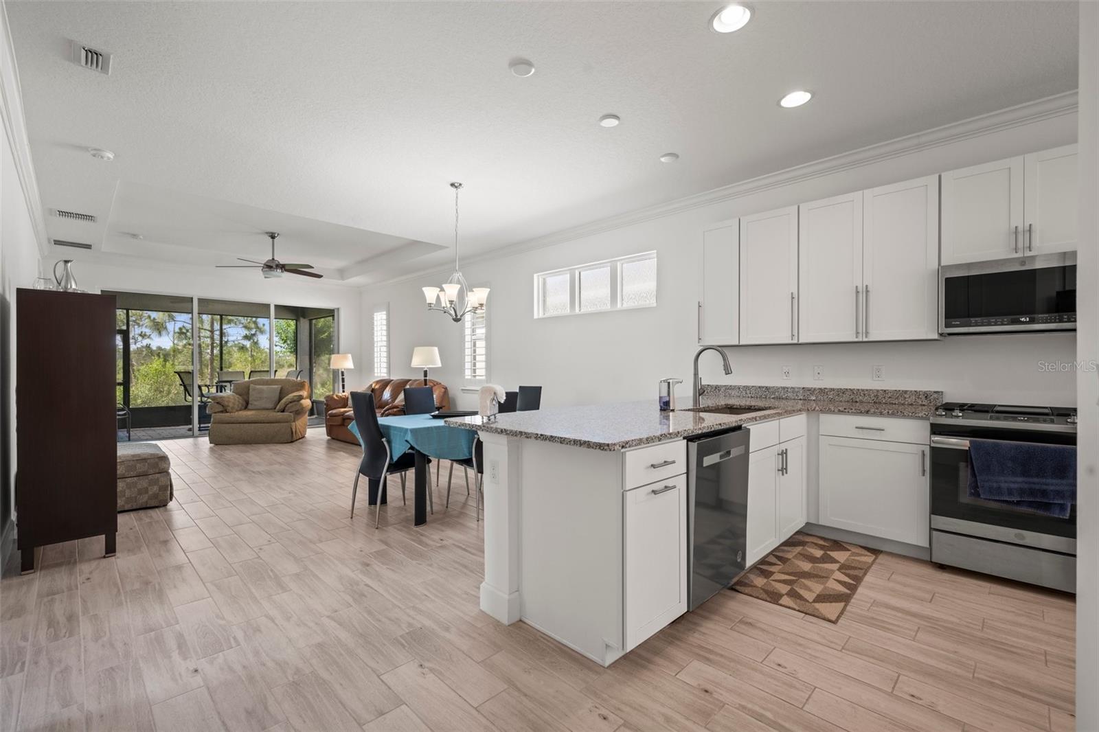 Bem-vindo à casa dos seus sonhos na bela comunidade Victoria Gardens/Cresswind. Esta casa de 1.651 pés quadrados construída em 2019 oferece 2 quartos e 2 banheiros, além de uma base de escritório/arrumos na muito popular planta da casa Jasmin. Essa planta baixa oferece uma grande sala grande e área de jantar em conceito aberto, bem como uma cozinha muito espaçosa e aberta e bem equipada com seu próprio espaço para refeições separado. A cozinha é completa com balcões de granito e armários de 42", iluminação pendente, balcão de café da manhã, backsplash de azulejos, eletrodomésticos SS e despensa. Todos os eletrodomésticos ficam incluindo a lavadora e secadora. Os quartos oferecem um plano dividido para mais privacidade. A suíte Kingsize dos proprietários é muito bem feito, com 2 closets, teto em caixotões e um luxuoso banheiro privativo com lindas bancadas e armários de granito, box amplo, banheira e vaso sanitário privativo. Há piso de cerâmica luxuoso em toda a casa, venezianas, janelas de vidro duplo, ventiladores de teto, sancas na grande sala, área de jantar e cozinha A varanda com tela tem vista para a bela reserva natural, dando-lhe total privacidade em seu quintal, sabendo que ninguém será capaz de construir atrás de sua casa muito especial. Aproveite esta comunidade com mais de 55 anos com todas as suas comodidades excepcionais com seu próprio clube e restaurante privativo, quadras de tênis e pickleball, piscina comunitária, academia e muito mais. Deland com seus restaurantes e lojas e a Universidade Stetson e perto de instalações médicas e ainda a uma curta distância de carro das praias da costa leste.