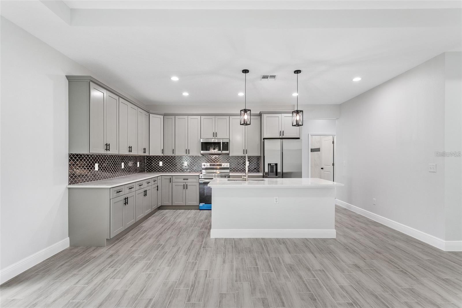 Em construção. Bem-vindo à casa dos seus sonhos, localizada no coração de Deland, FL. Esta impressionante nova construção possui quatro quartos, dois banheiros e uma garagem para dois carros, proporcionando amplo espaço para sua família ou convidados em crescimento. Entre e seja recebido por impressionantes tetos trey e lindos pisos de cerâmica. As principais áreas de estar são iluminadas e iluminadas com iluminação embutida, aumentando o charme moderno da casa e criando o ambiente perfeito para relaxar ou receber convidados que certamente impressionará. O coração da casa, a cozinha, é o sonho de um chef, com armários estilo shaker, eletrodomésticos de aço inoxidável, bancadas de pedra com lindo backsplash de azulejos recortados e uma grande ilha central. A cozinha é aberta para a sala, sendo o espaço perfeito para acolher reuniões familiares ou jantares. O espaçoso quarto principal possui um grande closet, banheiro privativo com pia dupla e box amplo, garantindo um retiro tranquilo no final de um longo dia. Nas proximidades, você encontrará mais três quartos de hóspedes e um banheiro de hóspedes, oferecendo muito espaço para sua família ou visitantes. Além disso, esta casa possui uma lavanderia interna com conexões e armazenamento para lavadora e secadora, aumentando a conveniência e funcionalidade da casa. Quando se trata de entretenimento local e atividades ao ar livre, Deland tem de tudo – oferecendo uma variedade de coisas populares para fazer, incluindo o Museu de Arte - Deland e o Distrito Histórico de Deland. Há muitas opções para entusiastas de atividades ao ar livre, incluindo explorar o Hontoon Island State Park e o Lake Woodruff National Wildlife Refuge e caminhar pelas muitas trilhas do Blue Spring State Park; há algo para todos. Além disso, a proximidade da casa com as rodovias facilita sair e explorar tudo o que a Flórida tem a oferecer, tornando a comunidade mais fácil do que nunca. Não perca esta incrível oportunidade de possuir a casa dos seus sonhos em Deland. Agende uma visita hoje e faça desta casa o seu lar para sempre!