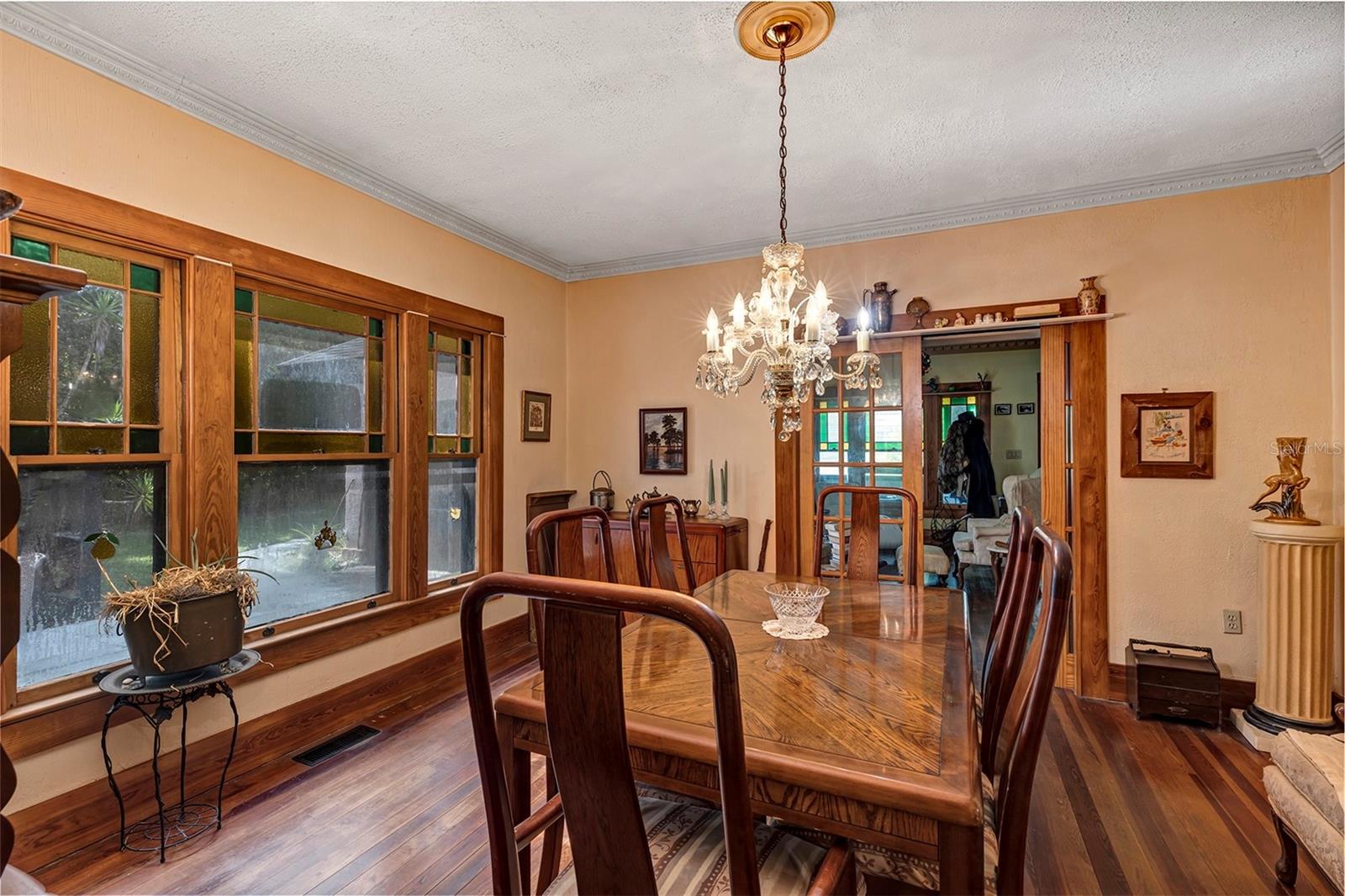 Uau! Encantadora casa histórica de 4 quartos e 3 banheiros em Deland! Piso de madeira na maior parte da casa, todos os armários da casa são forrados de cedro, vitrais, sancas por toda parte e assim por diante... há tanto caráter aqui! Encontre um processador de alimentos embutido na cozinha, tábua de passar roupa embutida, sistema de aspiração central em toda a casa e uma infinidade de outros recursos interessantes. A pequena cave no piso inferior poderia facilmente tornar-se numa adega de comida ou de vinhos! A grande garagem é actualmente uma marcenaria/estação de trabalho, mas pode facilmente ser convertida novamente em estacionamento. Situado em quase um acre, lote sereno... com uma sensação confortável e isolada, mas a poucos minutos das principais estradas estaduais. Compras e restaurantes em poucos minutos. Venha conhecer esta casa hoje mesmo!